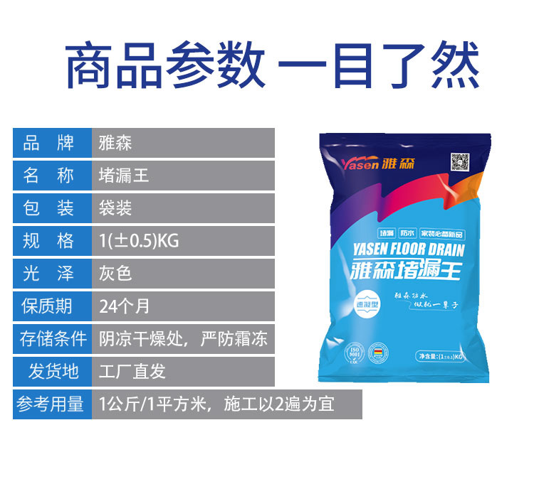 雅森水不漏堵漏王堵漏剂工程补漏注浆液堵漏王防水快干水泥堵 1kg