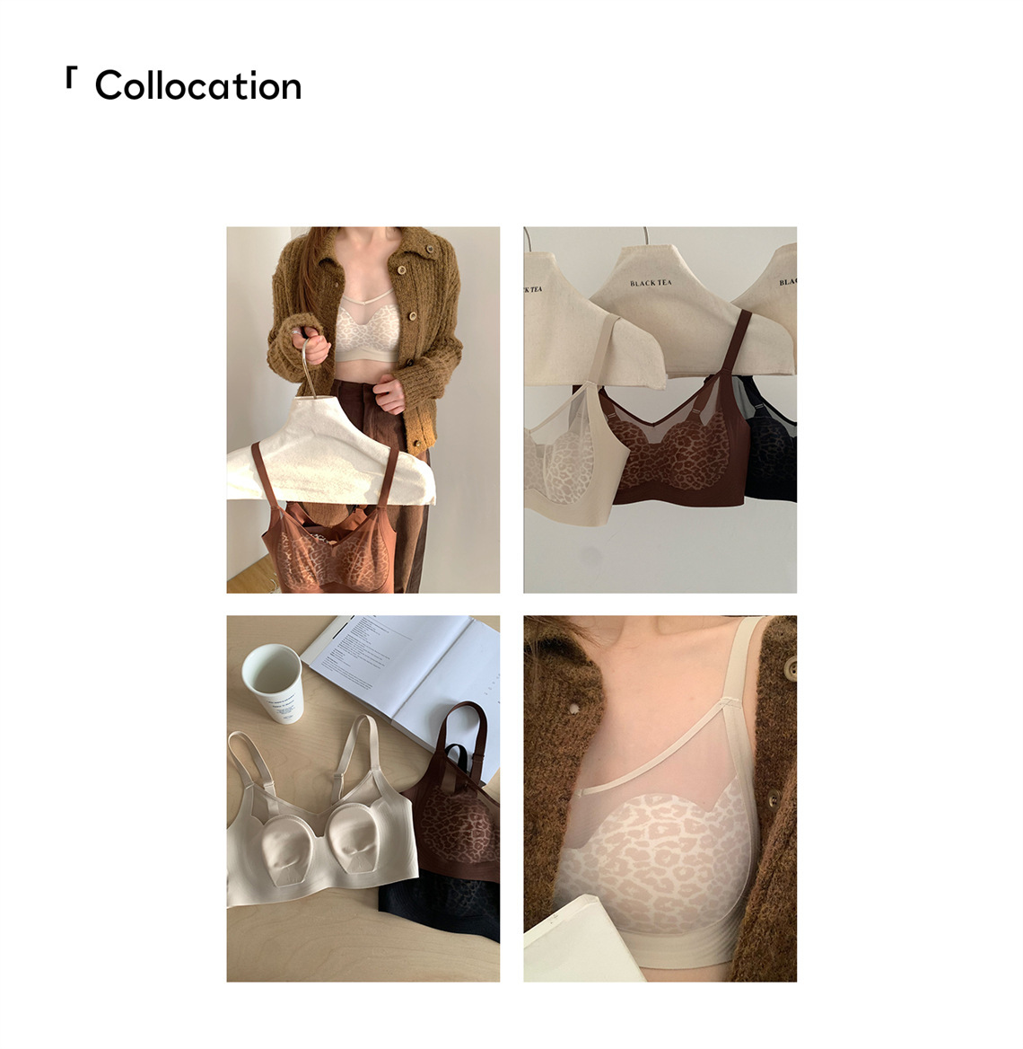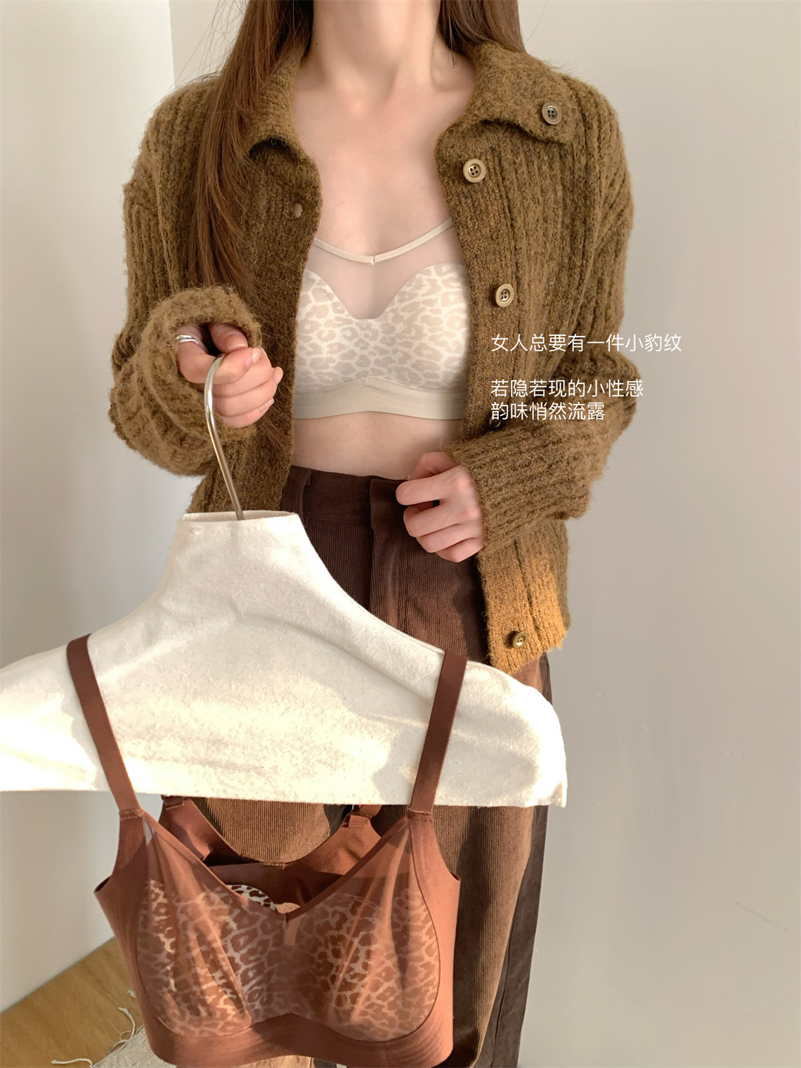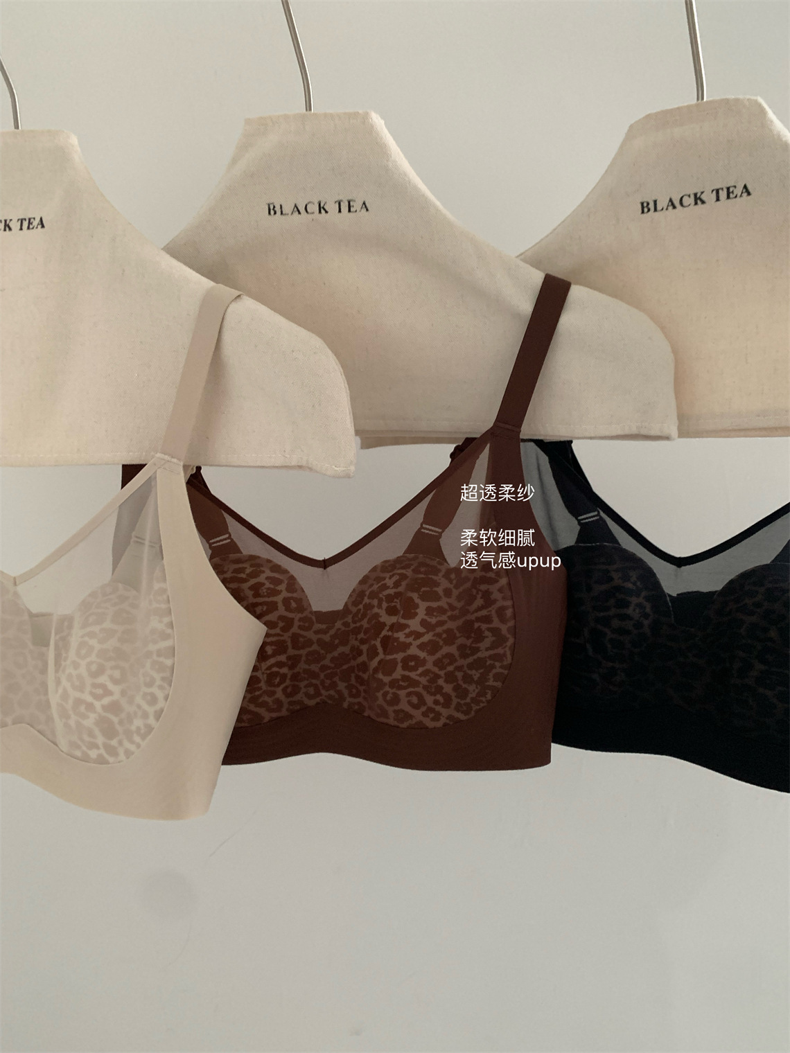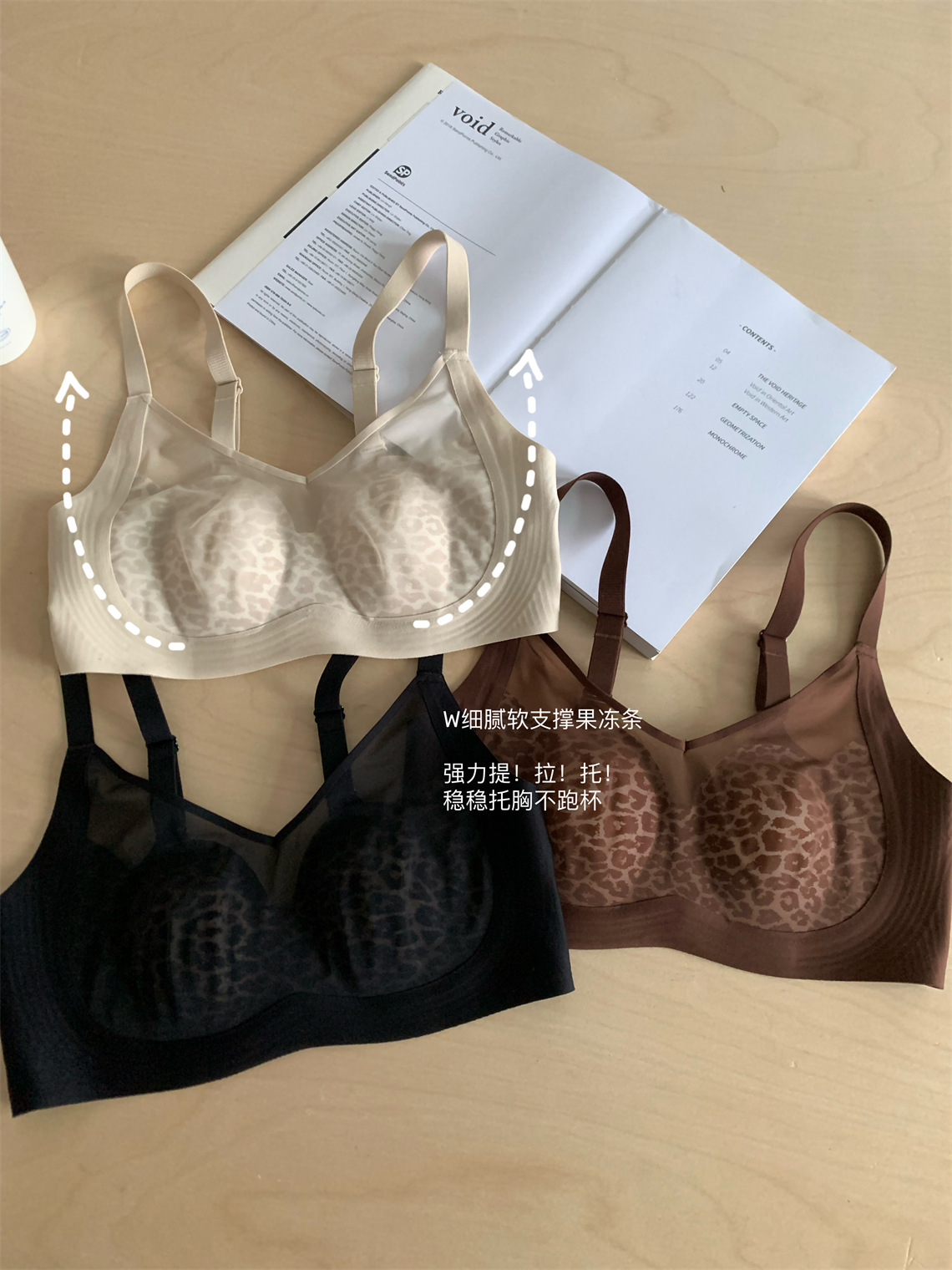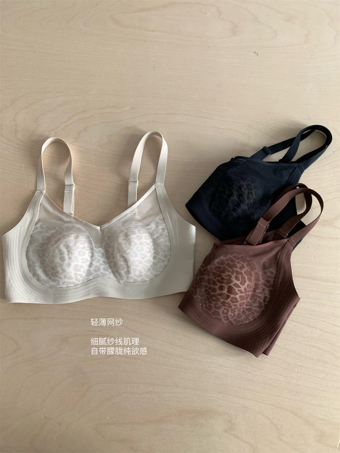 侧收提托~性感柔纱豹纹兔耳杯安心内衣 无钢圈上托防下垂调整型文胸美背