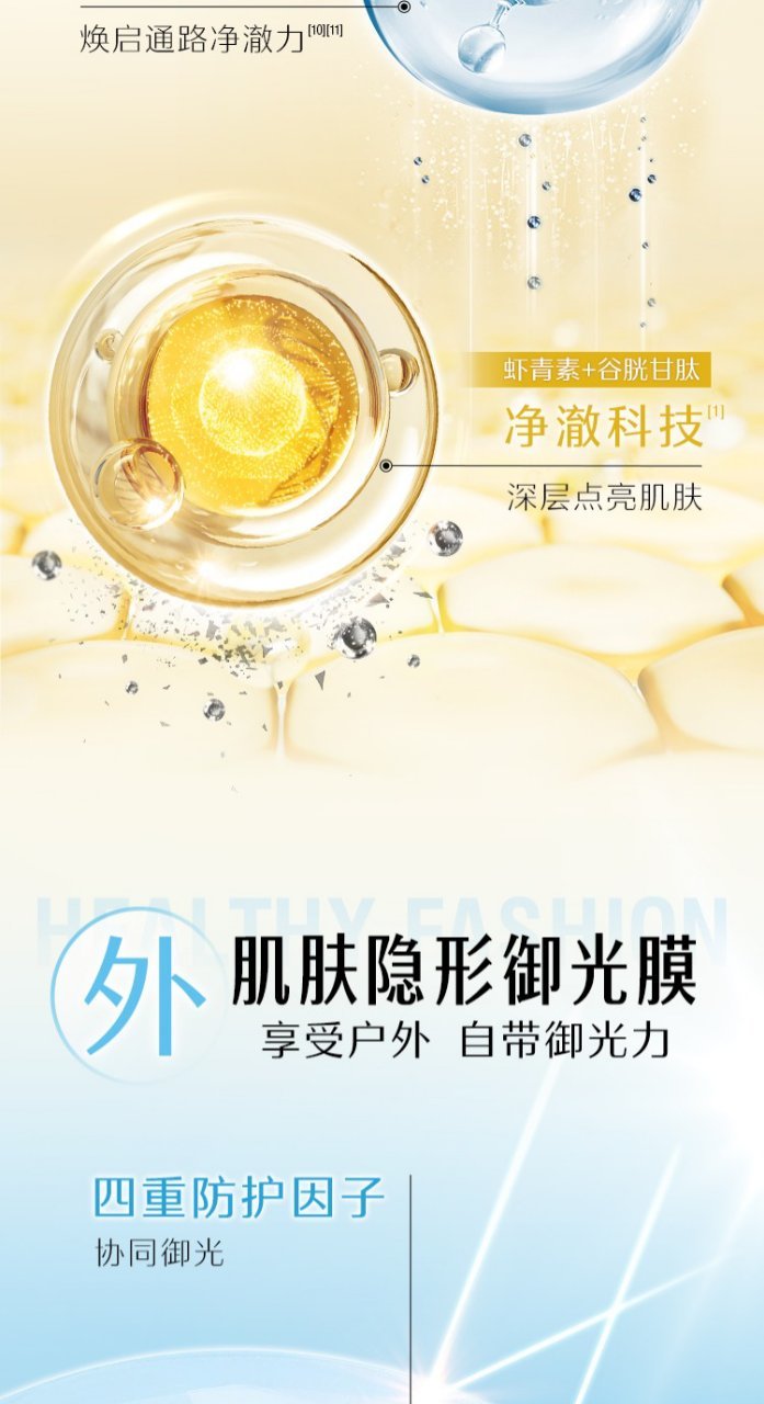 超强御光阻黑、断黑配方,3重链路,全面解锁肌肤白透亮 适用人群: 肤色暗沉不均匀,经常经受阳光又希望肌肤亮白的成年人群