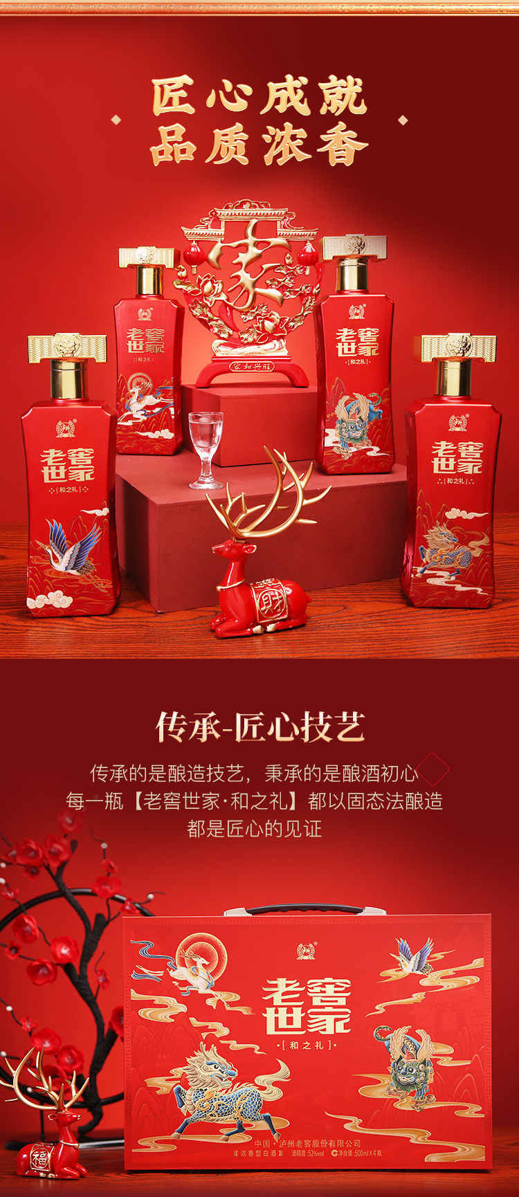 【钜惠组合套装】百年泸州老窖窖龄酒30年 红红火火礼盒 52度 500ml*2 + 老窖世家和之礼 52%vol (500ml*4)*4盒 泸州老窖官方旗舰店
