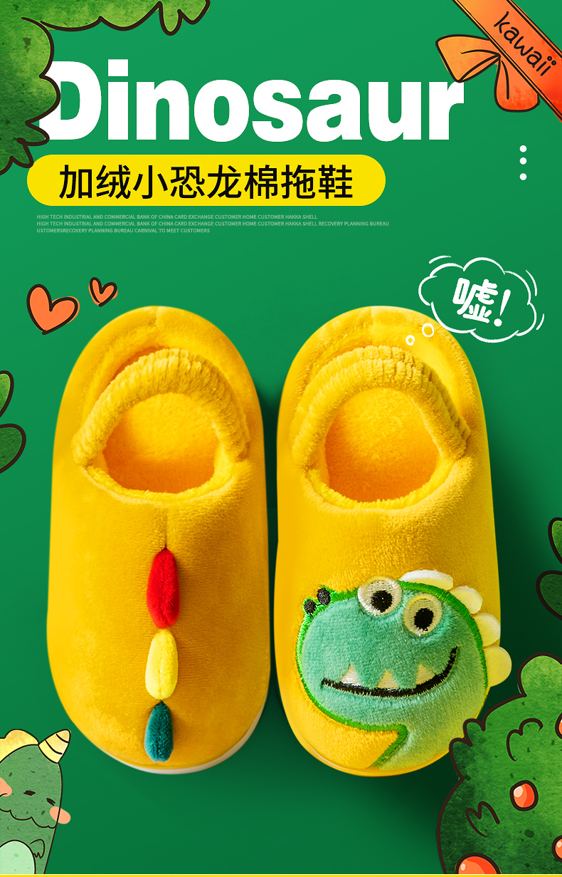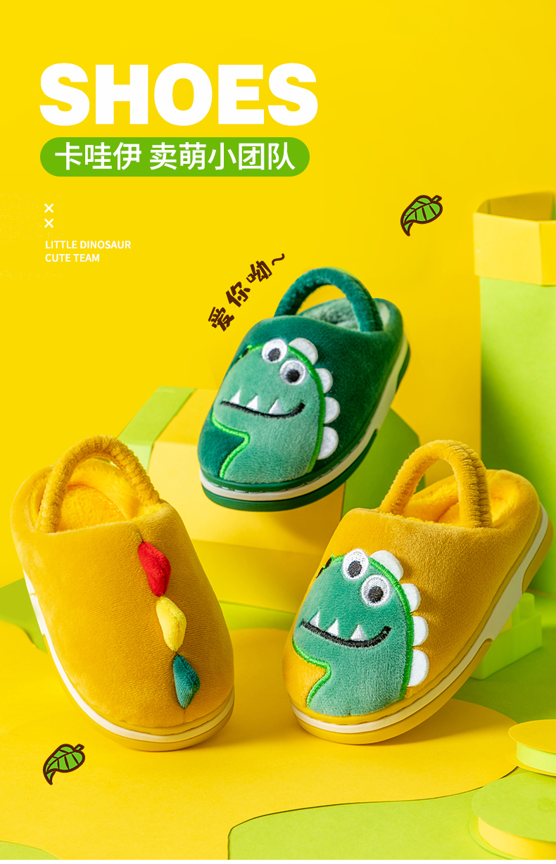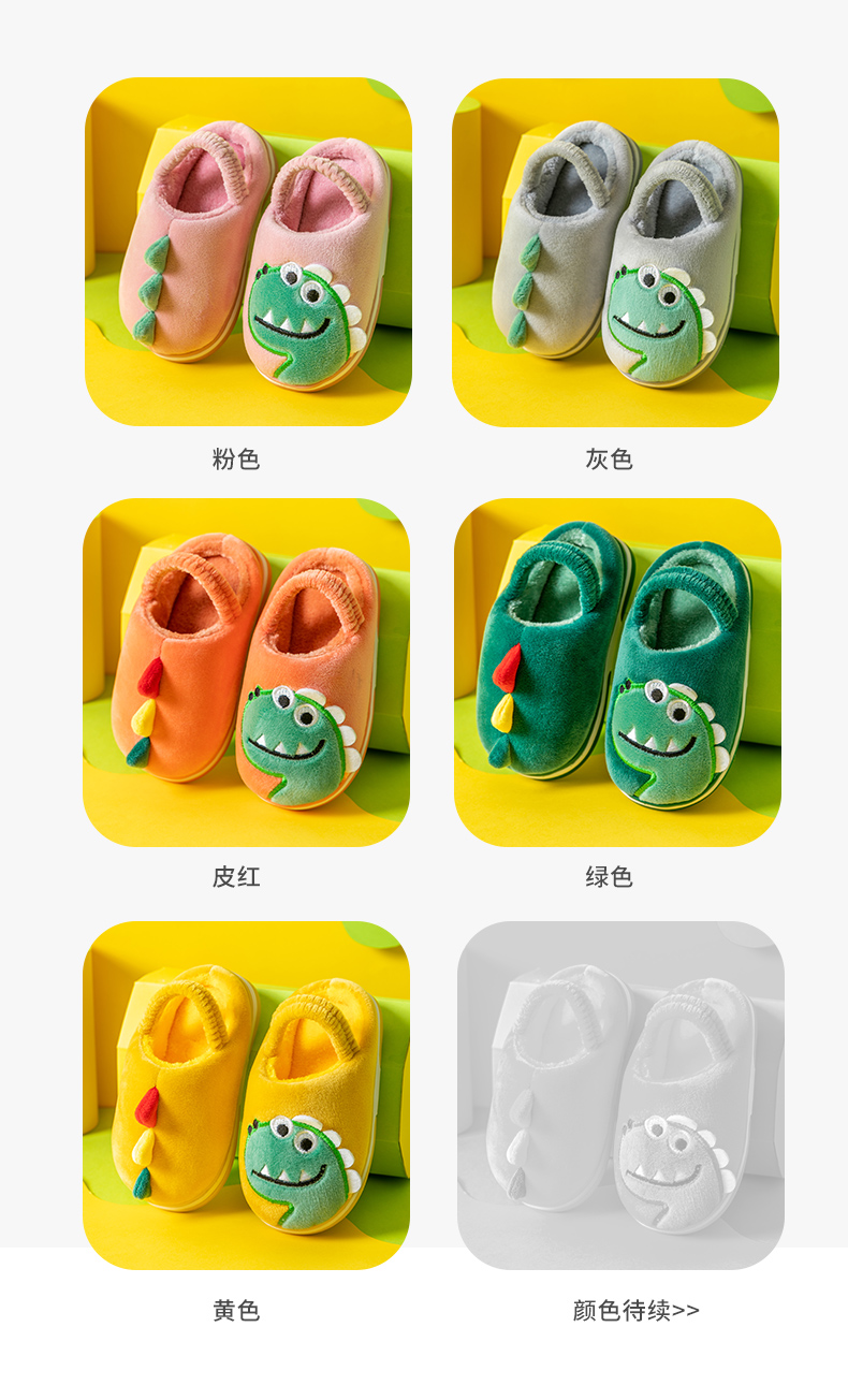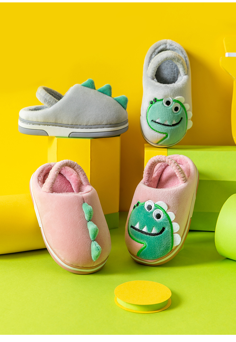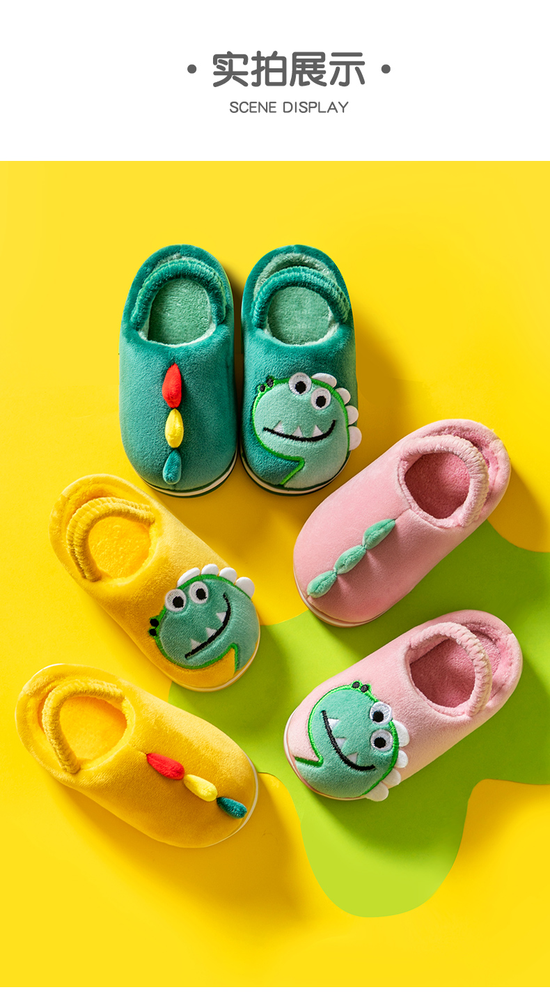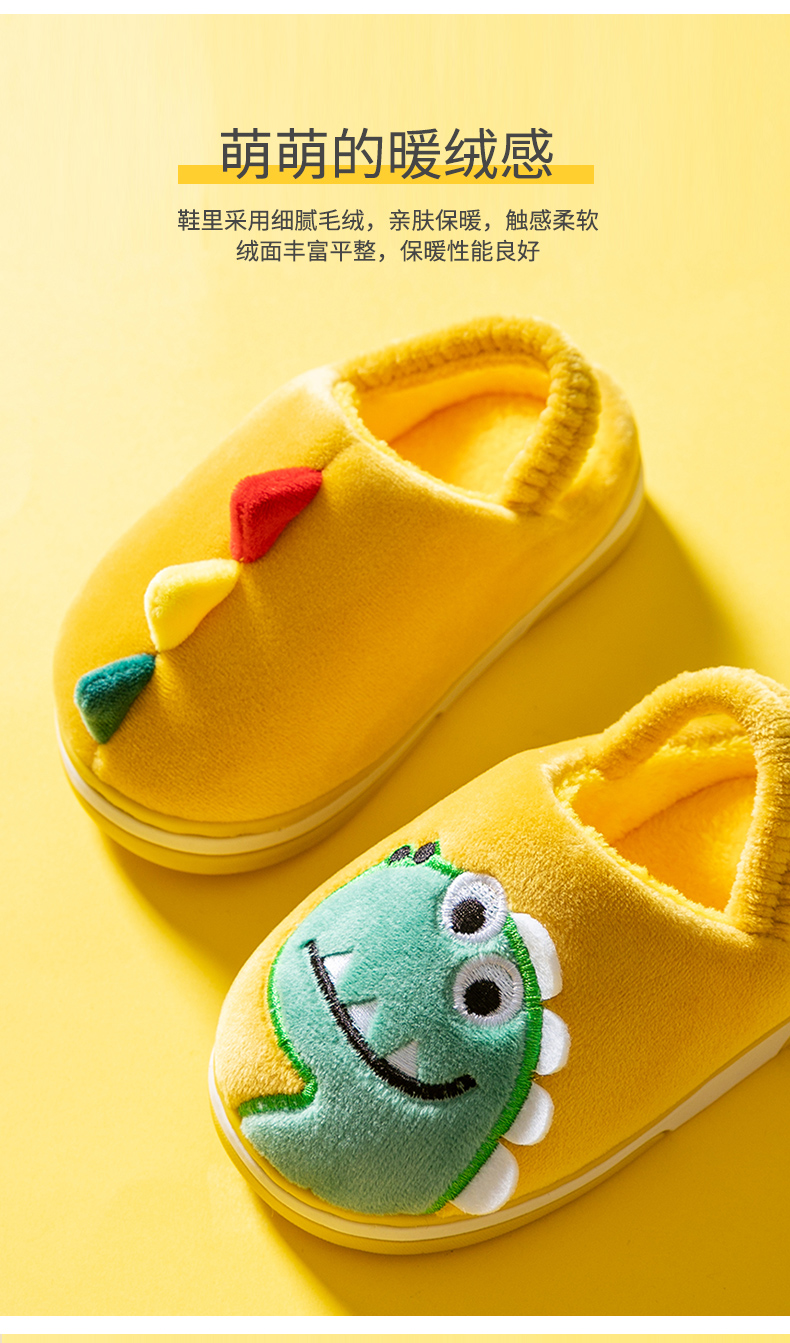 【萌萌的暖绒感】儿童拖鞋秋冬男童棉拖鞋冬季女童宝宝家居鞋小孩恐龙毛 拖鞋