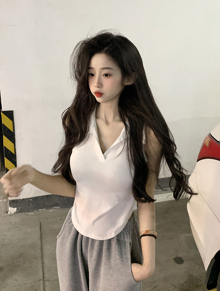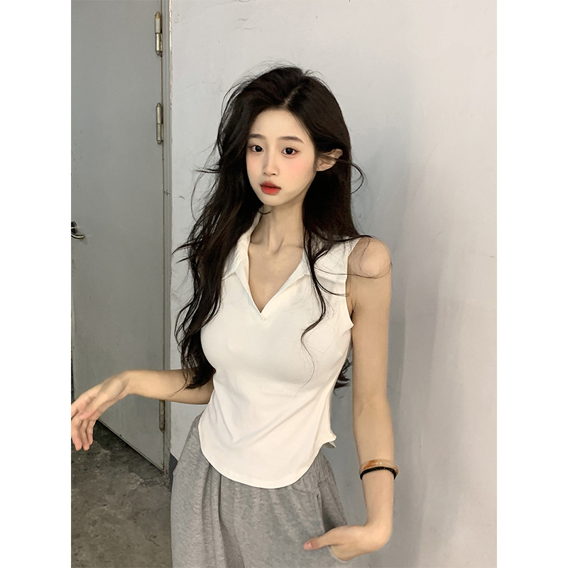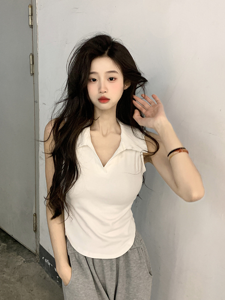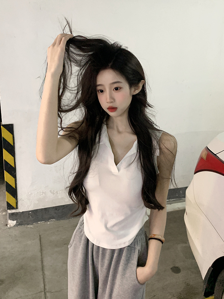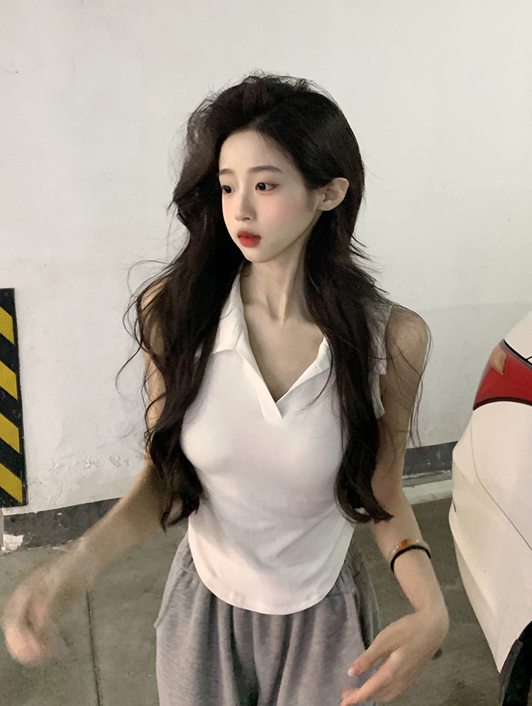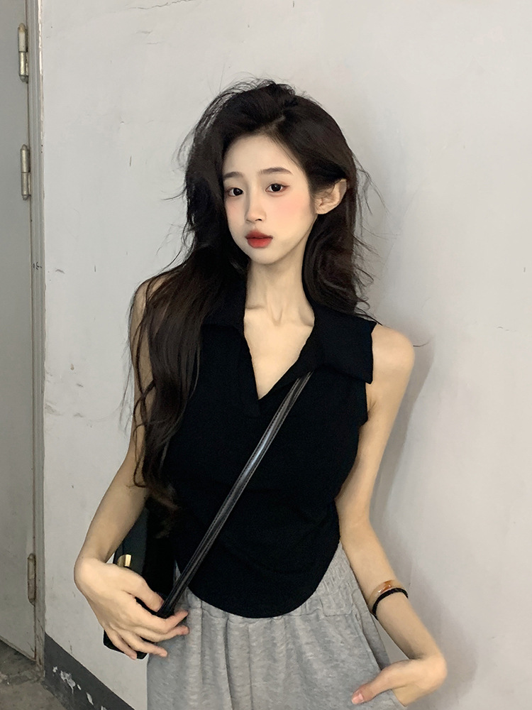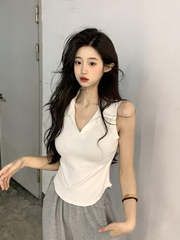 【好看爱穿!纯棉polo领无袖背心】宽松显瘦,洋气减龄,夏季女装休闲打底纯棉polo领无袖背心t恤女上衣潮