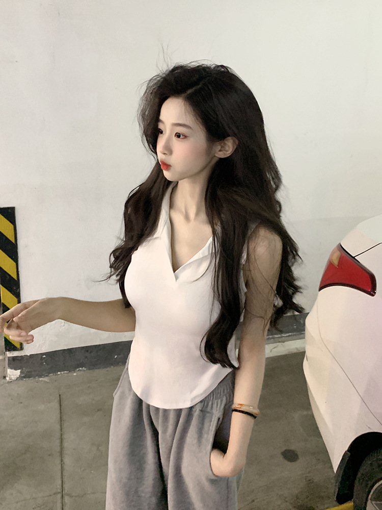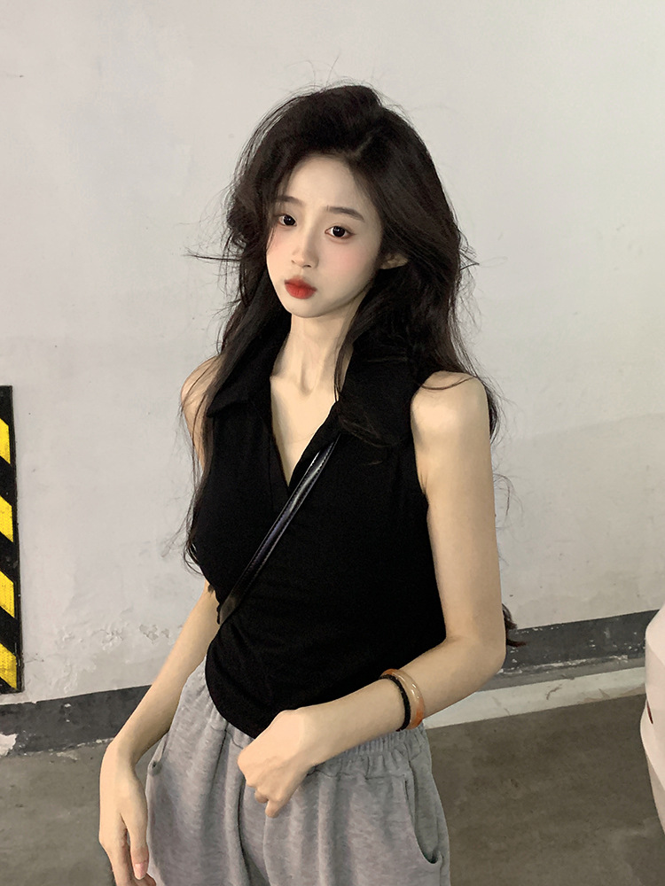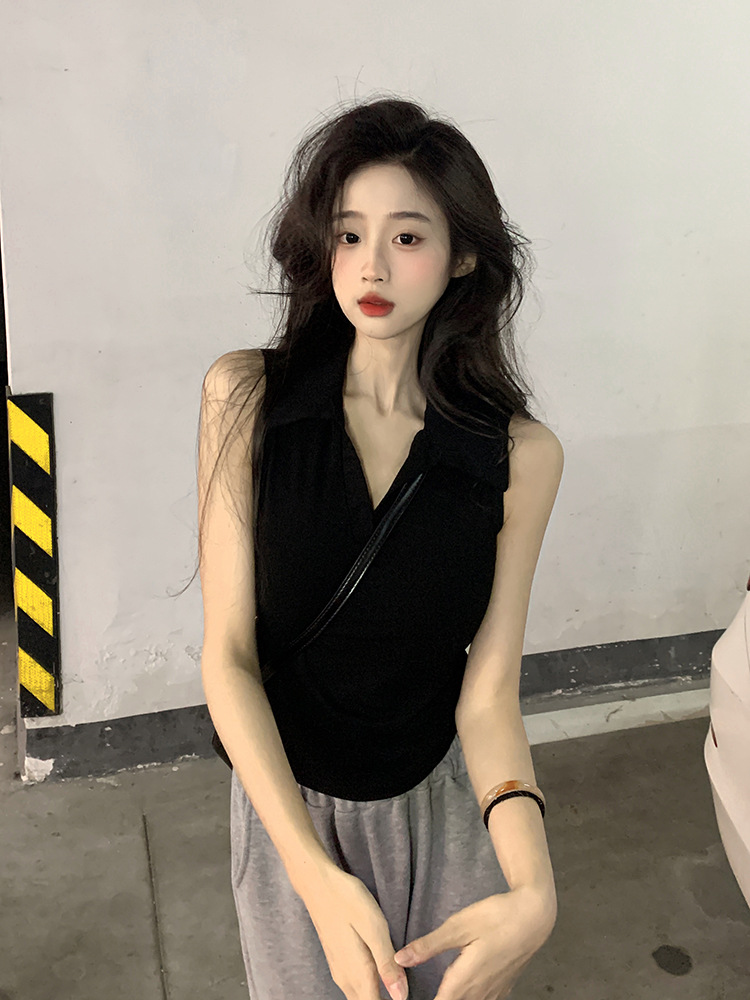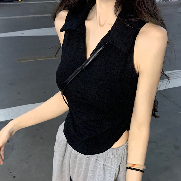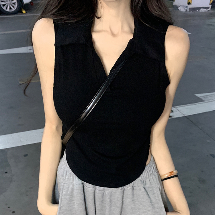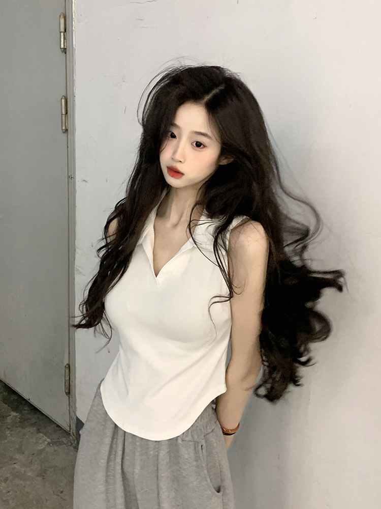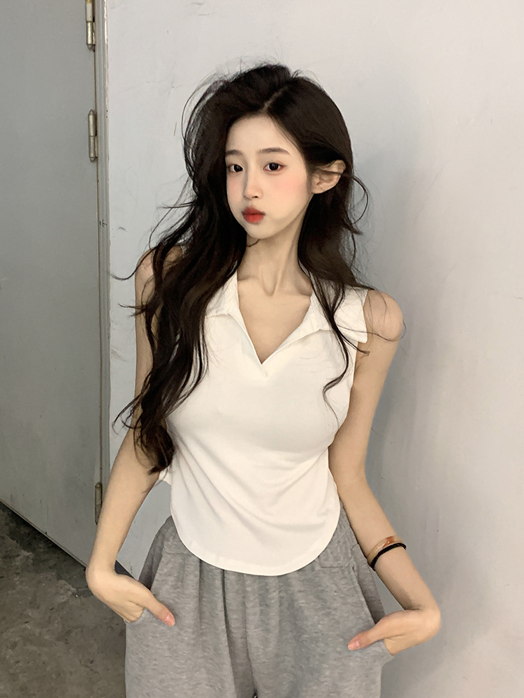 【好看爱穿!纯棉polo领无袖背心】宽松显瘦,洋气减龄,夏季女装休闲打底纯棉polo领无袖背心t恤女上衣潮
