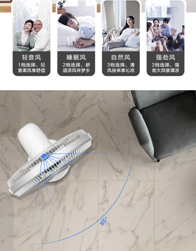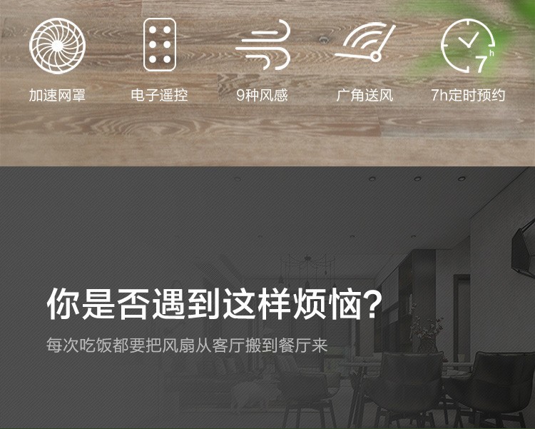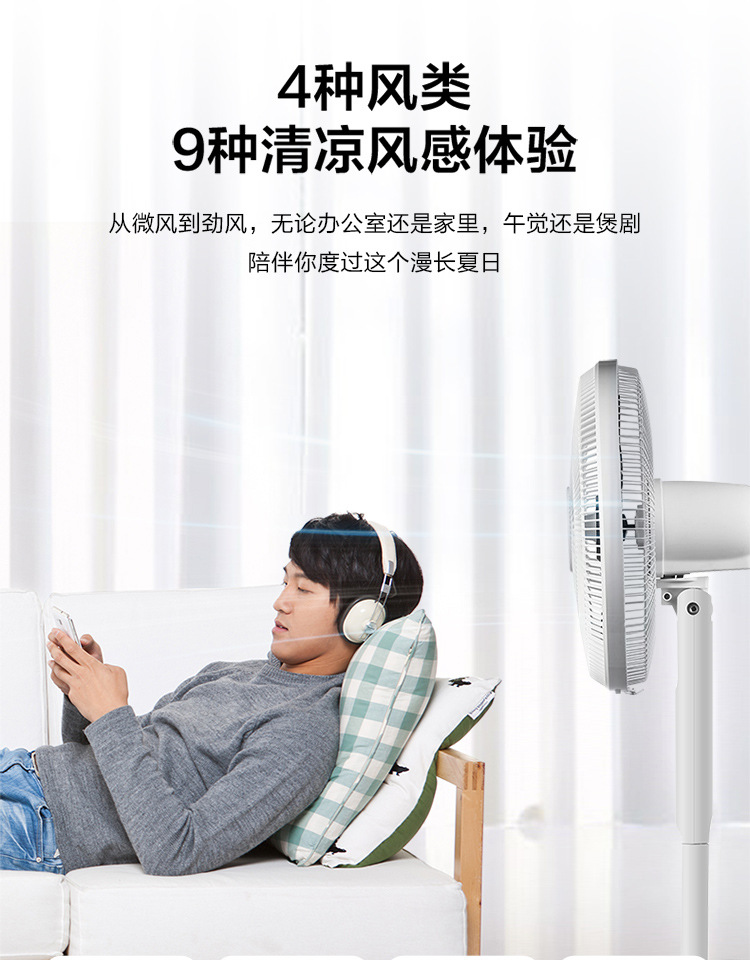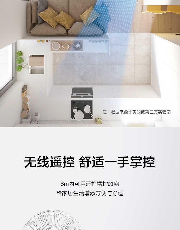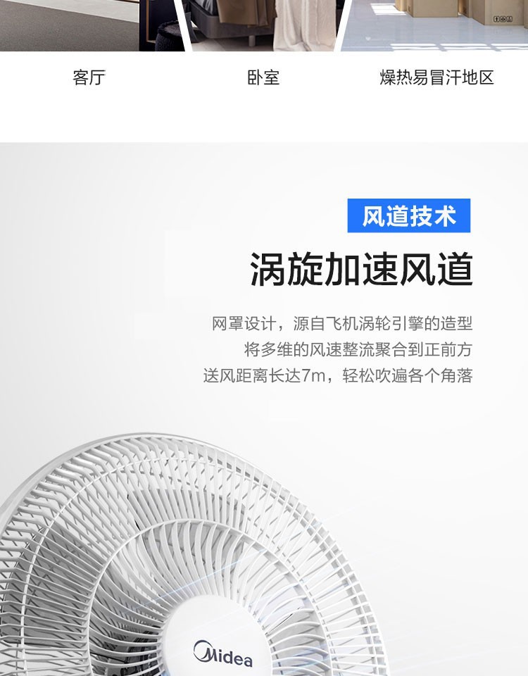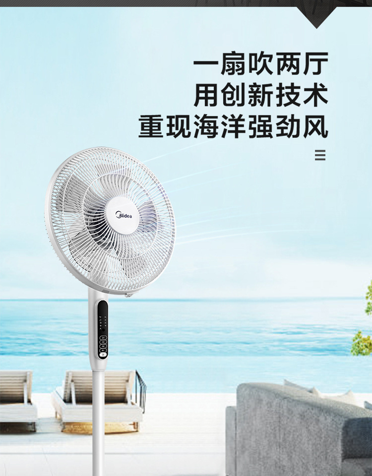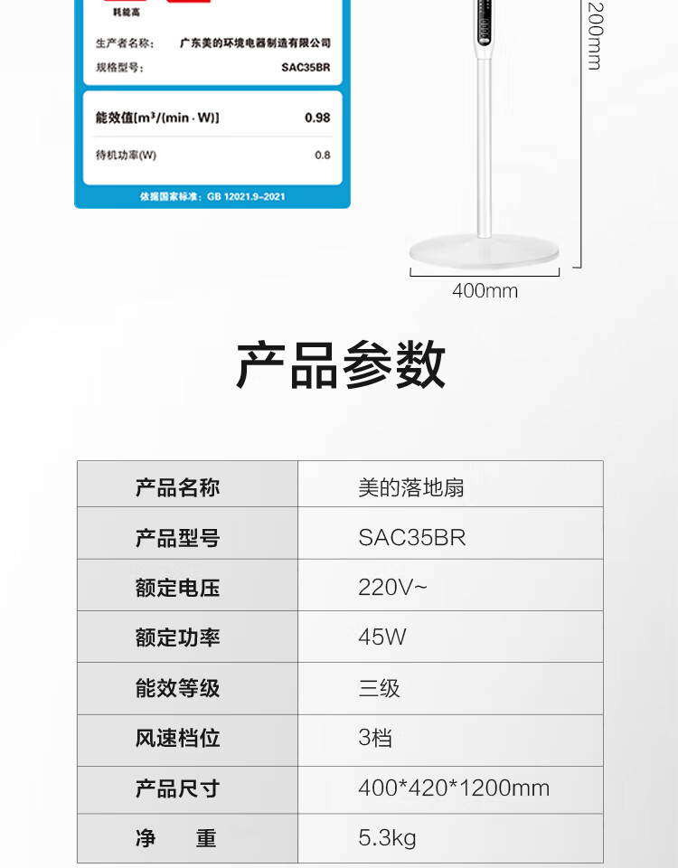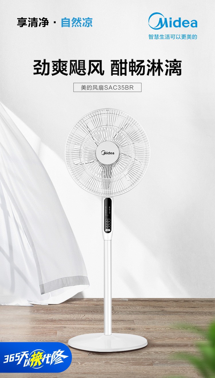 Midea/美的 家用轻音宿舍立式大风电扇摇头节能遥控SAC35BR