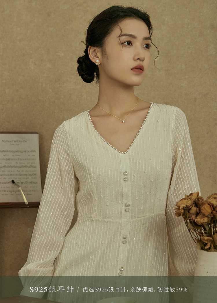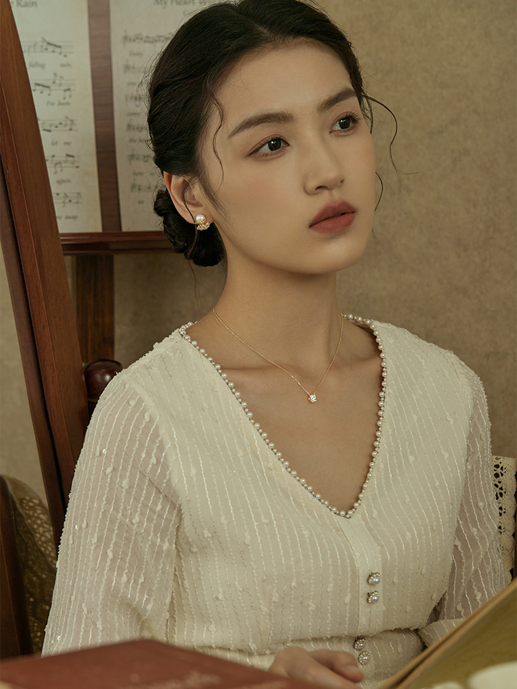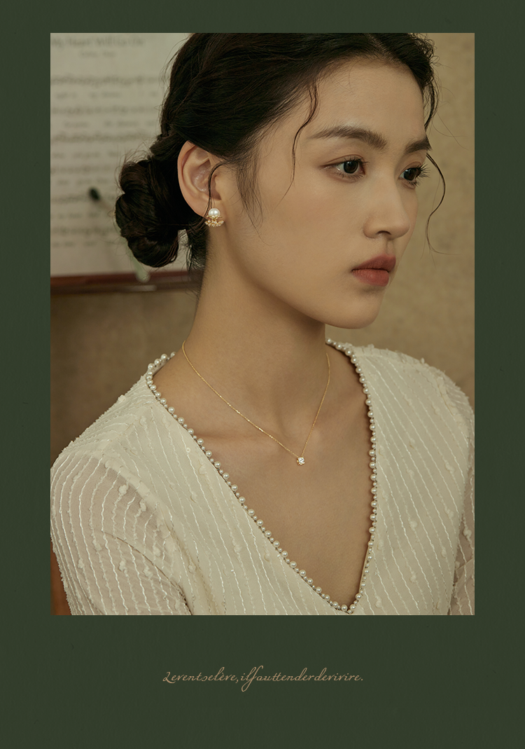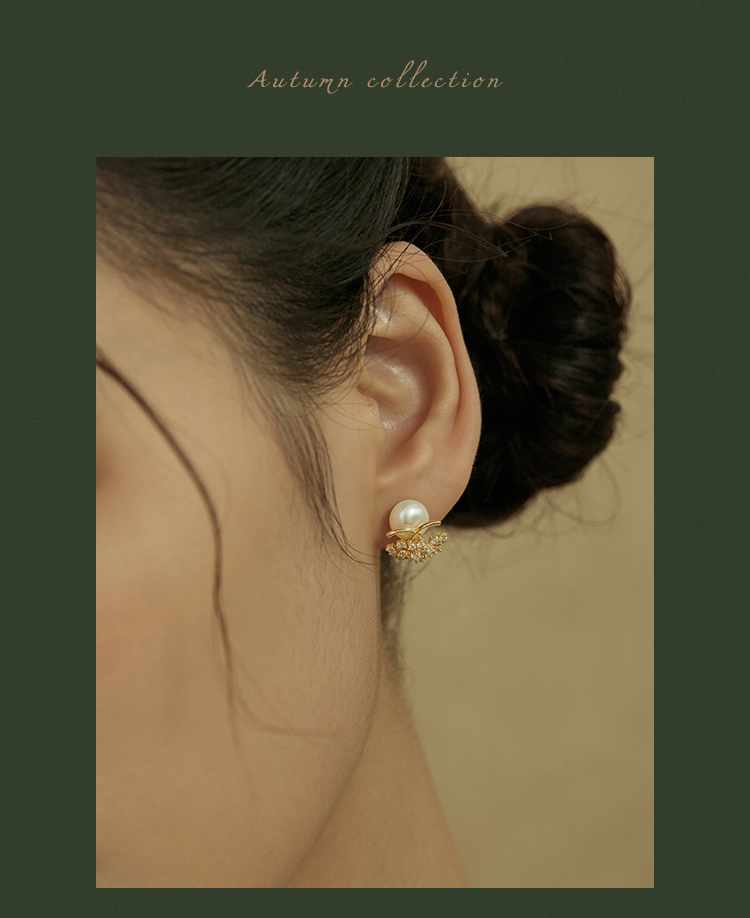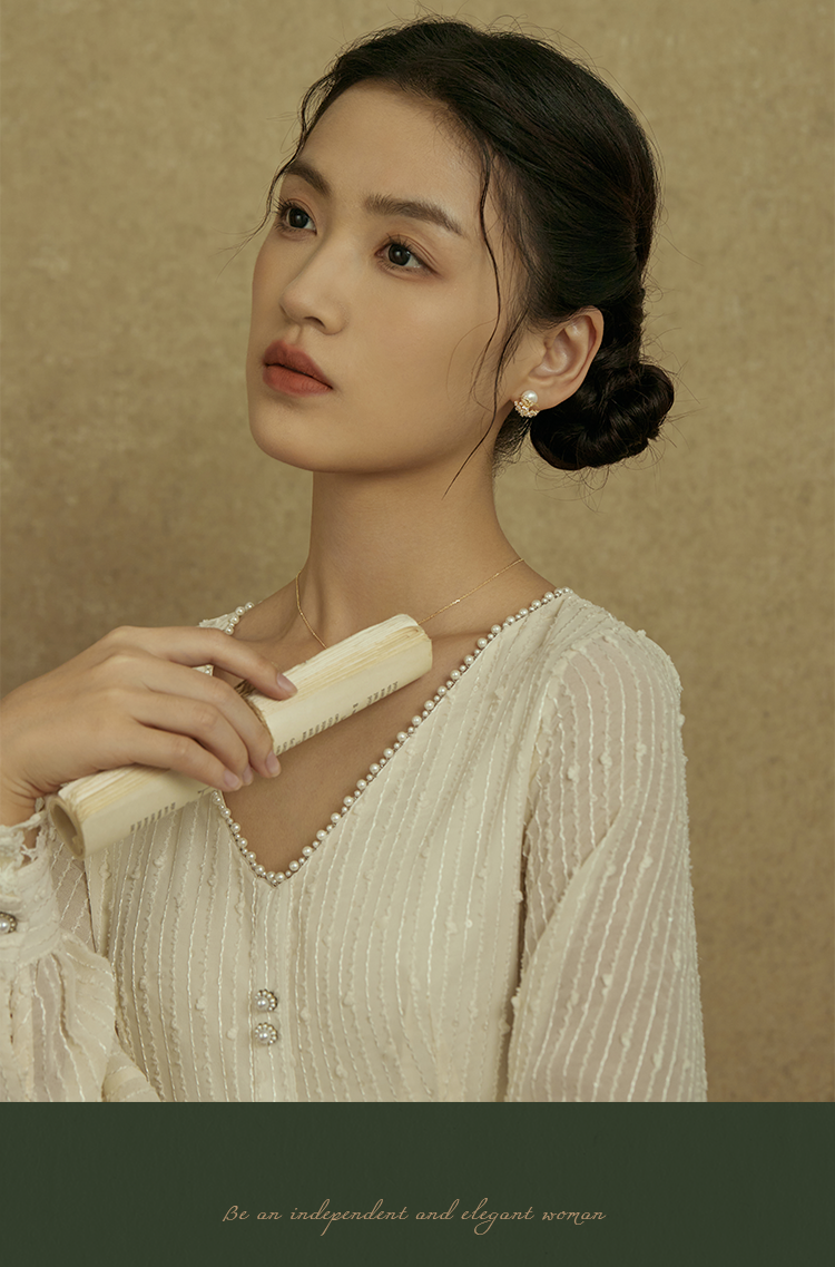 Oflye潮流饰品 镶钻轻奢天然淡水珍珠耳钉女新款耳环小众设计耳饰