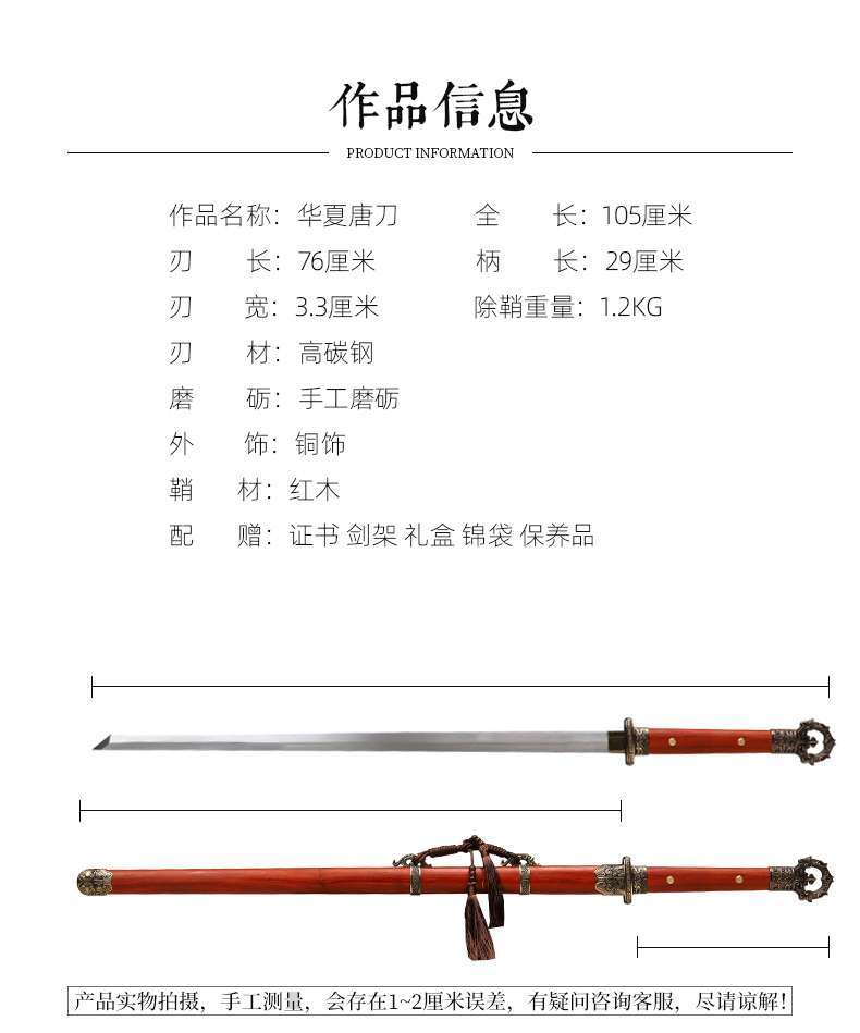 华夏唐横刀剑 唐横刀剑 传统手工宝剑 龙泉沈广隆一体剑 未开刃