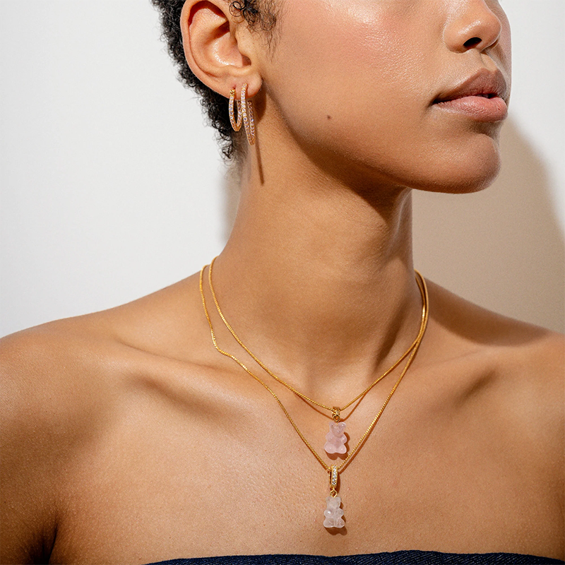 订购4周到|CRYSTAL HAZE-Crystal Nostalgia Bear-pave-玫瑰石英小熊 吊坠(金色环扣)[挪威设计师]