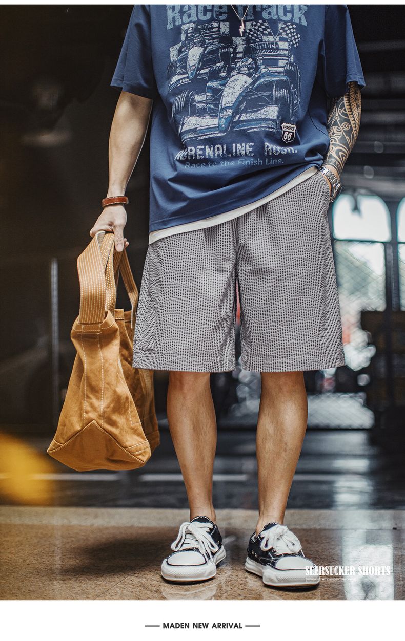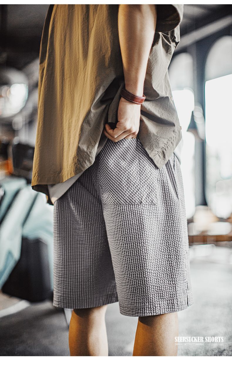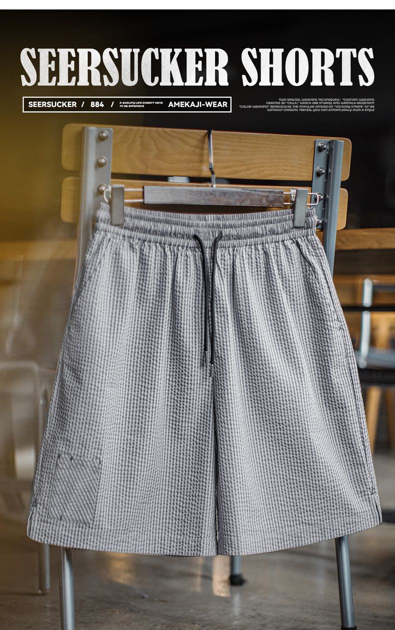 工装优选 美式休闲泡泡纱短裤棉透气日系通勤简约五分裤男春夏