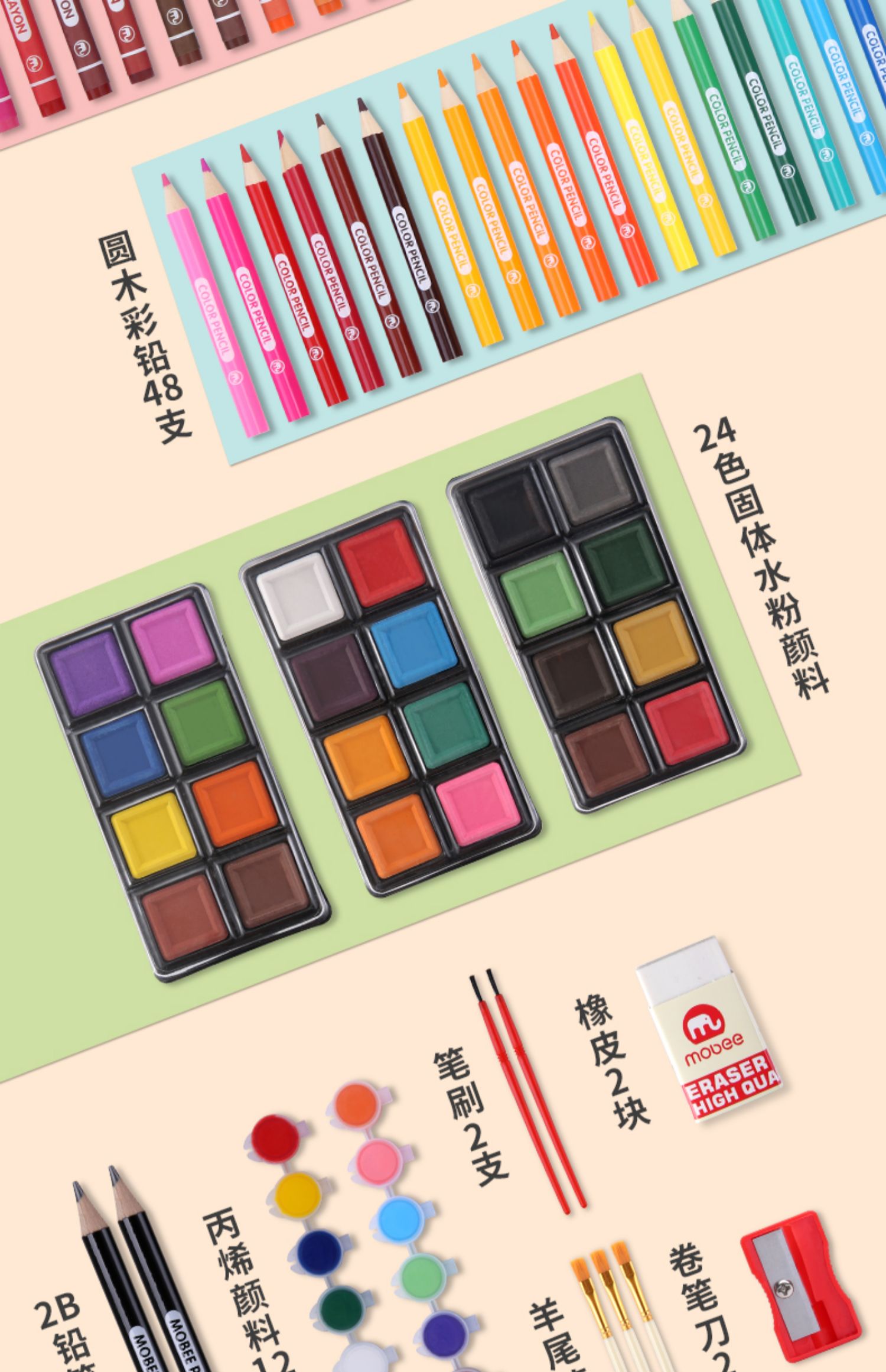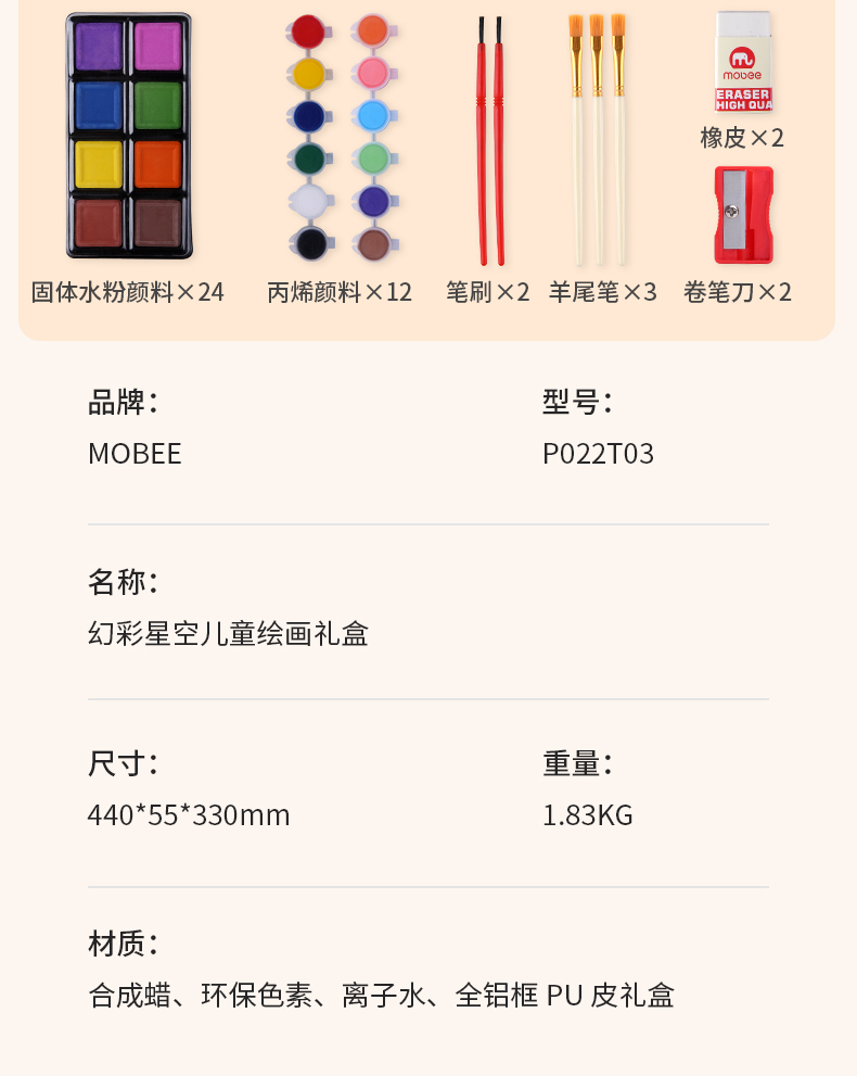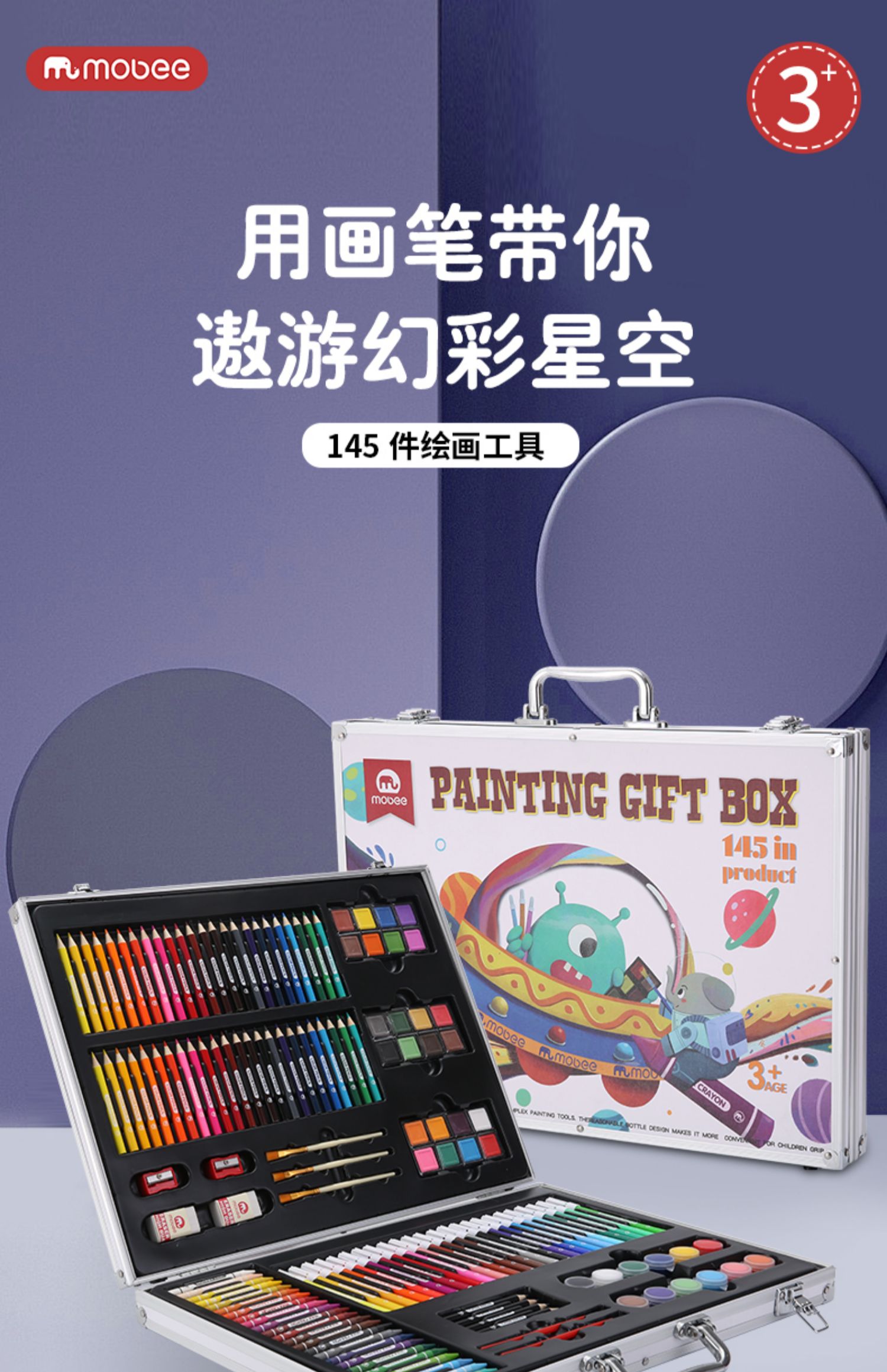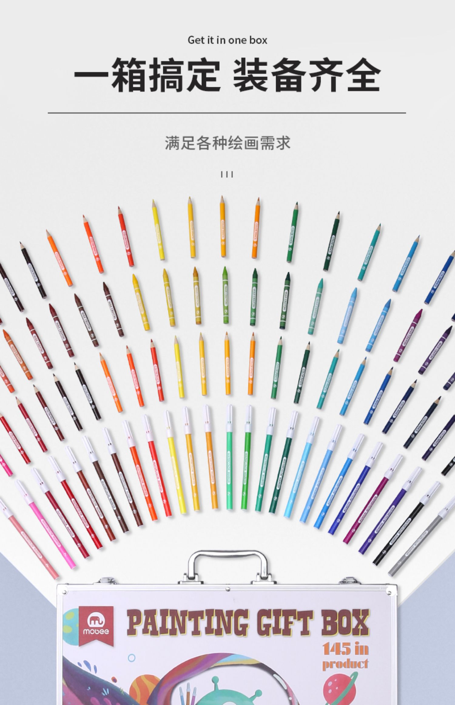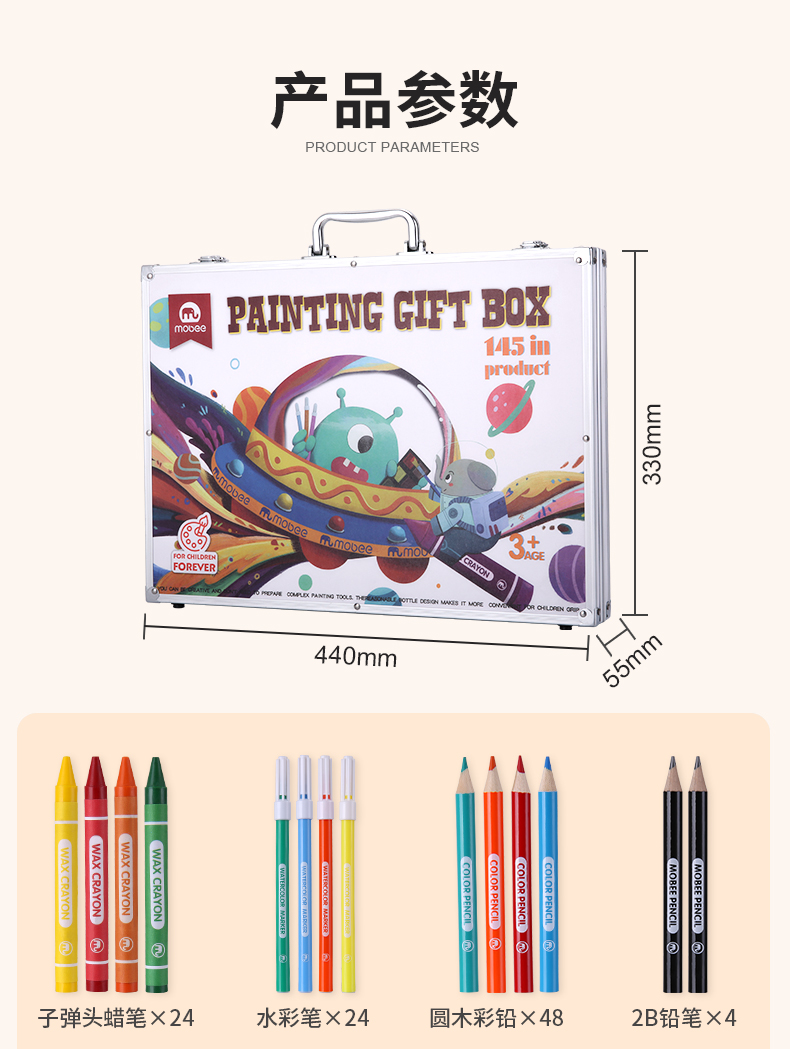 mobee儿童画画工具 水彩笔画笔礼盒145件套装