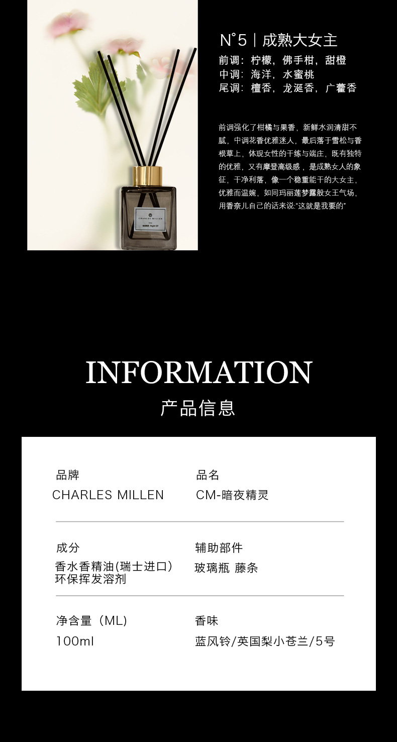 CHARLES MILLEN藤条香氛暗夜精灵 多款香味可选 100ml/瓶