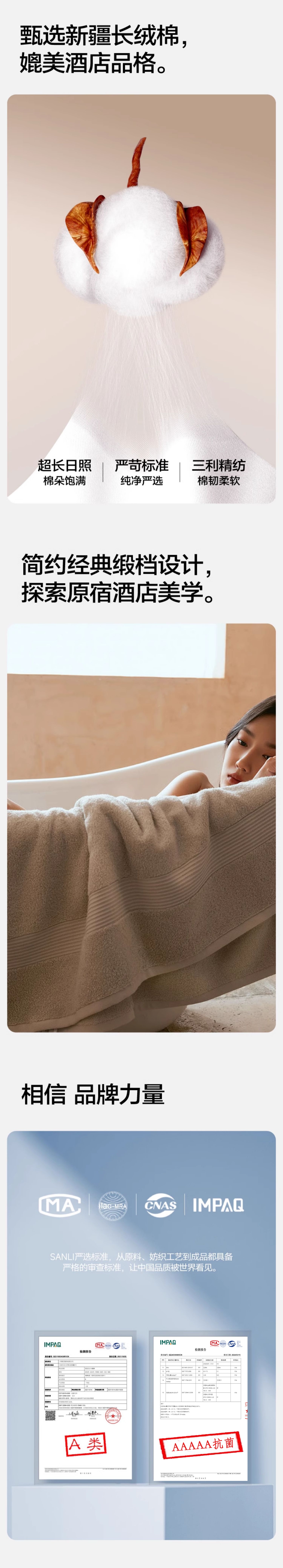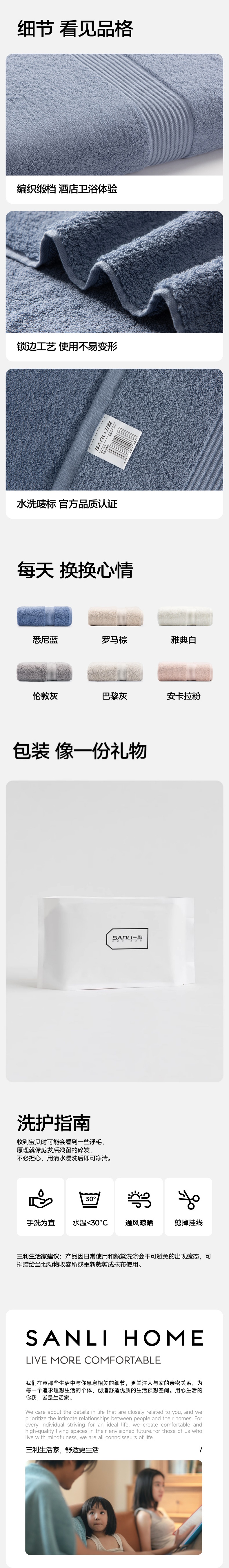 三利毛巾纯棉洗脸家用男洗澡加厚吸水加大五星酒店毛巾大号女