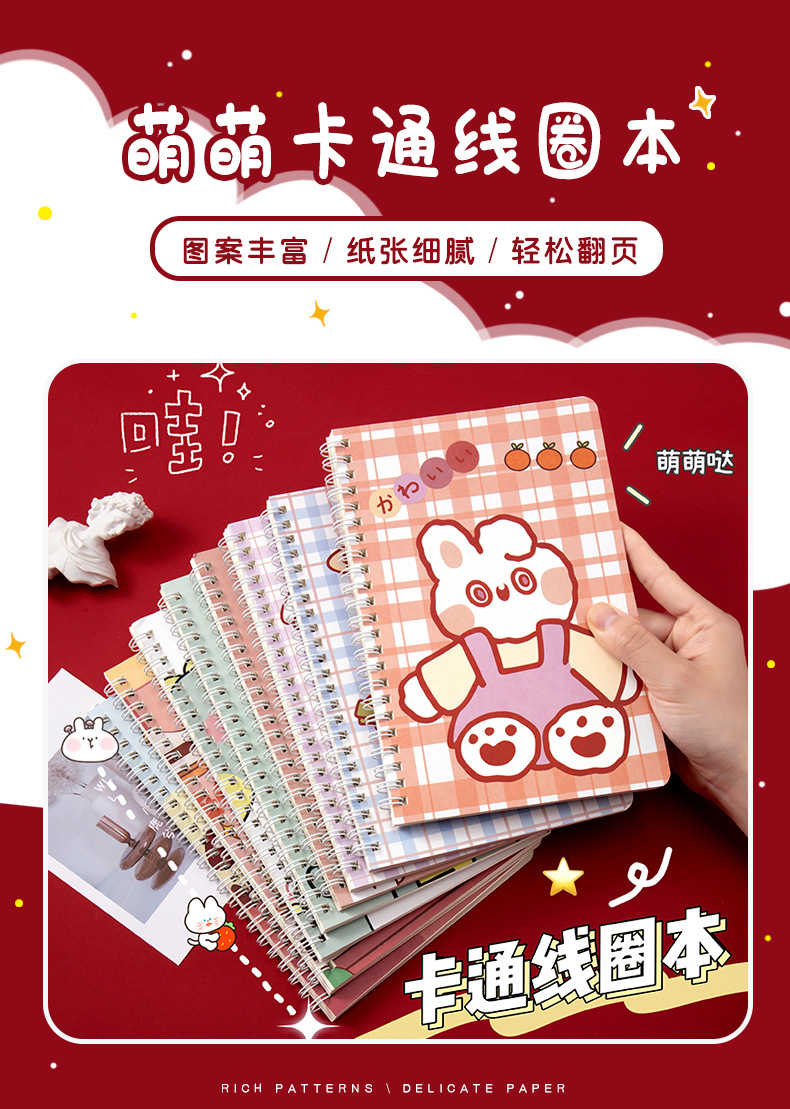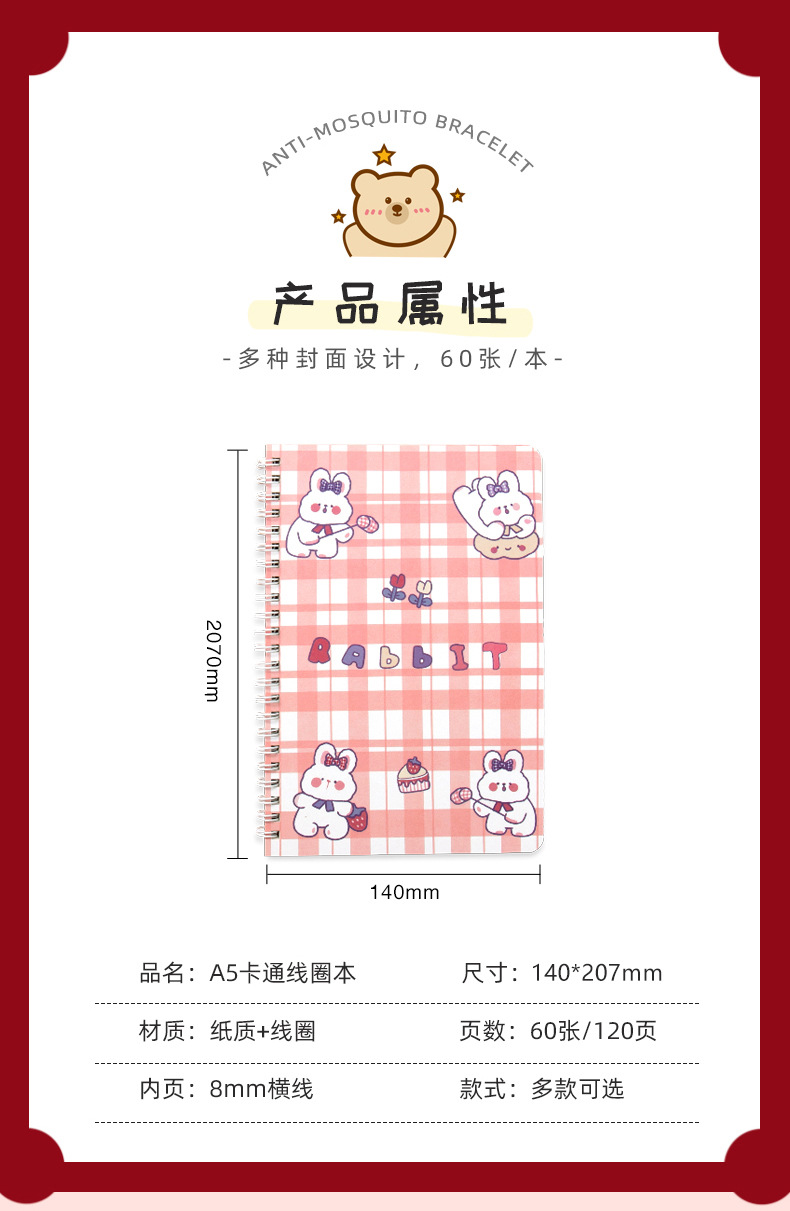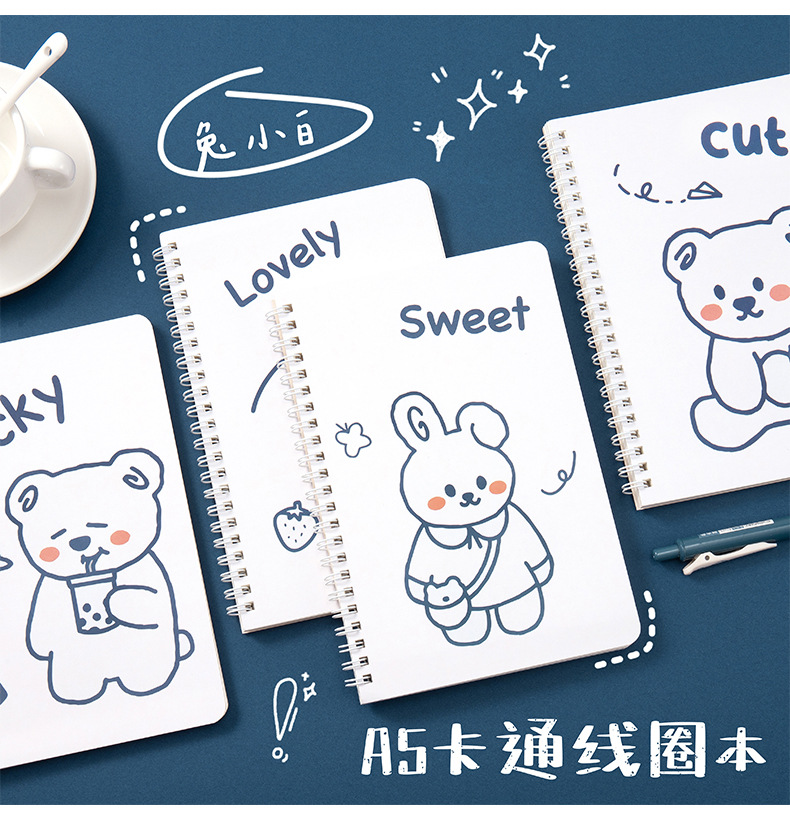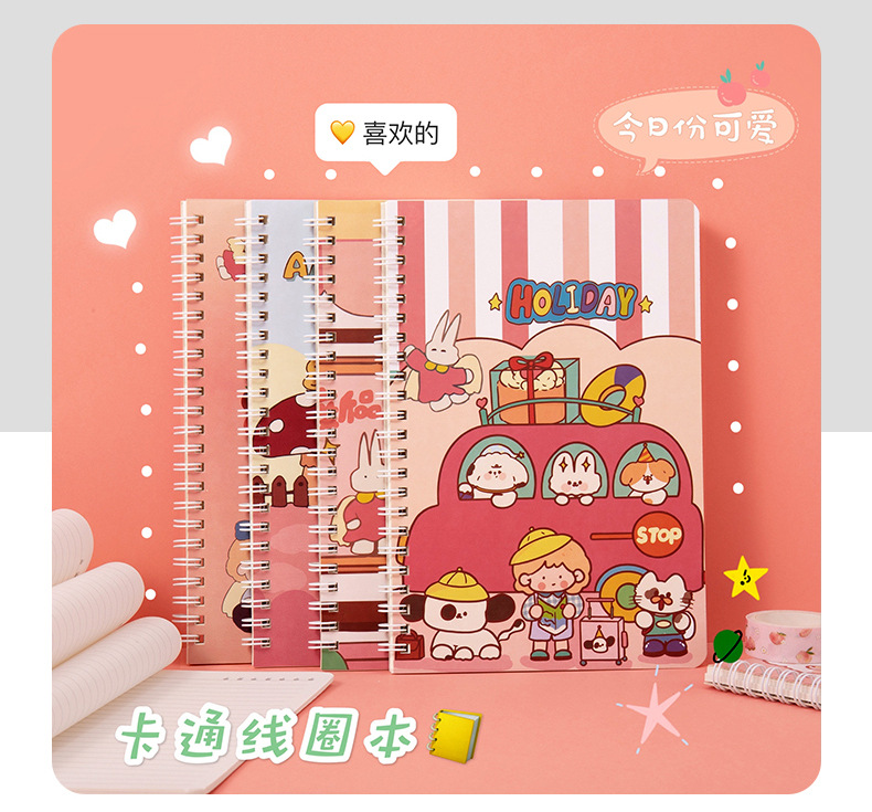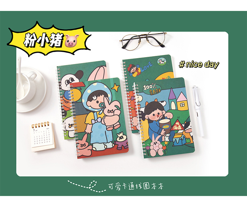 豚门日常可爱A5线圈本加厚横线本学生笔记本记事本子/本(图案随机)
