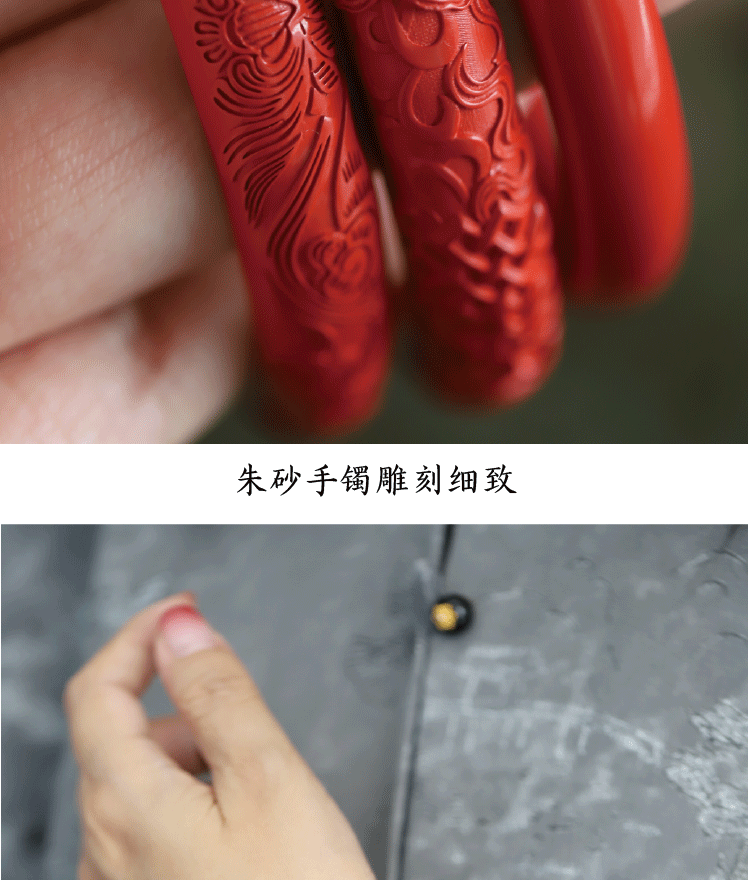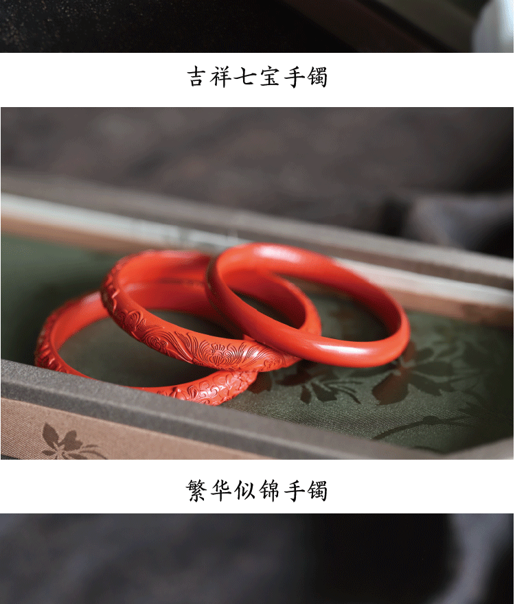 米马饰品 天然原款高含量朱砂手镯 吉祥八宝 繁花似锦
