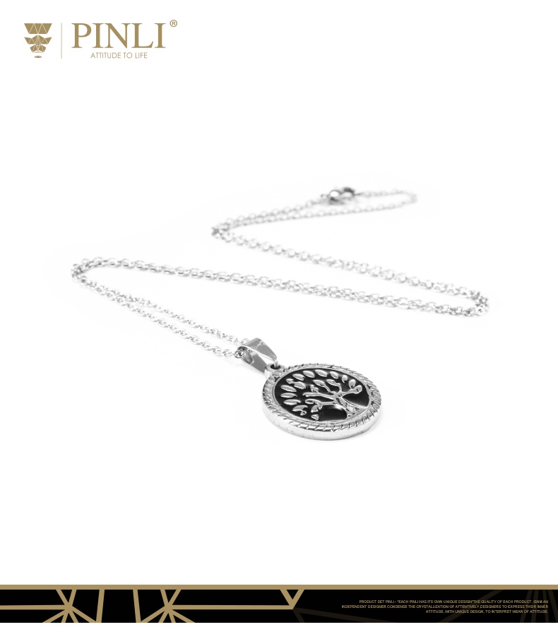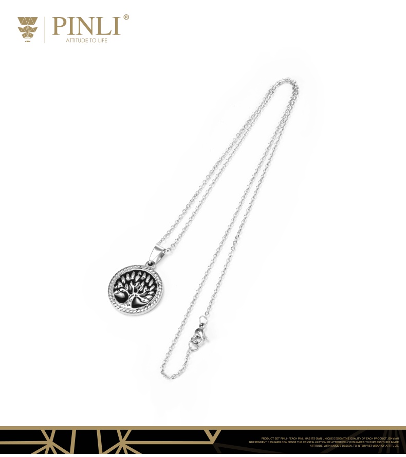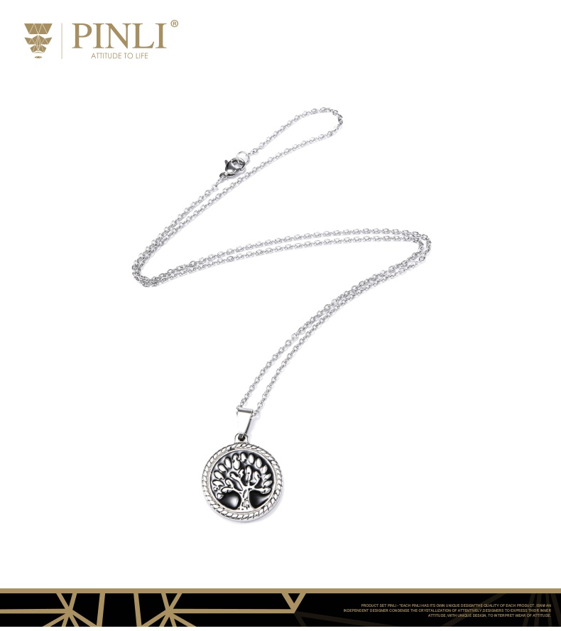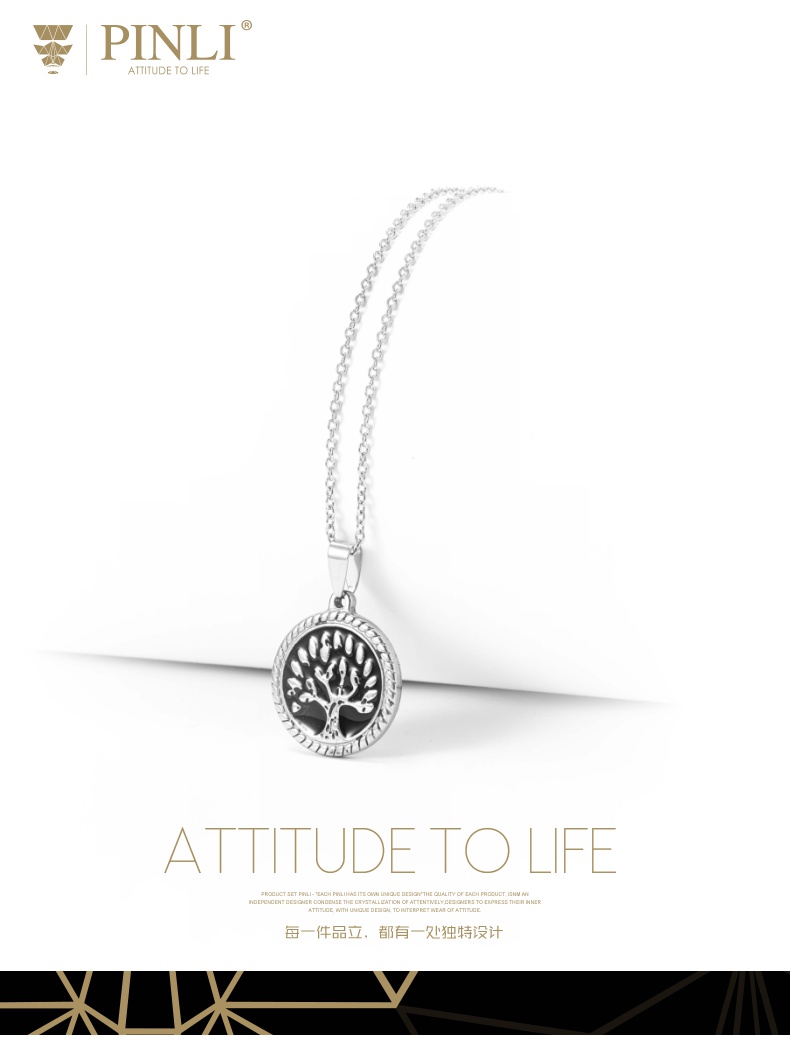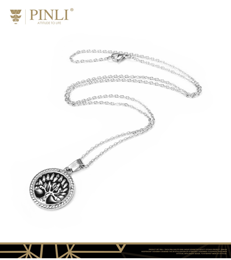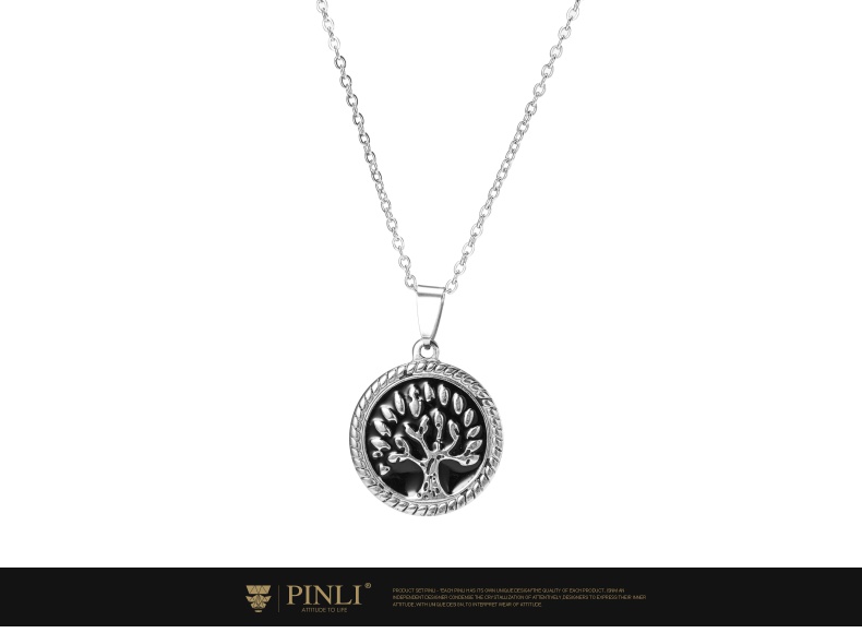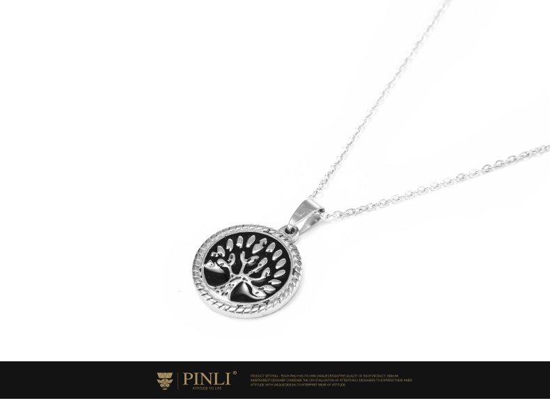 PINLI品立2021街头嘻哈不锈钢圆形大树吊坠男项链饰品D212628378