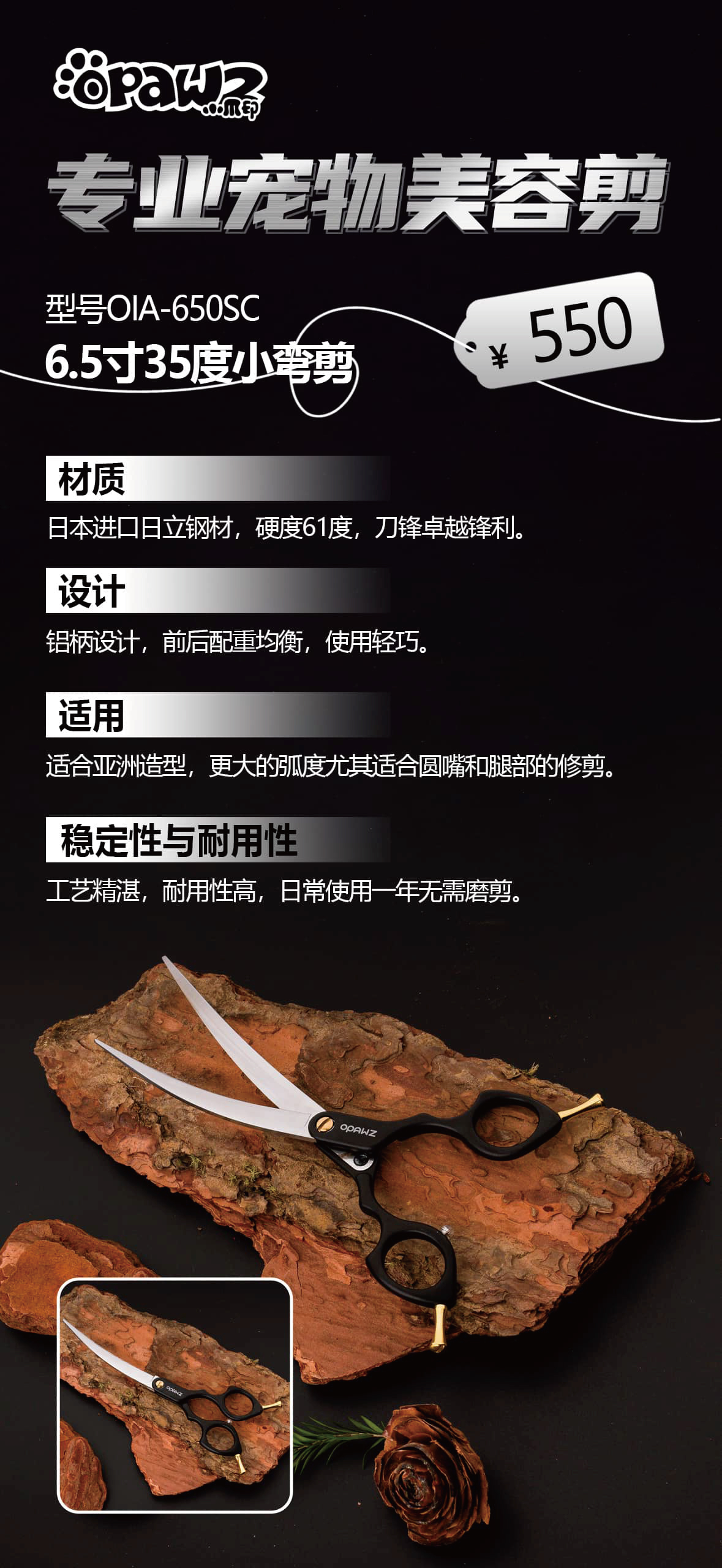 铝柄超级弯剪-6.5寸(OIA-650SC) OPAWZ(小爪印)