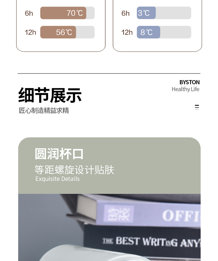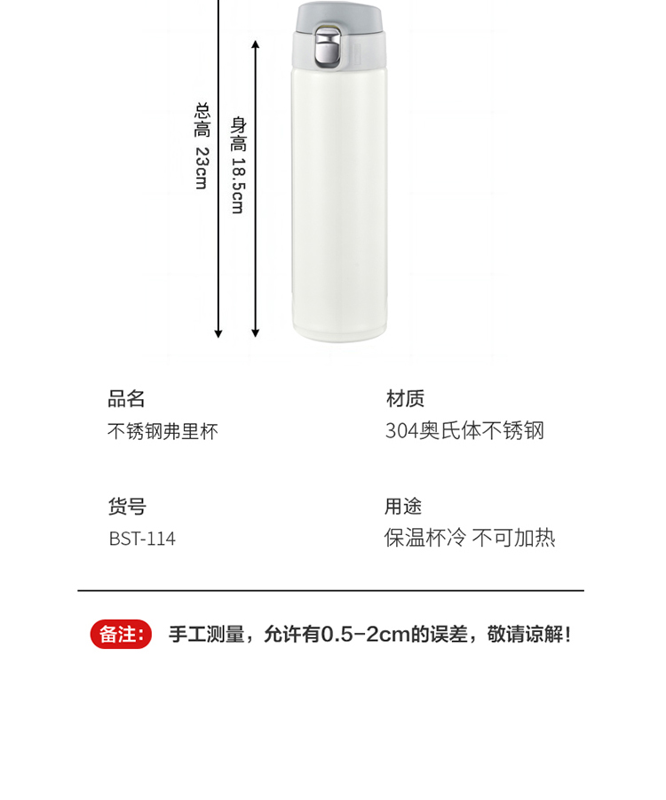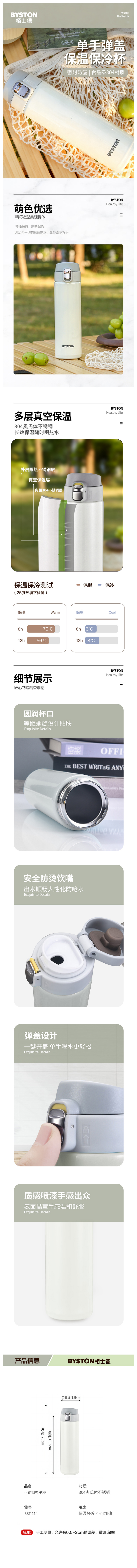栢士德BYSTON 不锈钢弗里真空保温杯BST-114(颜色随机)/480ML