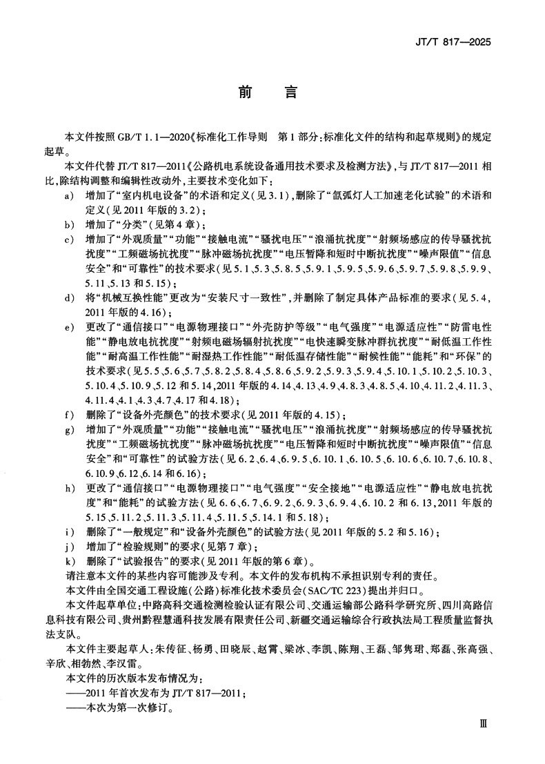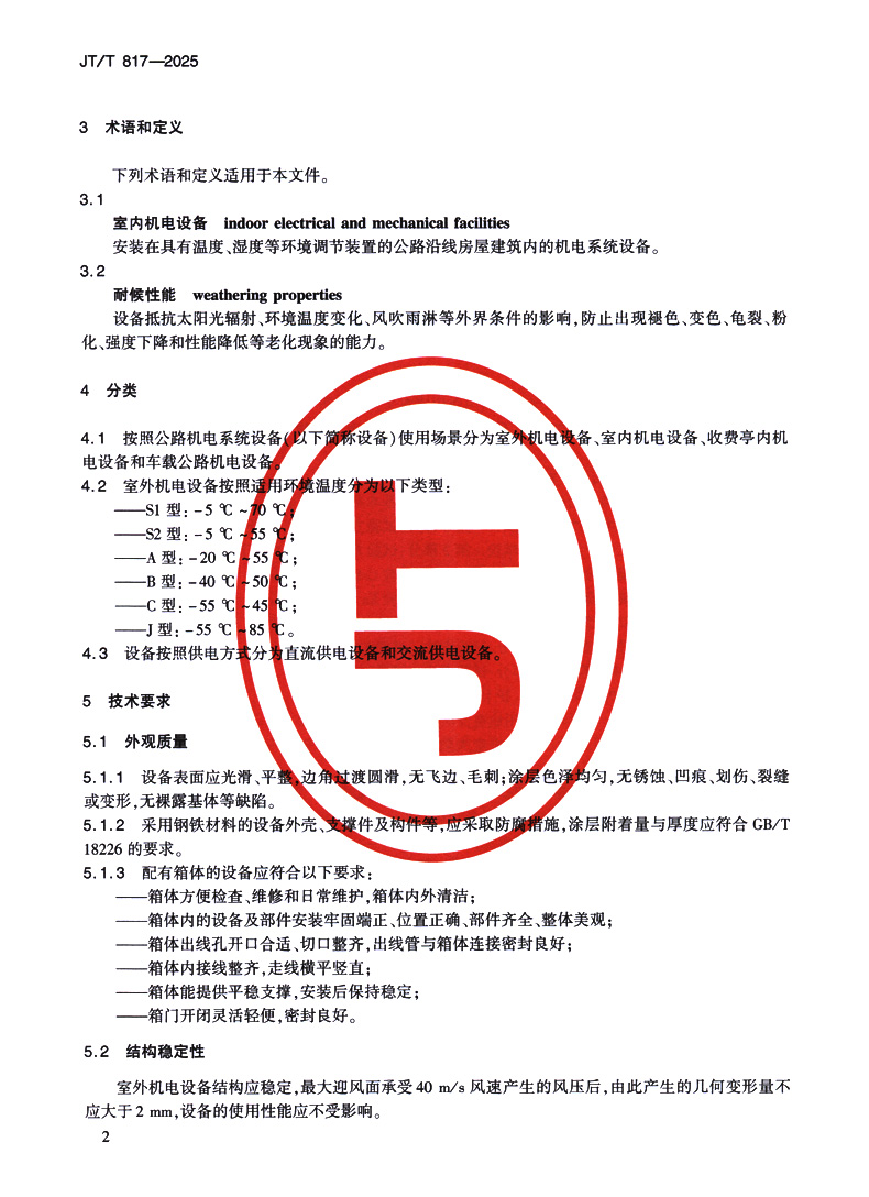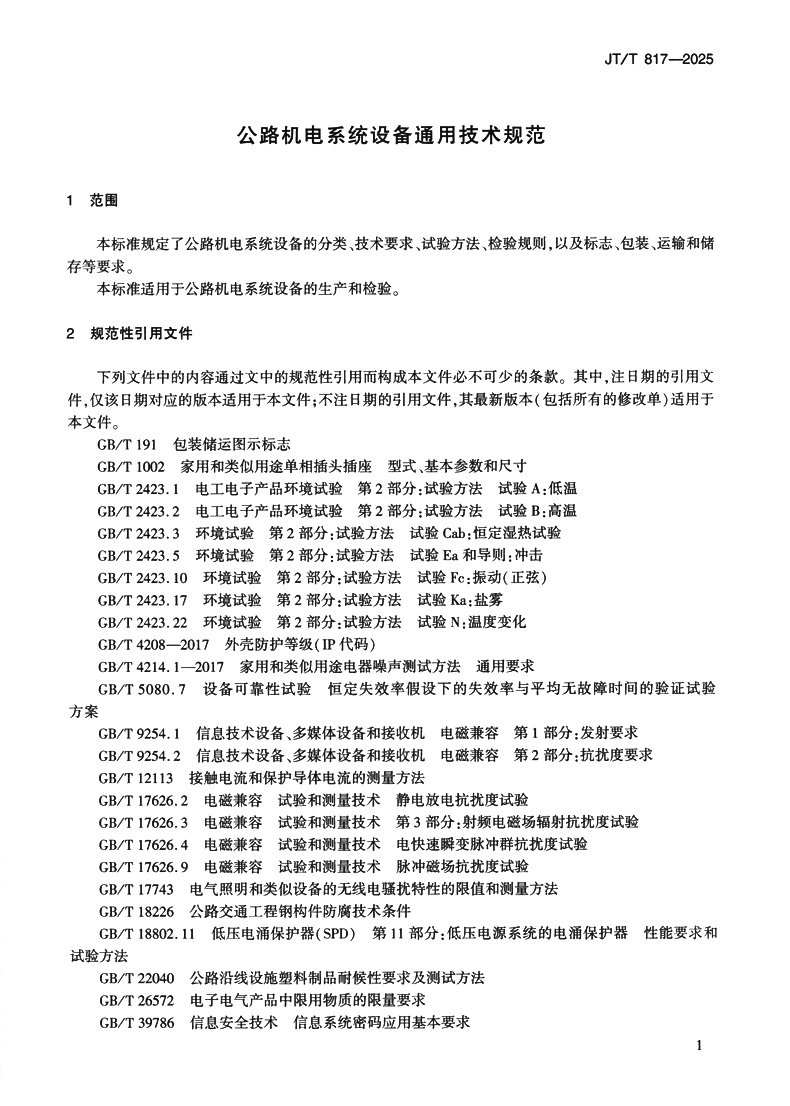 | 公路机电系统设备通用技术规范(JT/T 817—2025) | ||