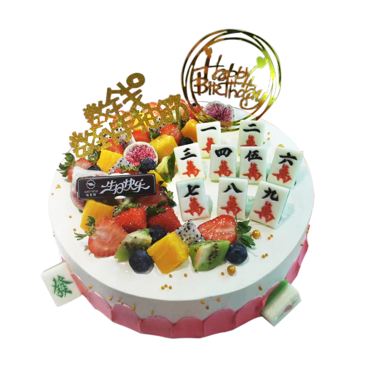 味美特“麻将水果”风格定制水果奶油蛋糕-麻将均是巧克力可以放心食用的,蛋糕夹层是果酱儿【三选一】+扁桃巧克力脆脆搭配