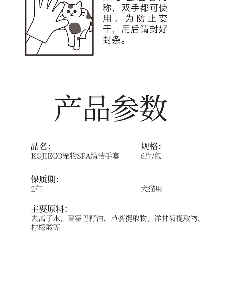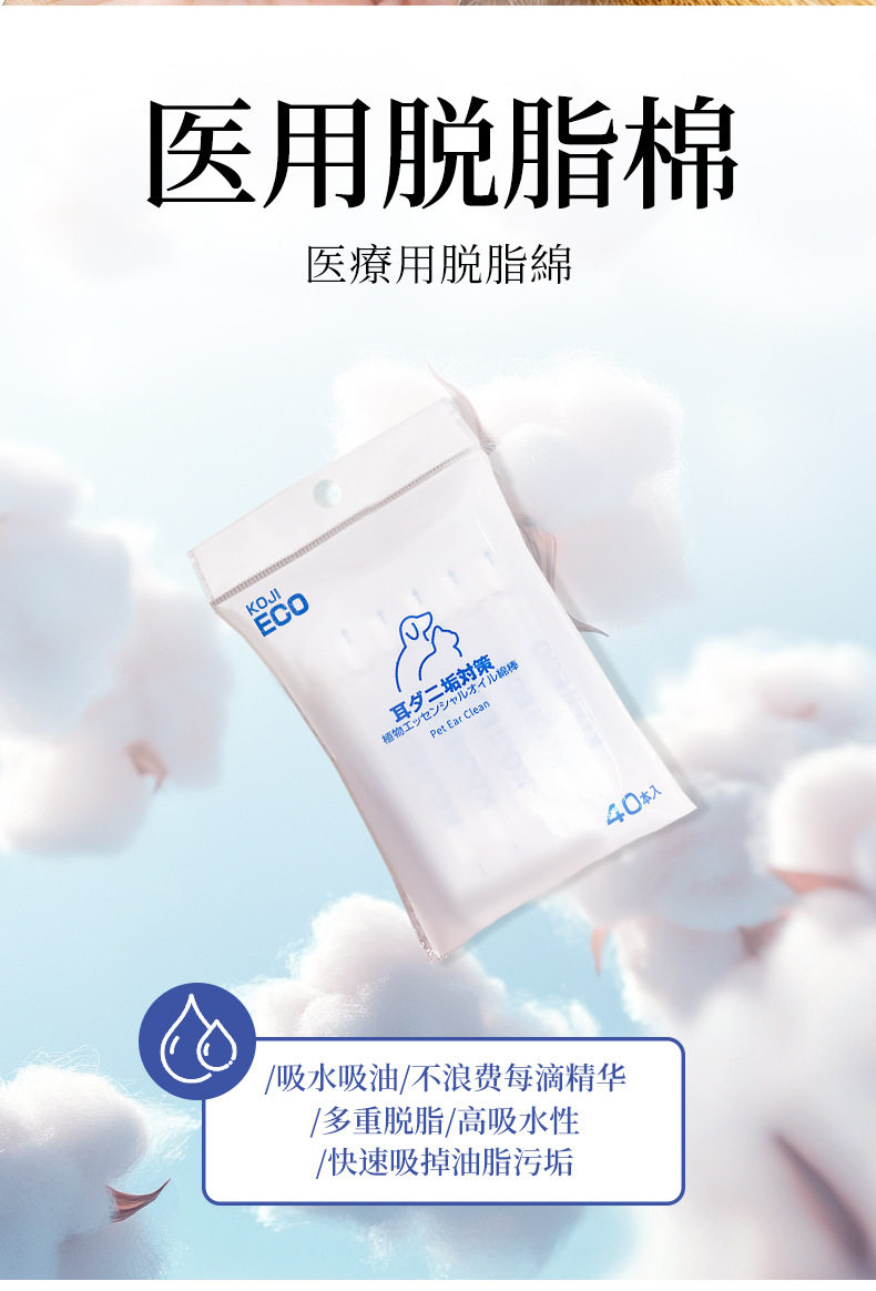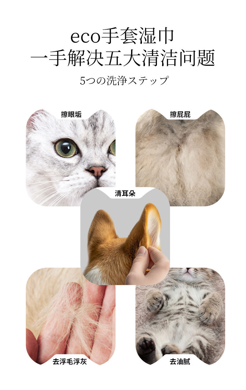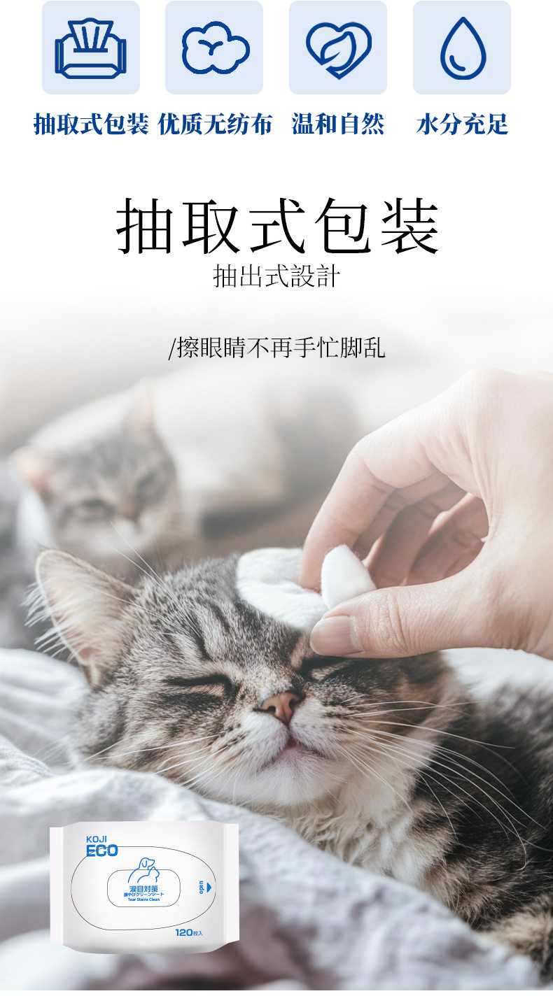 KOJIMA ECO跨境宠物湿巾猫狗湿纸巾精油棉棒手套除臭剂泪痕湿巾