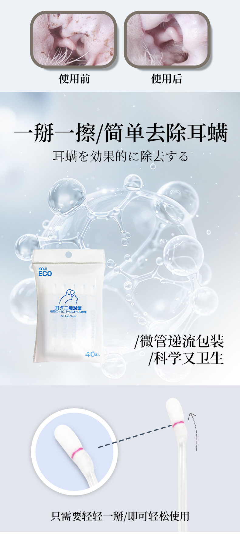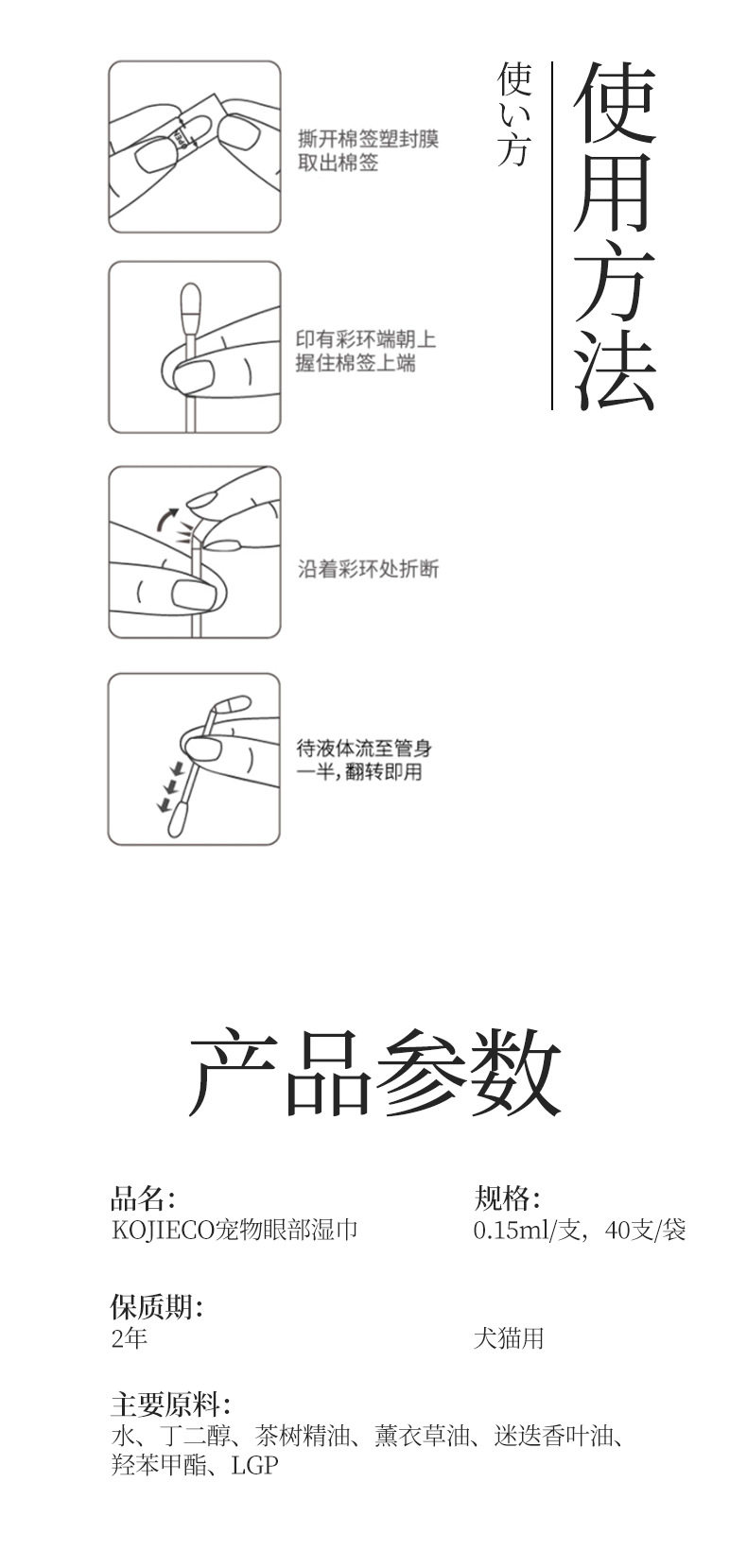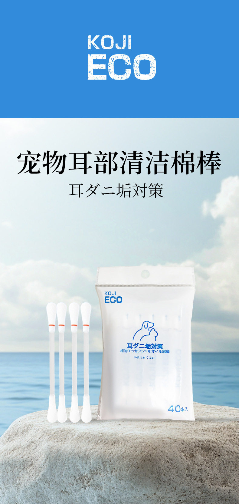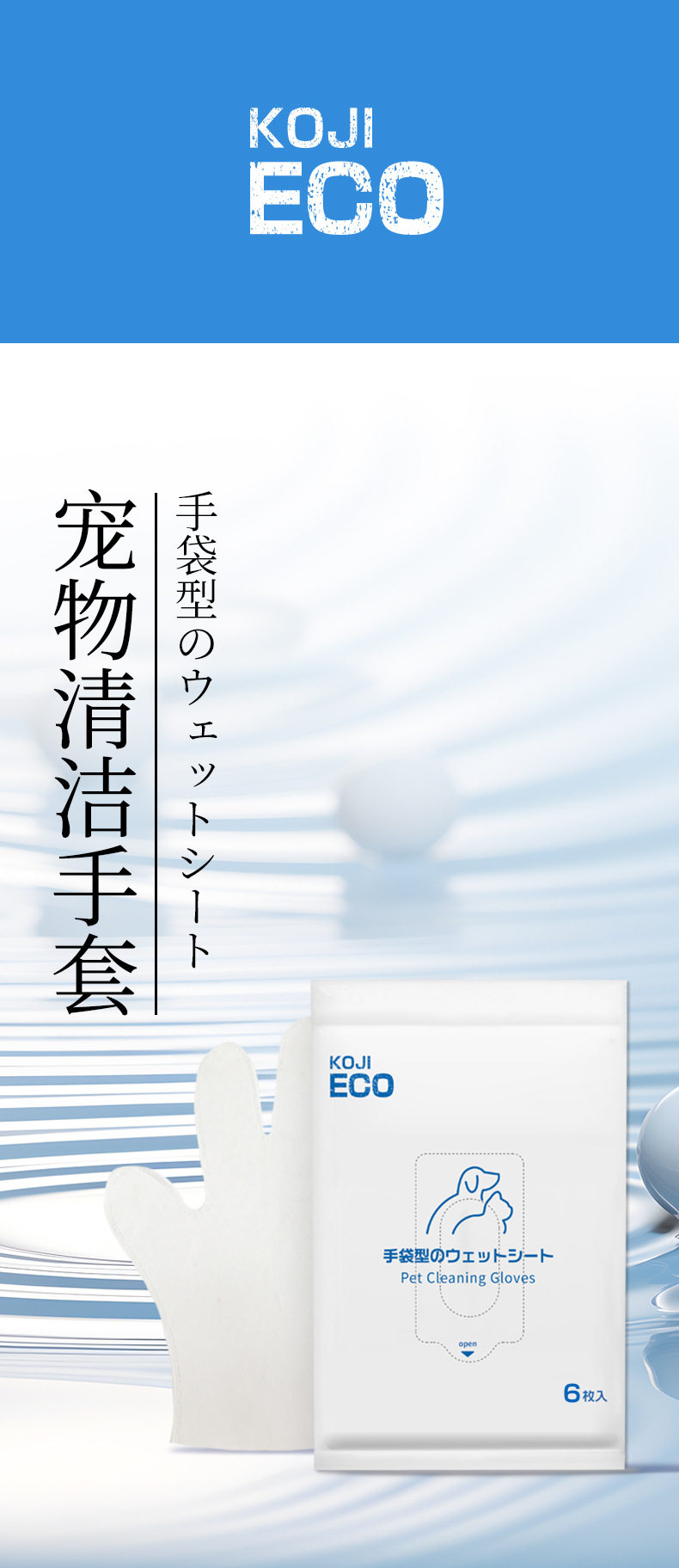 KOJIMA ECO跨境宠物湿巾猫狗湿纸巾精油棉棒手套除臭剂泪痕湿巾