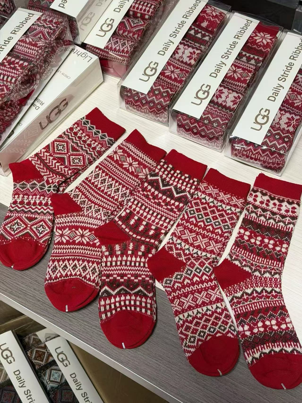 礼盒装费尔岛提花袜,UGG马年限定红袜礼盒来啦!