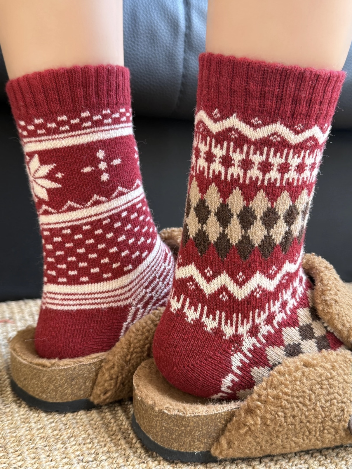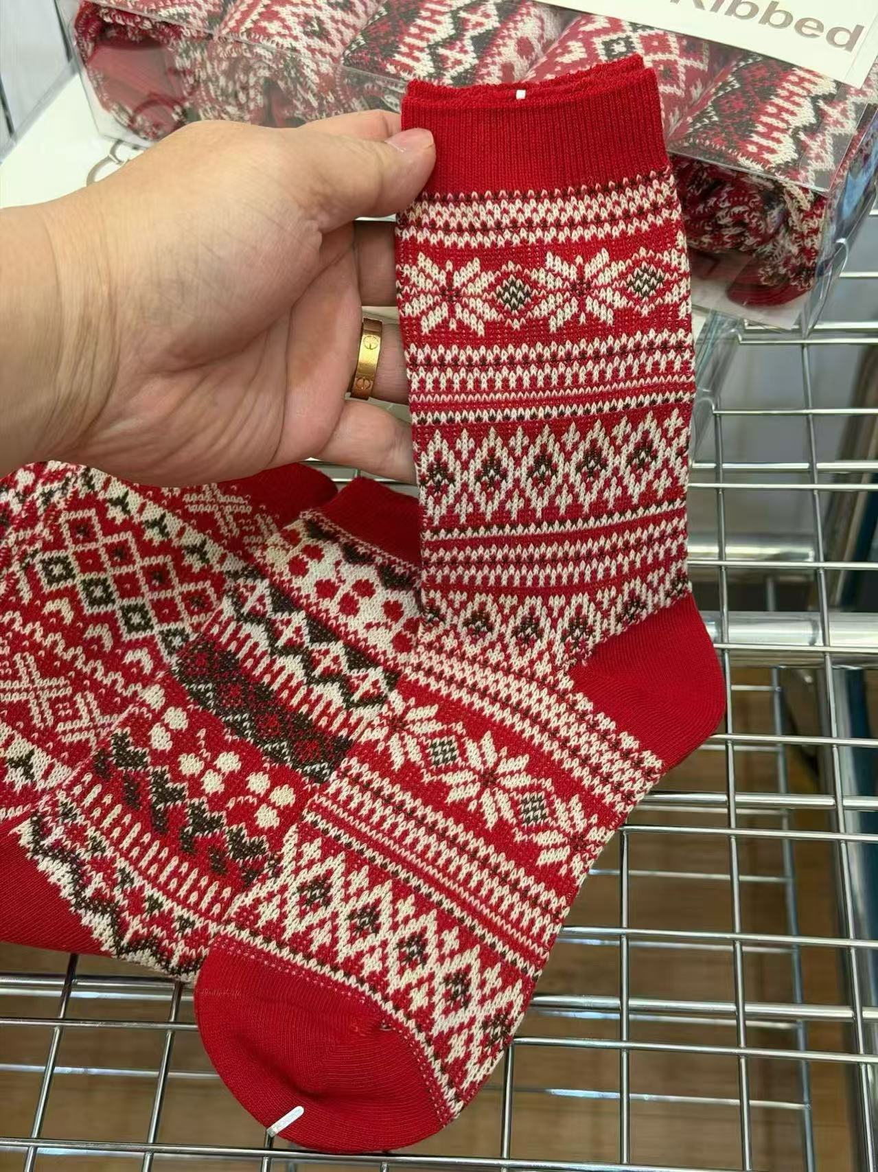 .一盒5双装!!礼盒装费尔岛提花袜,UGG马年限定红袜 一盒5双费尔岛袜