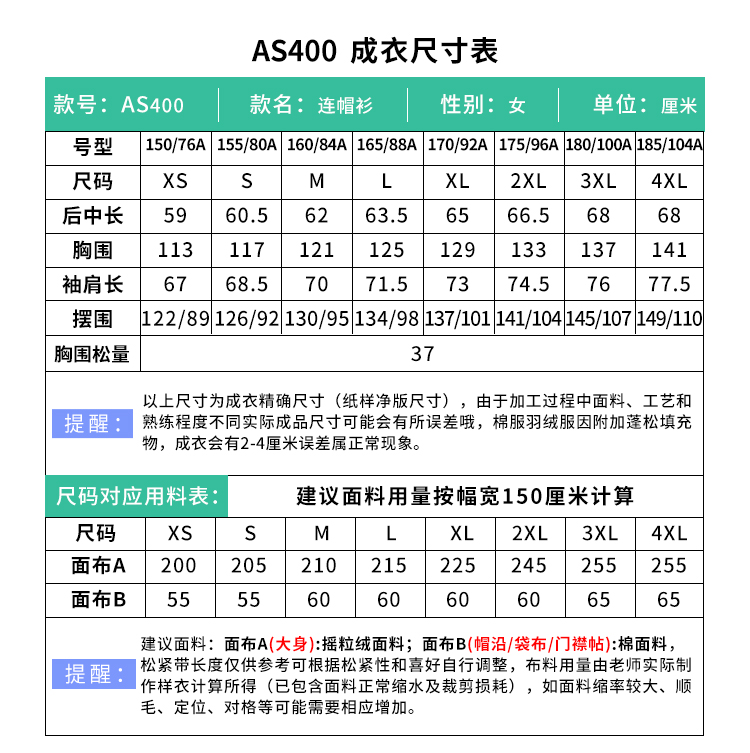 裁缝学苑AS400休闲连帽衫摇粒绒外套纸样女装打版裁剪样板图纸