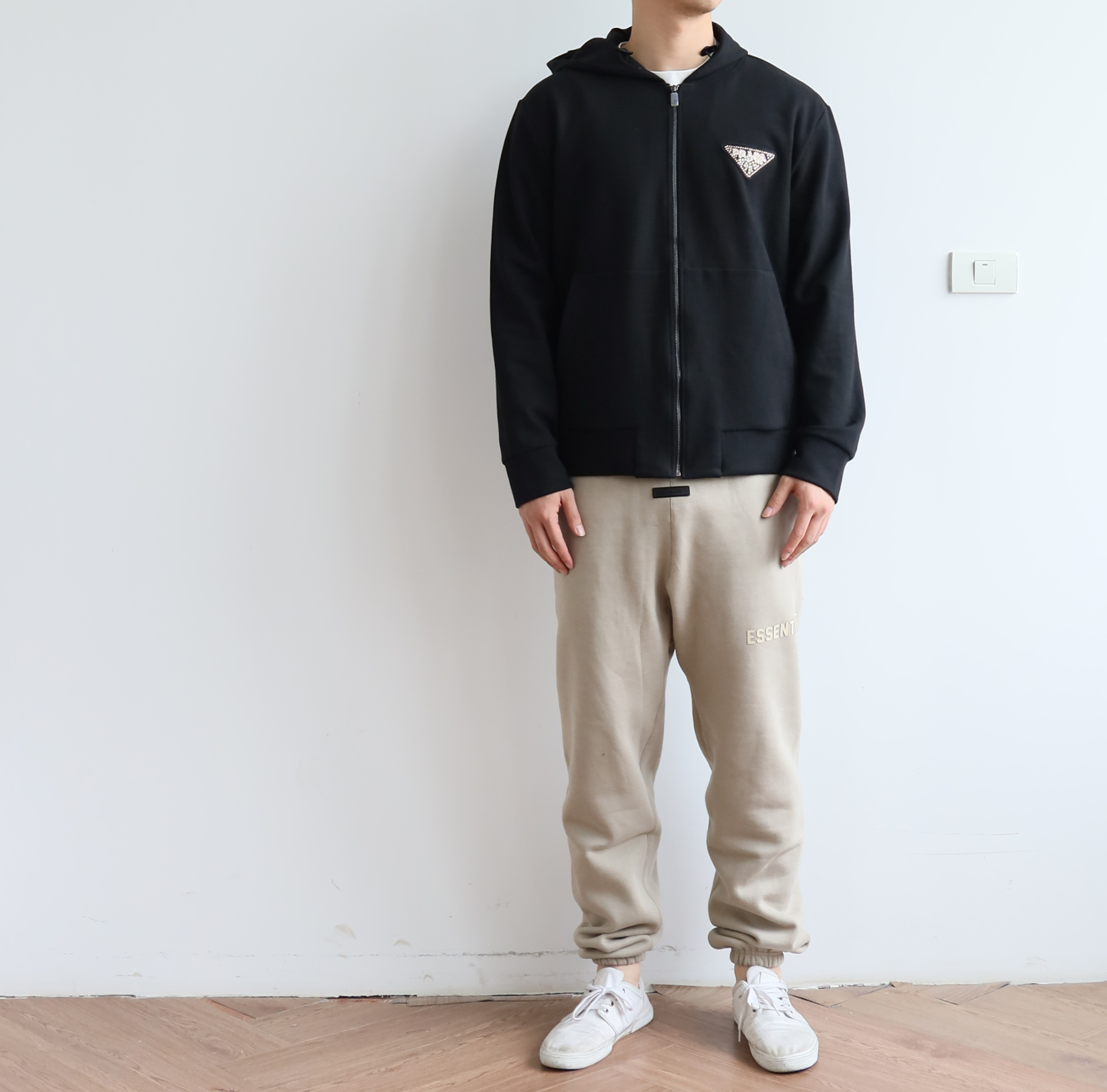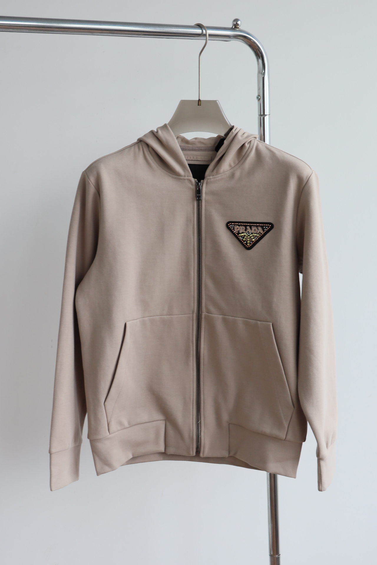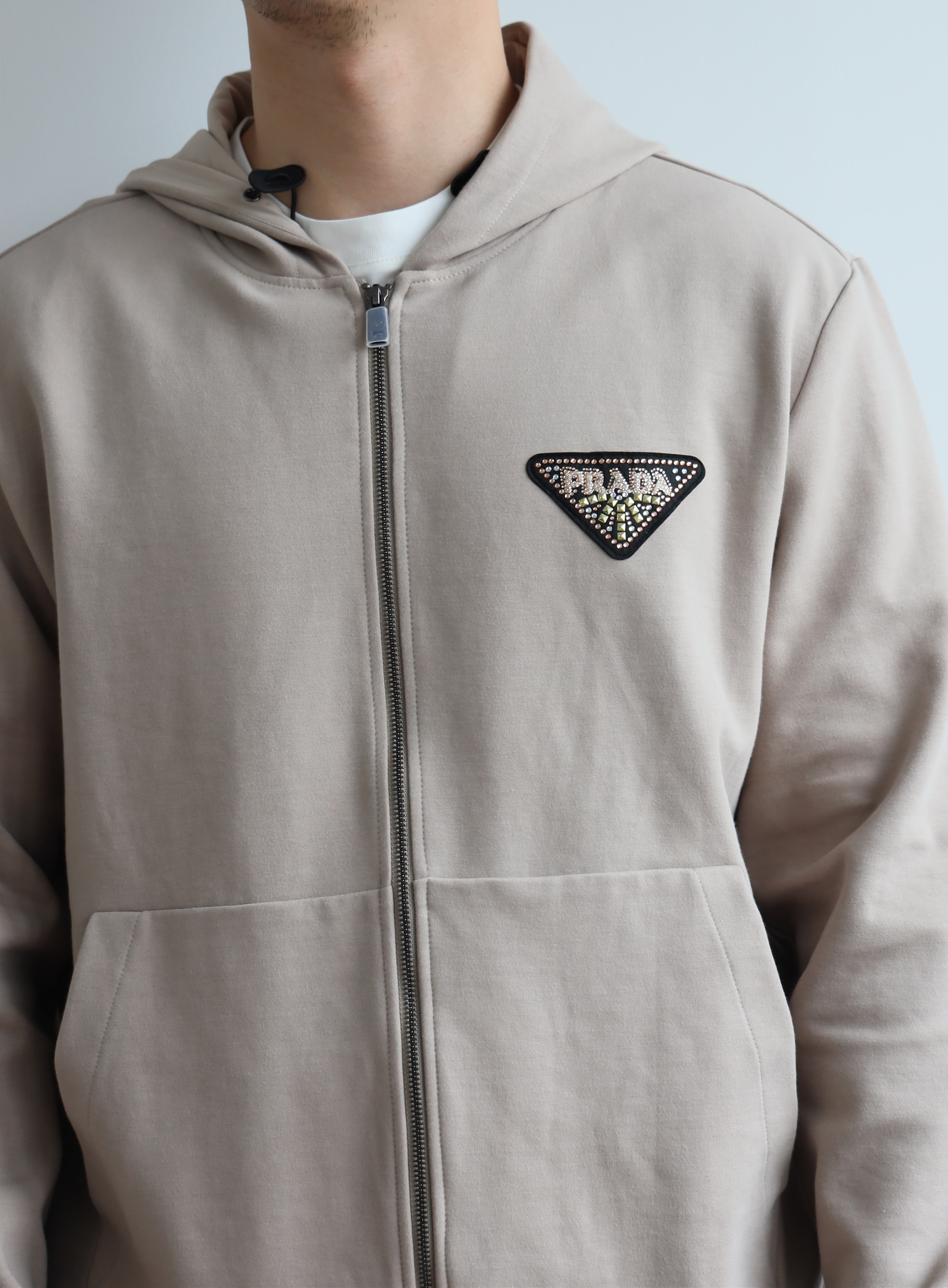 P.R.D 双面平纹 章仔花纹3角标 宽松拉链帽衫