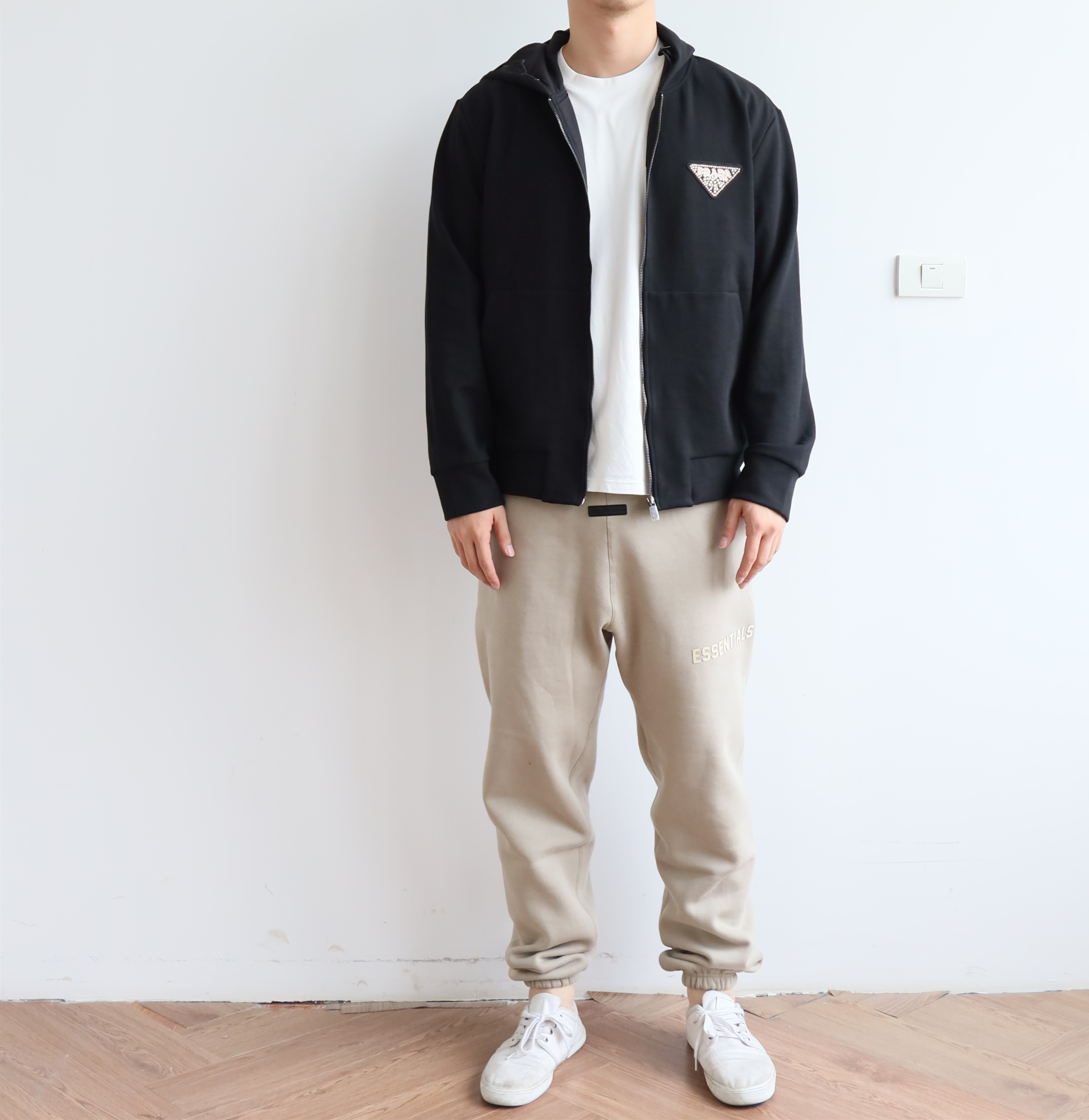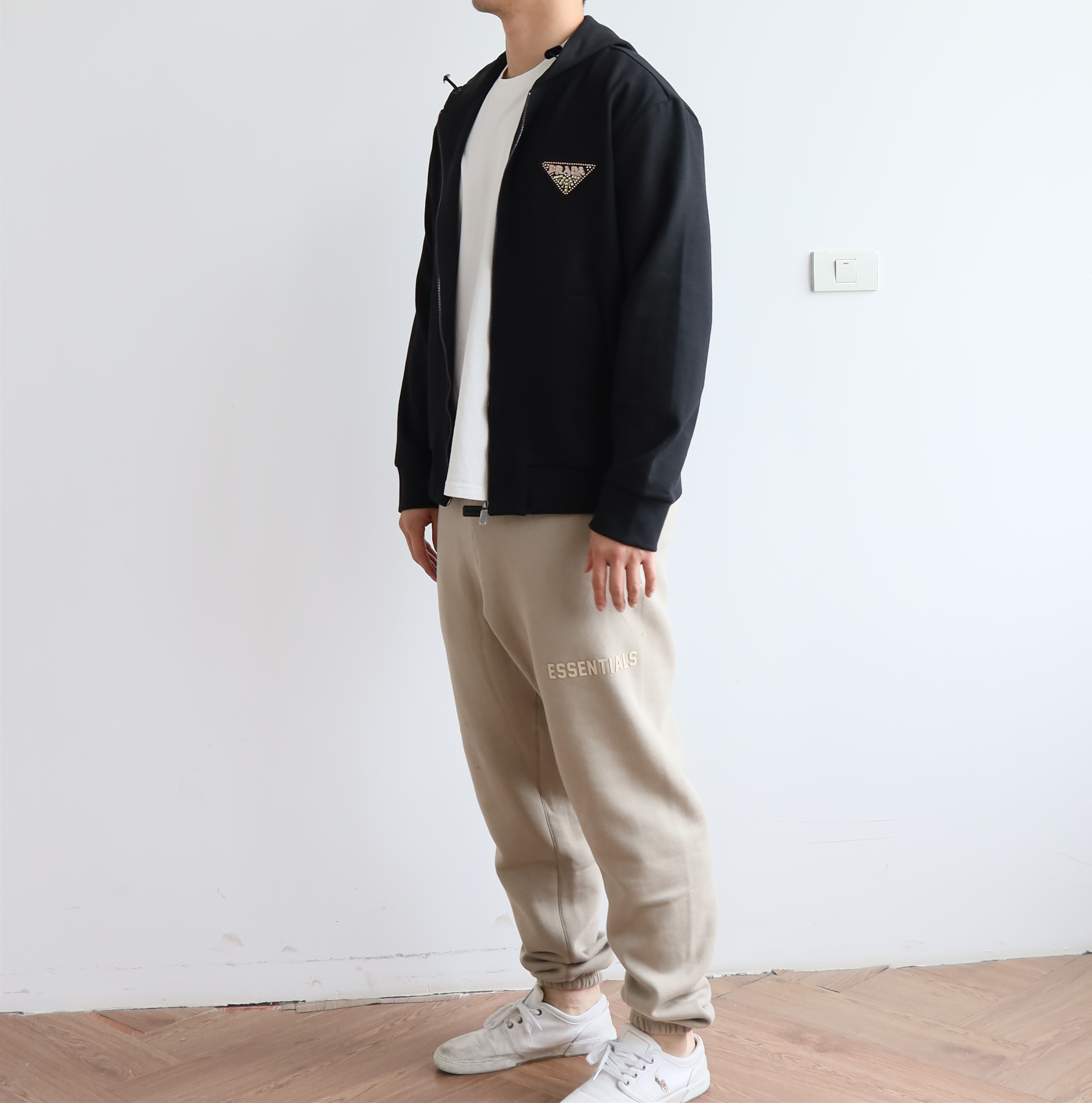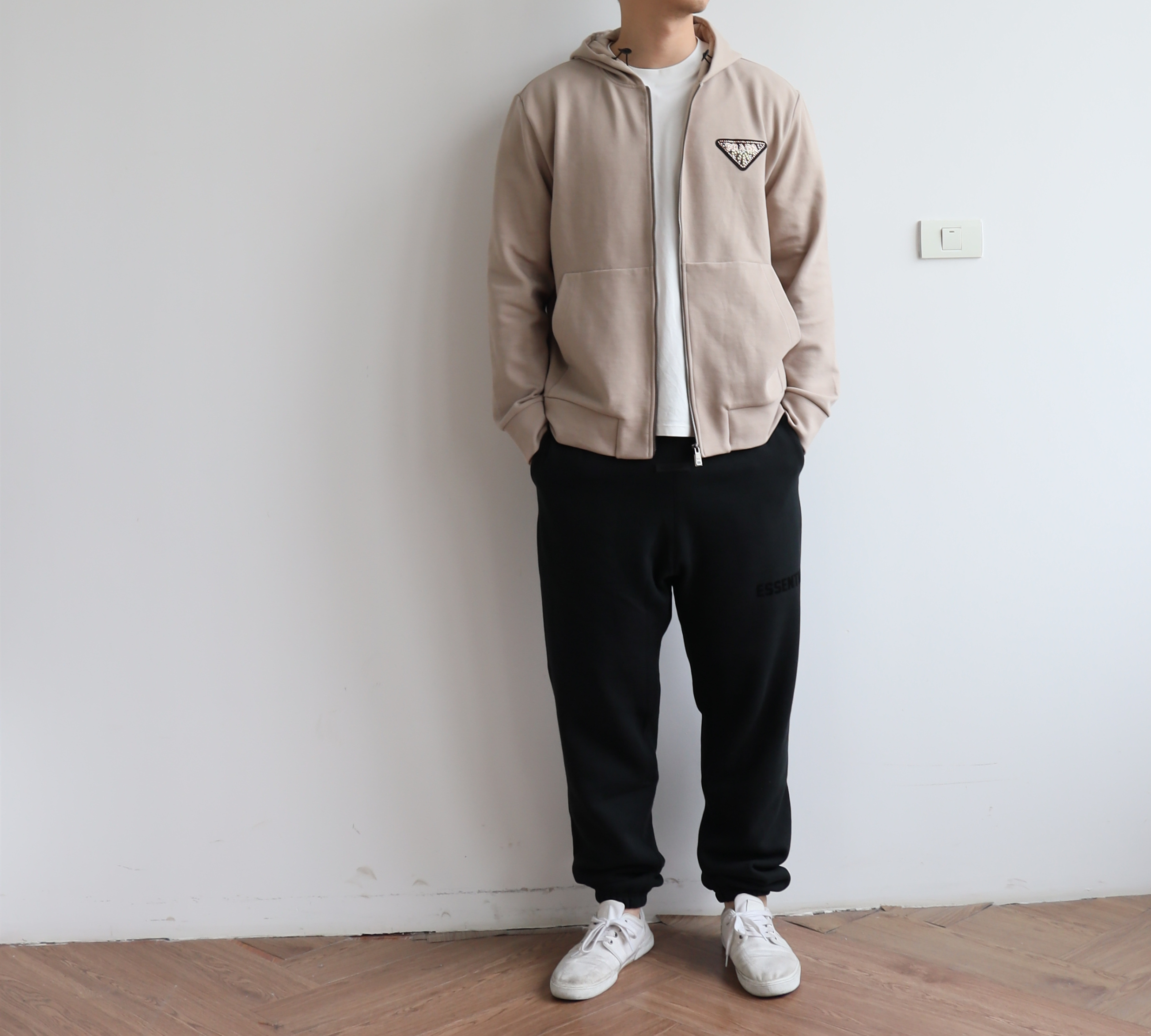 P.R.D 双面平纹 章仔花纹3角标 宽松拉链帽衫