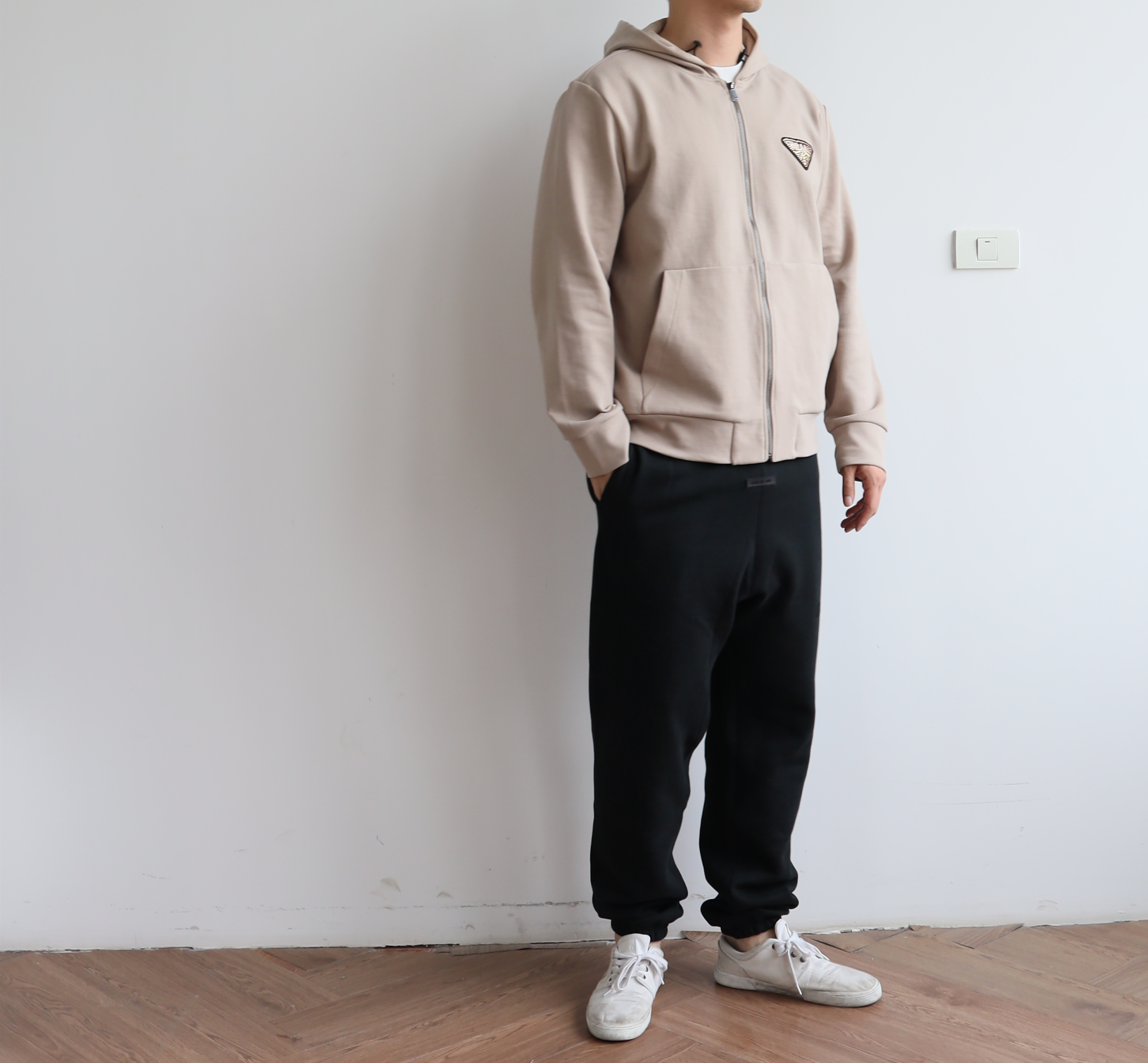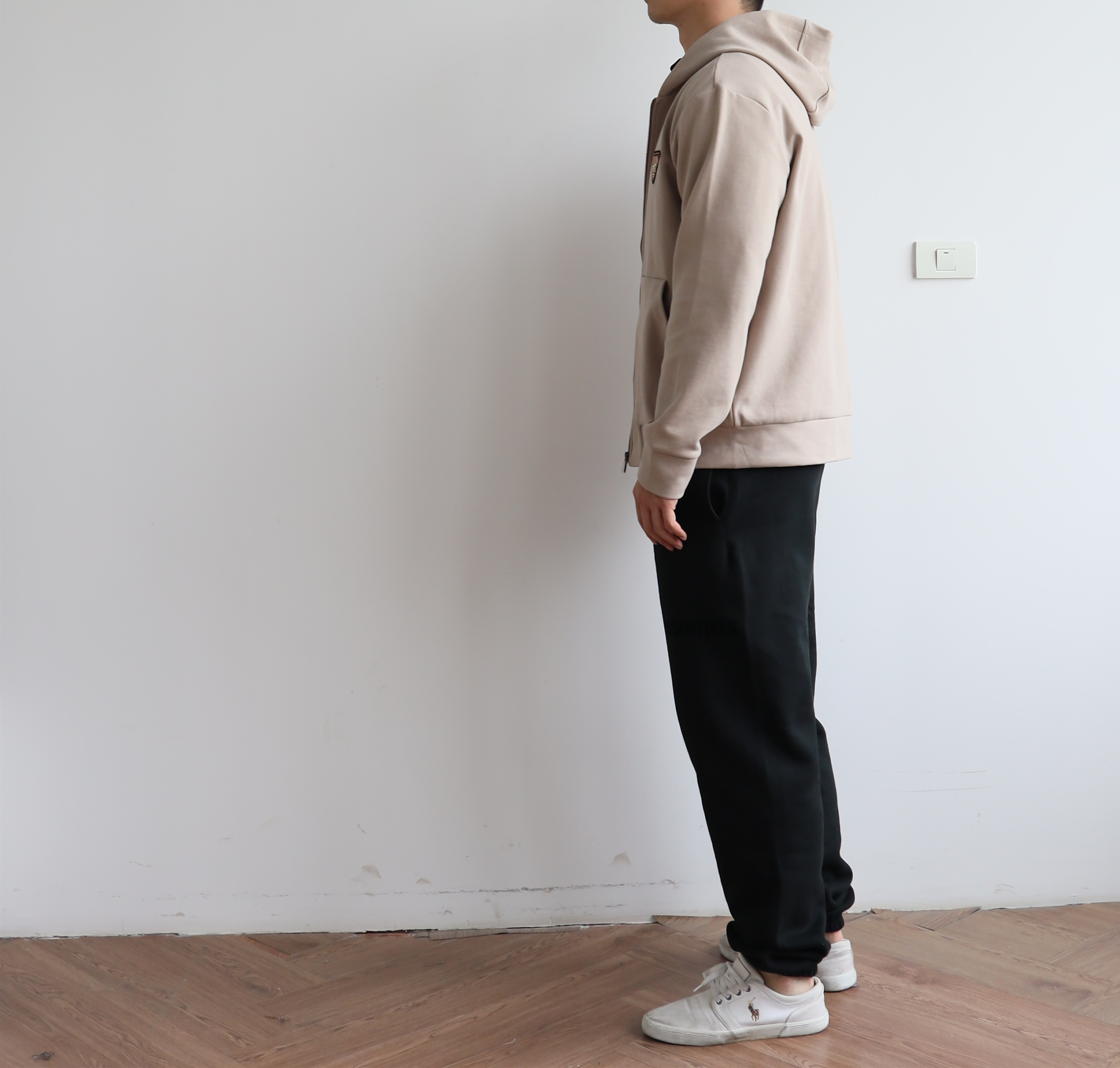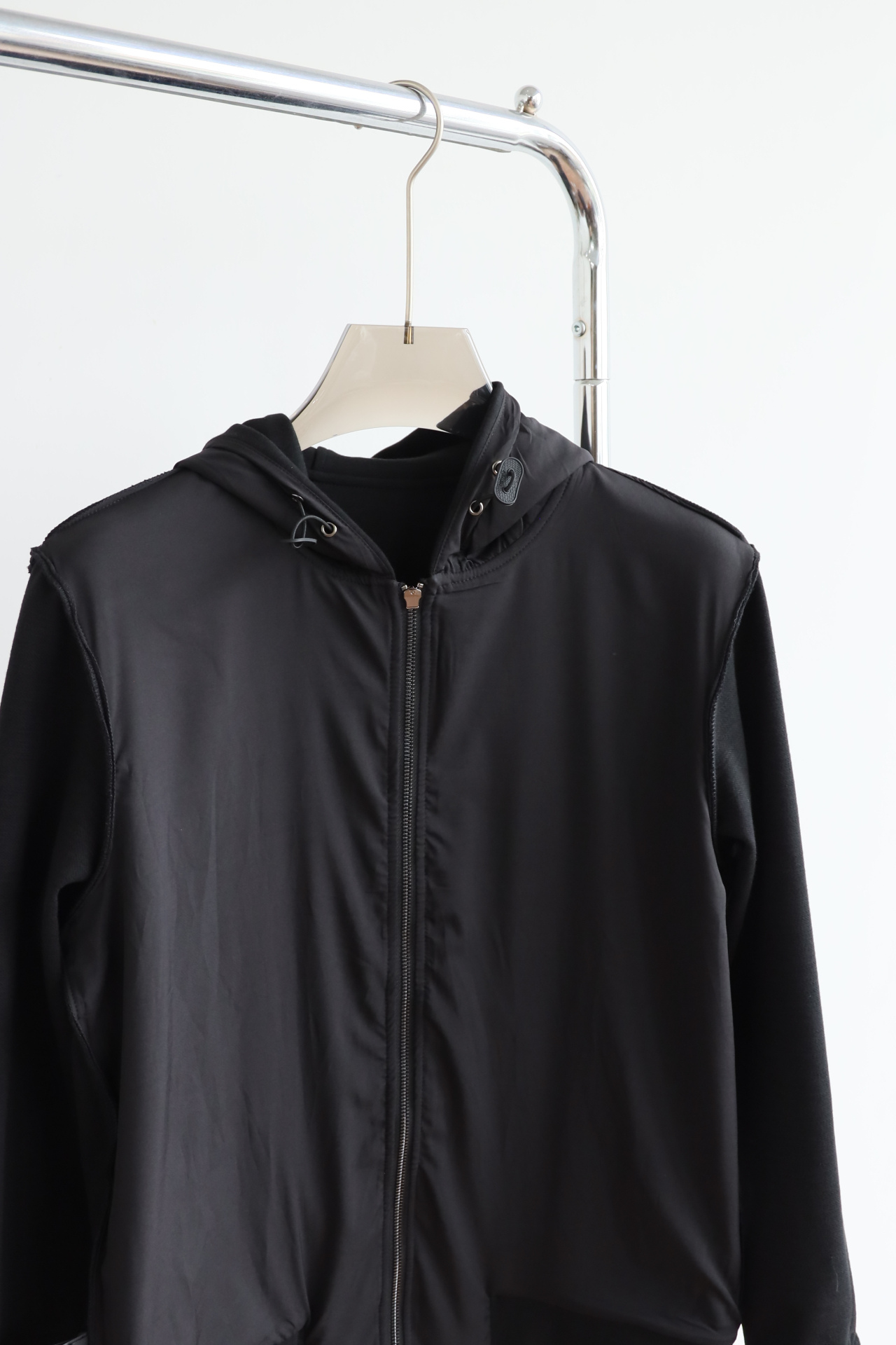 廓形版型,整体偏宽松,大身以及连帽内里都是双层布拼接