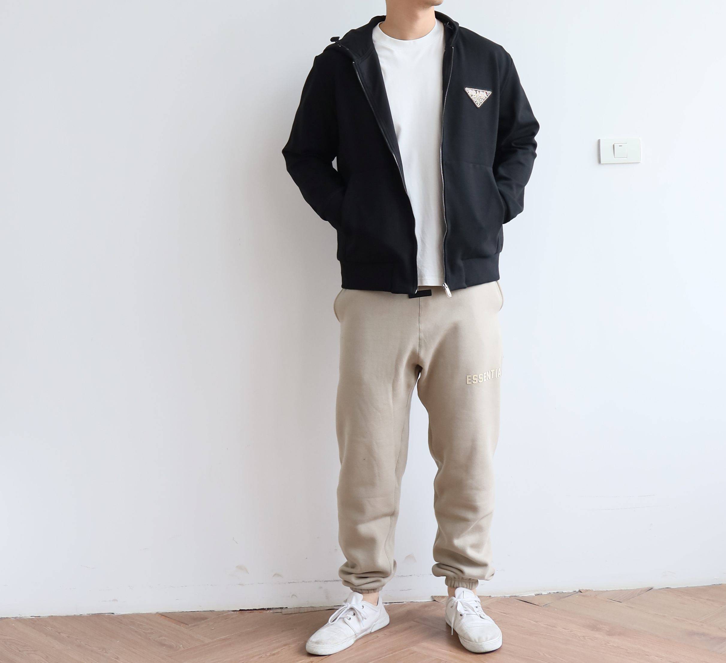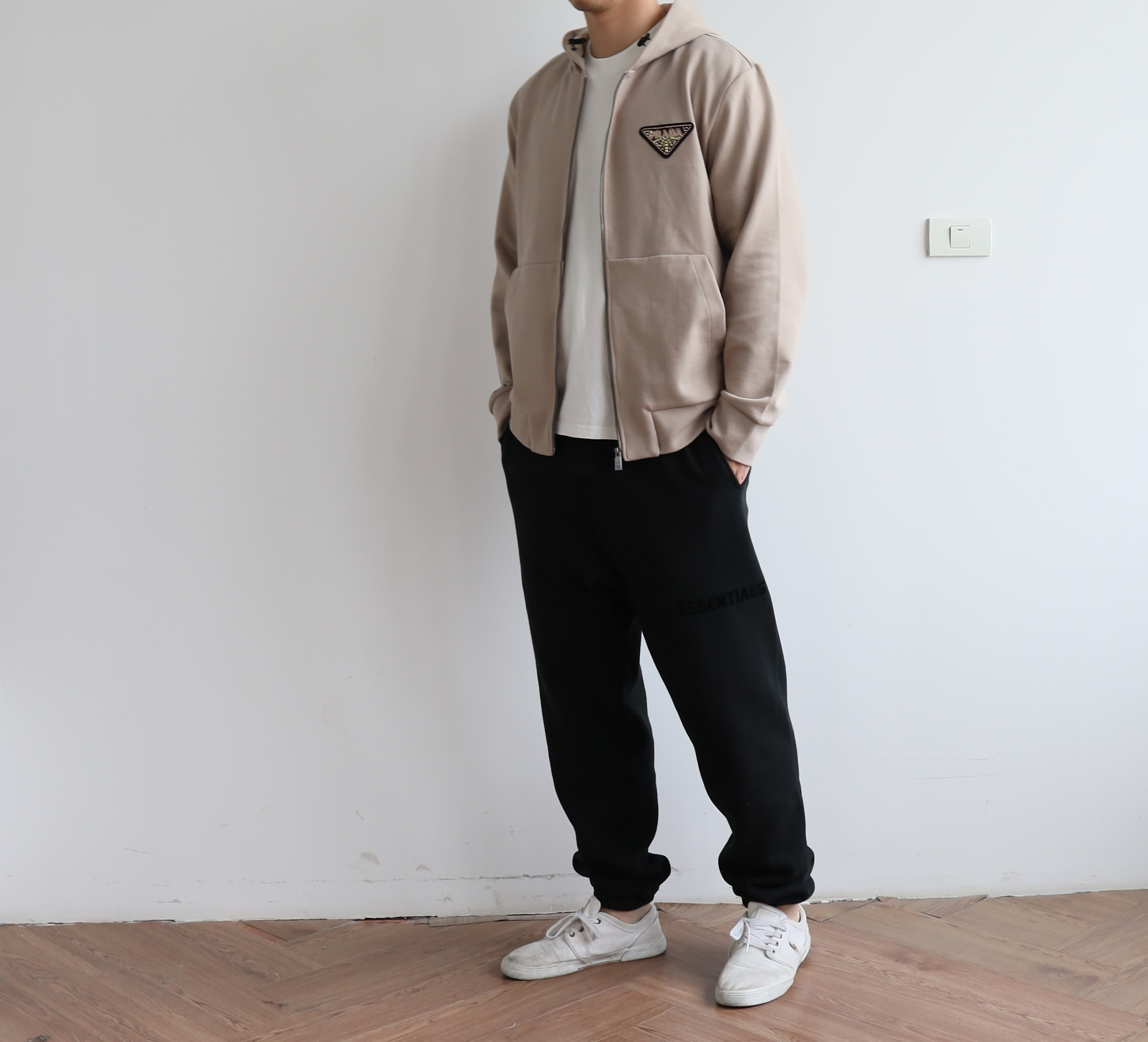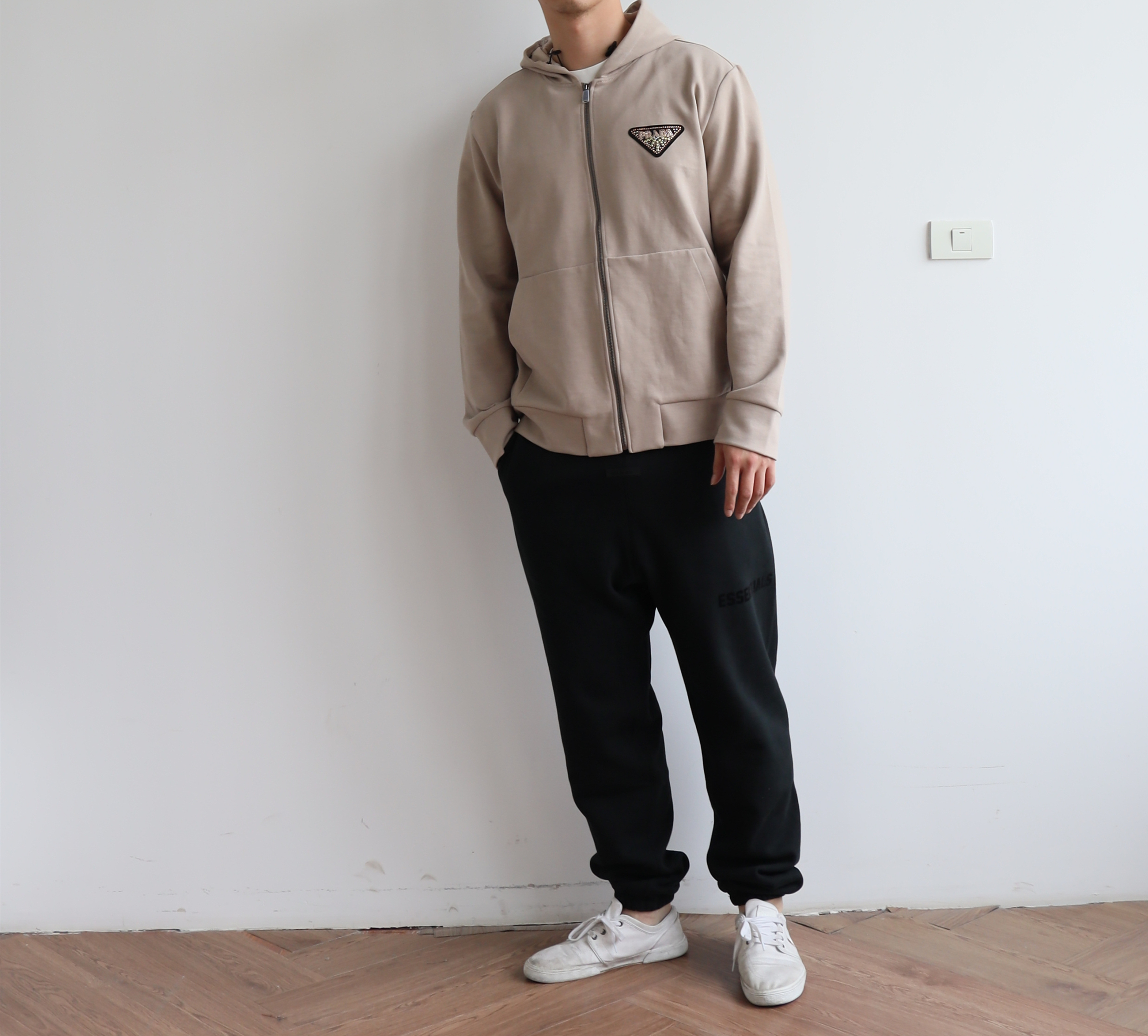廓形版型,整体偏宽松,大身以及连帽内里都是双层布拼接