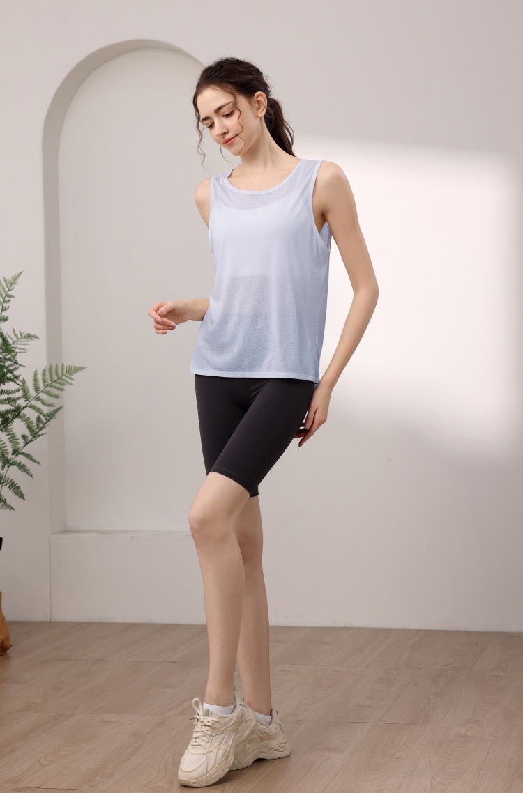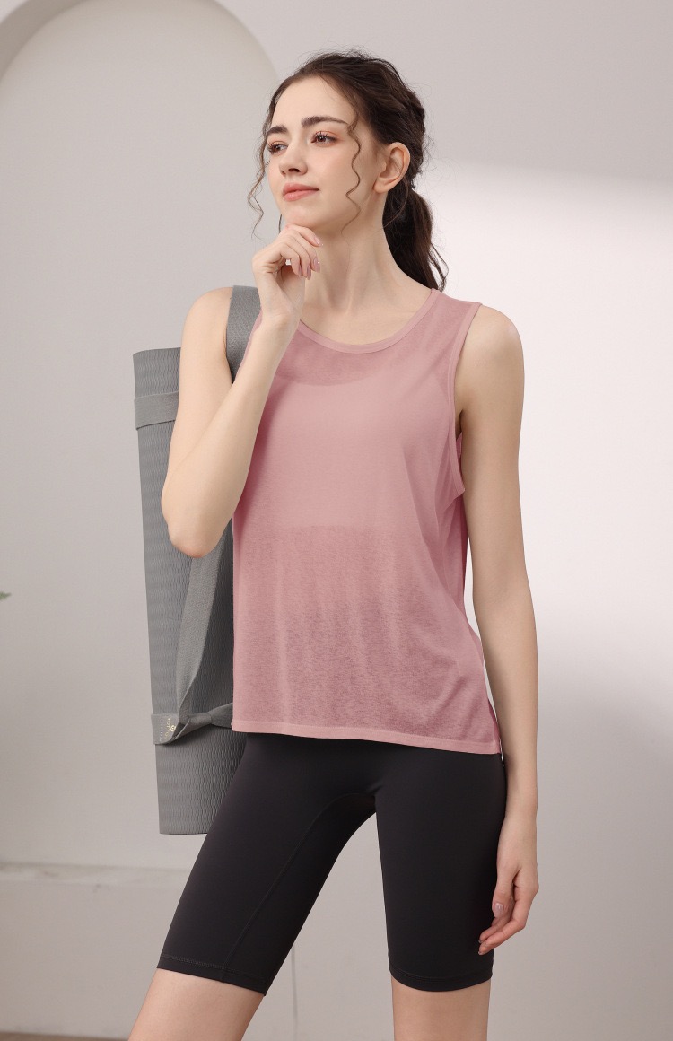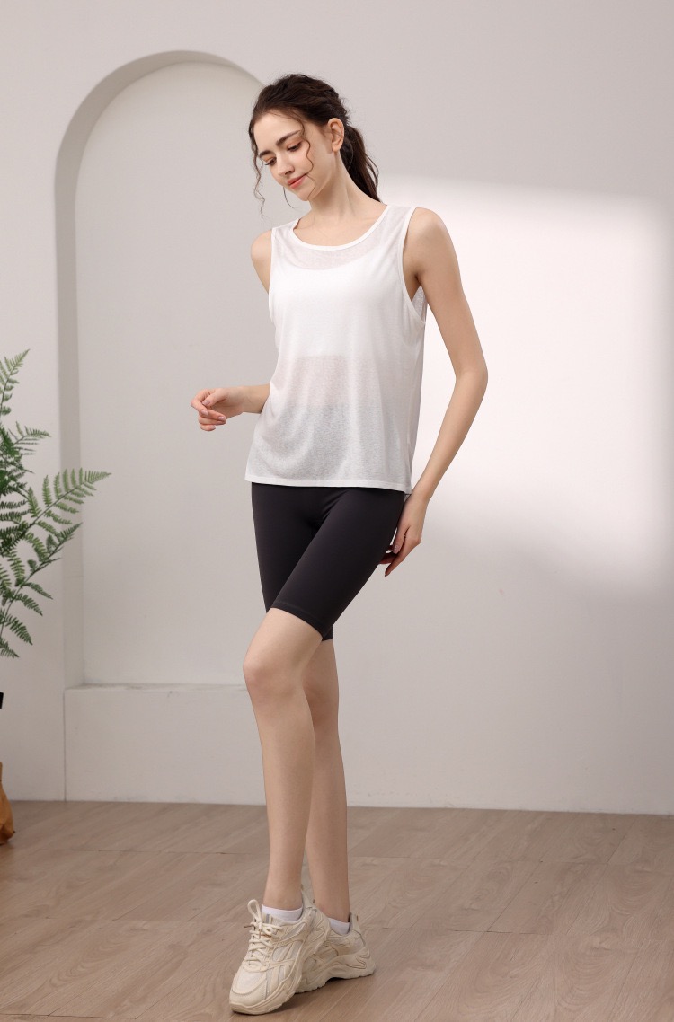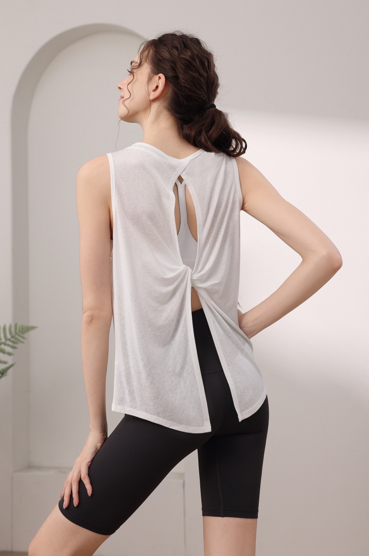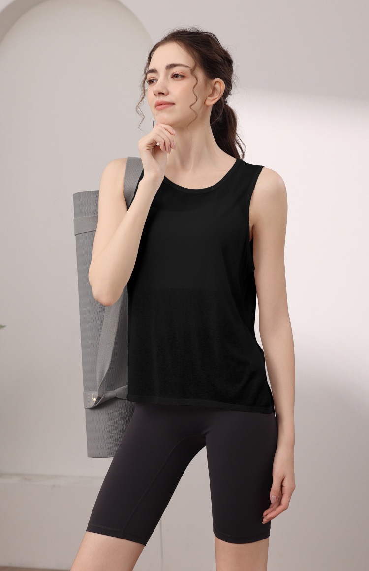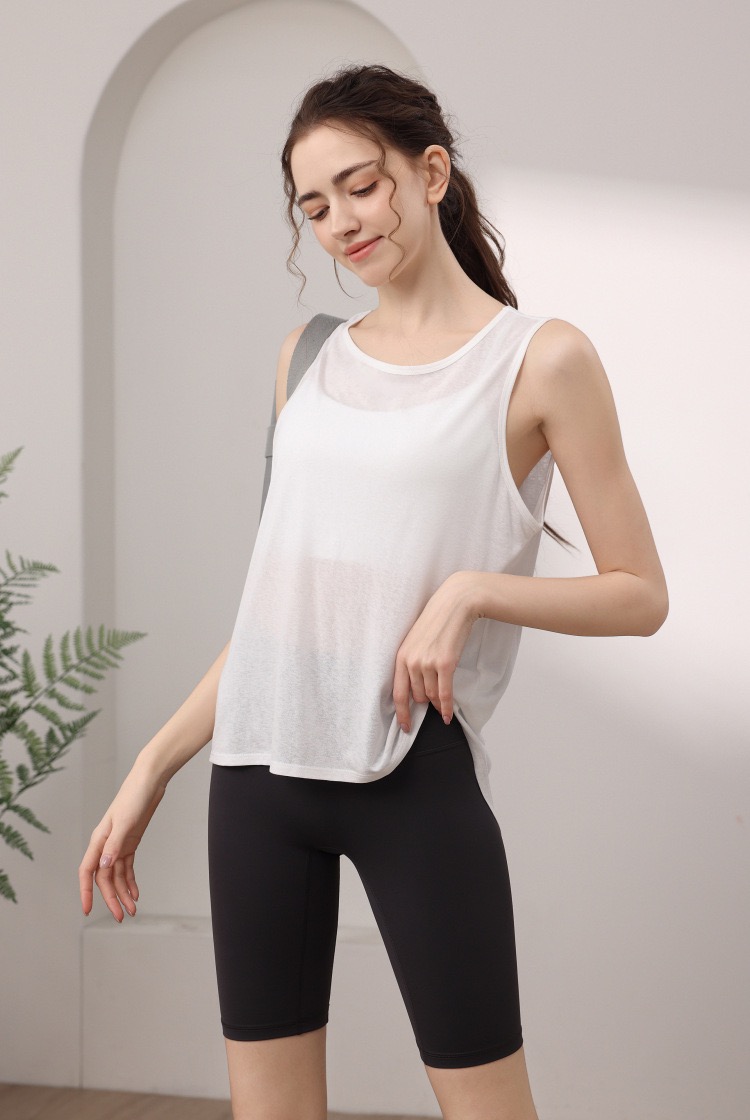 天丝雪花宽松运动背心女 性感美背瑜伽服罩衫跑步健身无袖上衣夏 000MXF2530