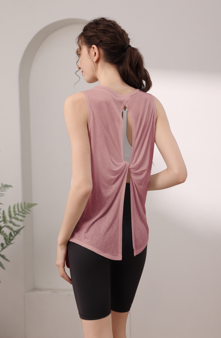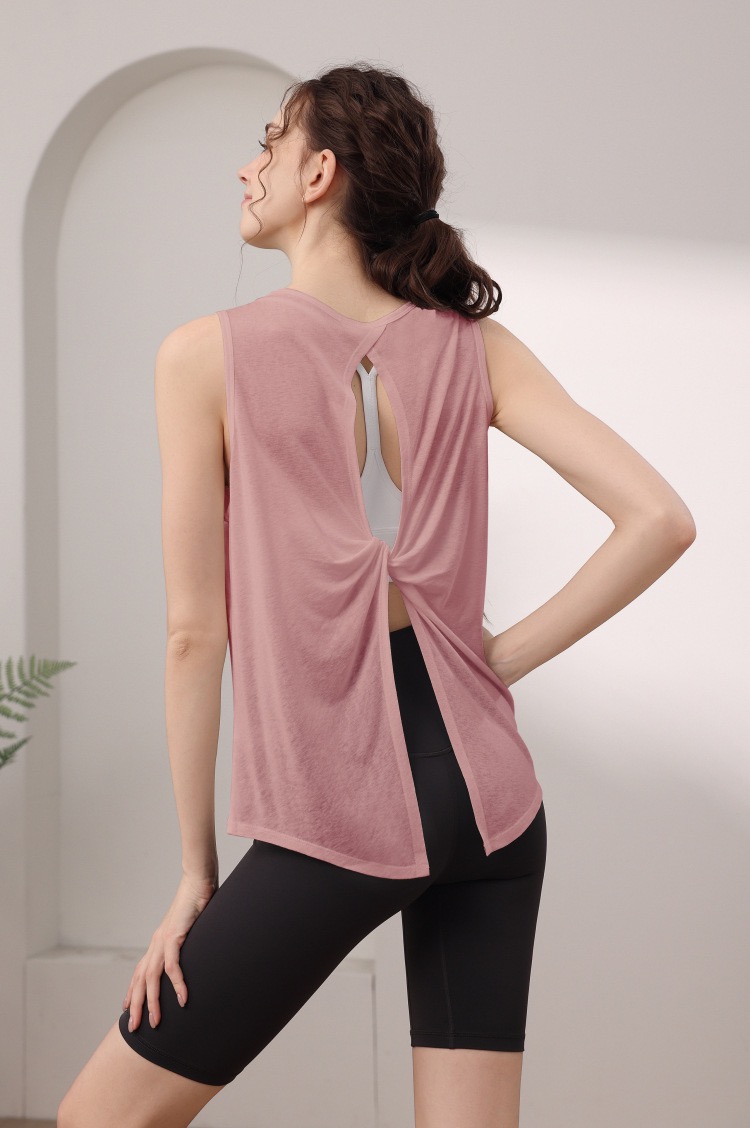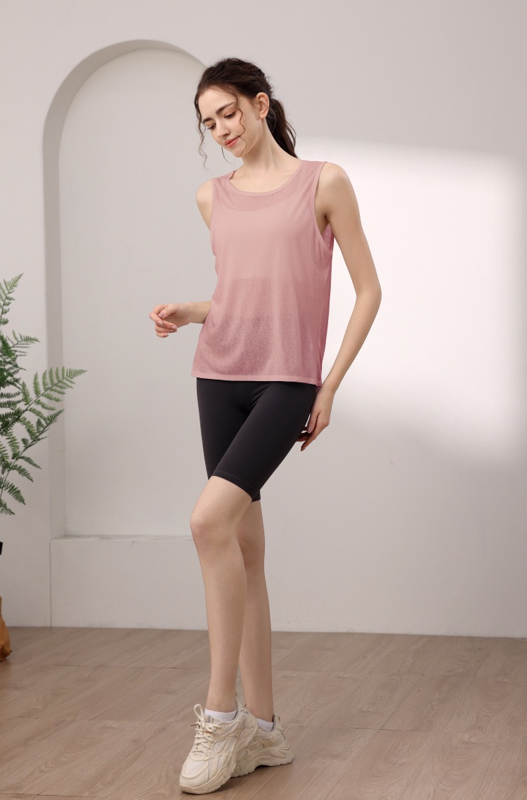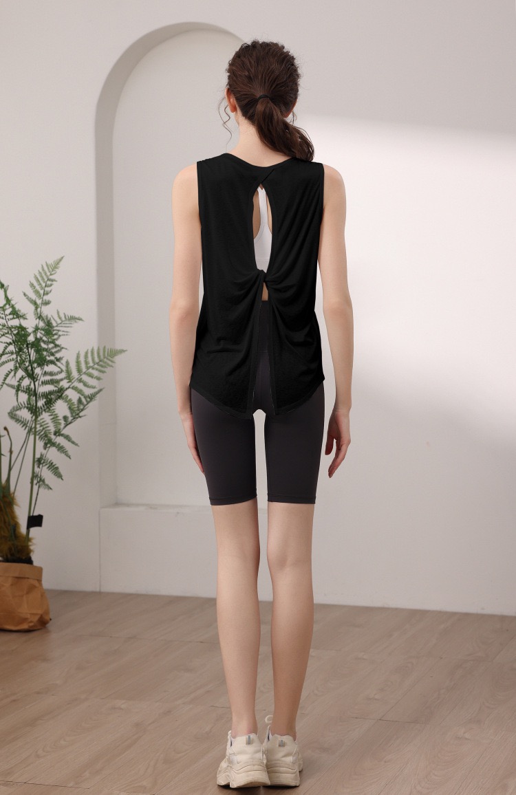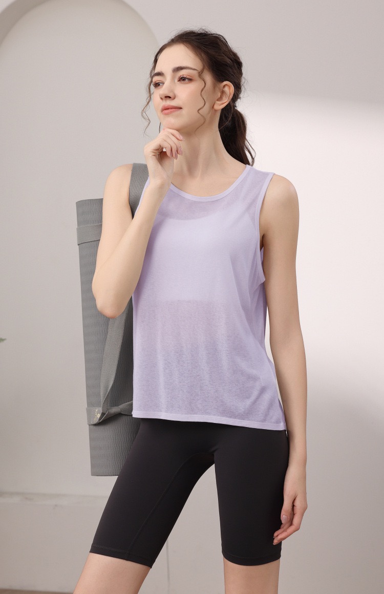 天丝雪花宽松运动背心女 性感美背瑜伽服罩衫跑步健身无袖上衣夏 000MXF2530