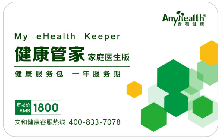 | 私人专属家庭医生服务 | 个人专属健康顾问服务,将为每一个客户制定一名专属的健康顾问,健康顾问由具备合格资质证书的健康管理师或全科医生担任,为客户提供“私人健康管家”服务,主要包括: ① 健康监护管理; ② 定期健康随访; ③ 定期健康报告; ④ 一对一在线健康问答; ⑤ 一对一个性化体检方案建议 |