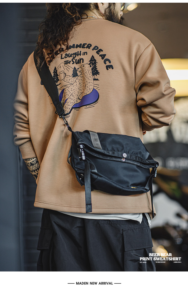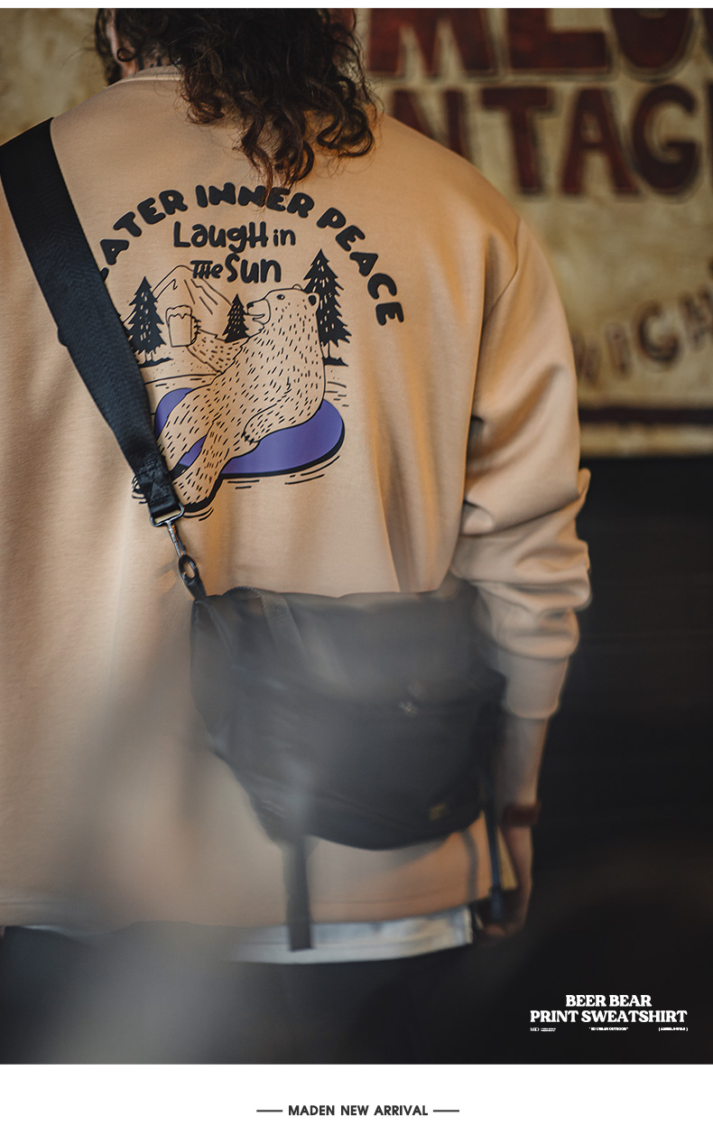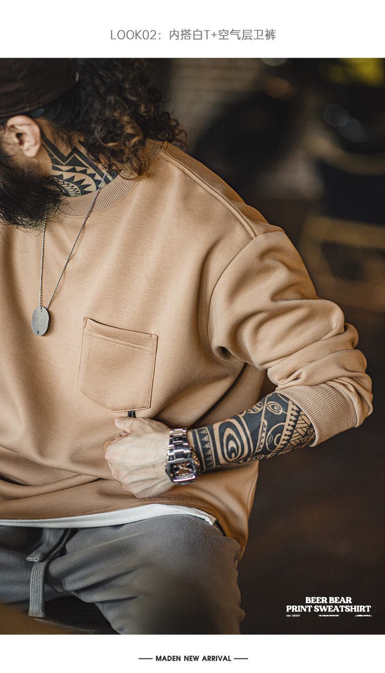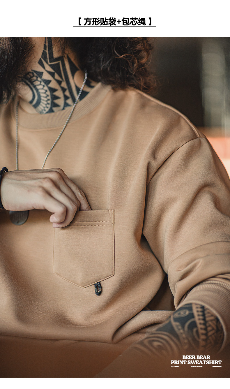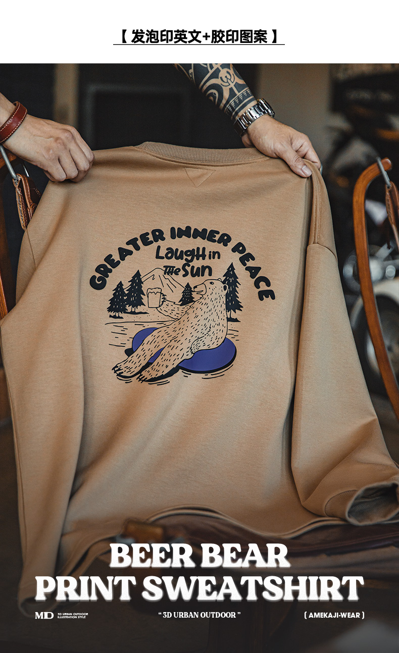 马登工装 美式休闲空气层3D字母印花卫衣圆领宽松卡通插画长袖T恤男秋