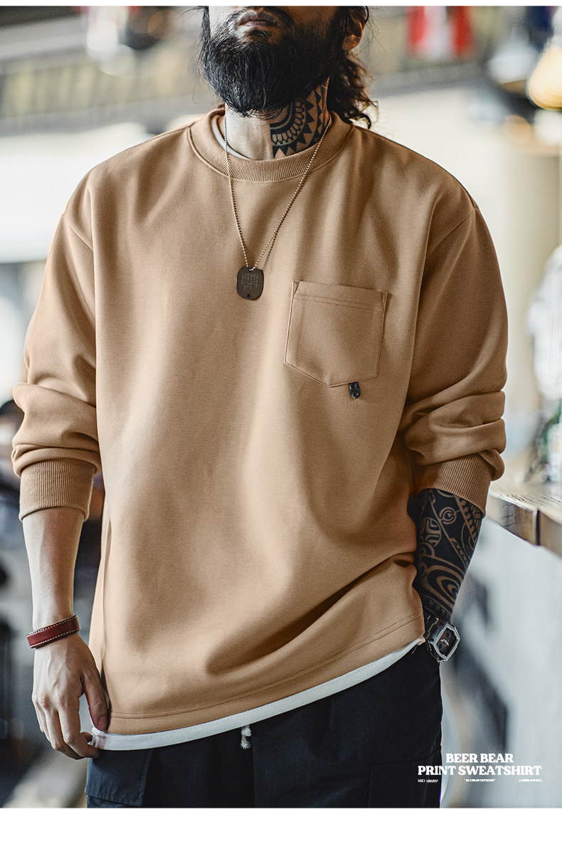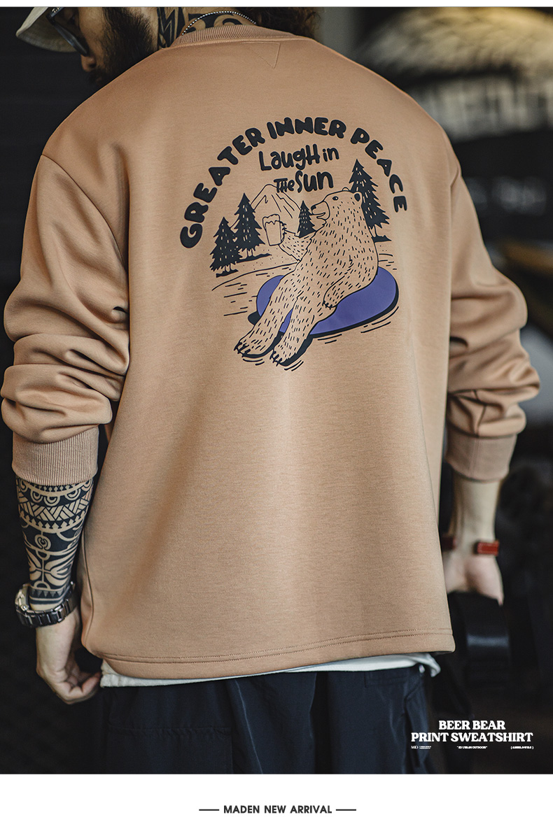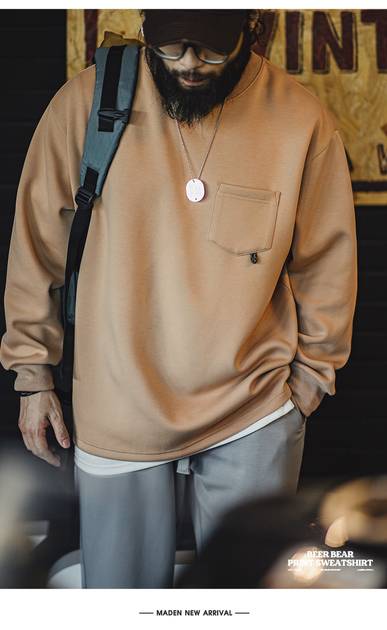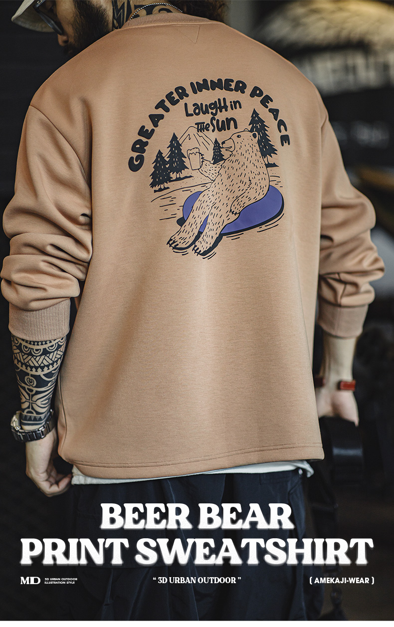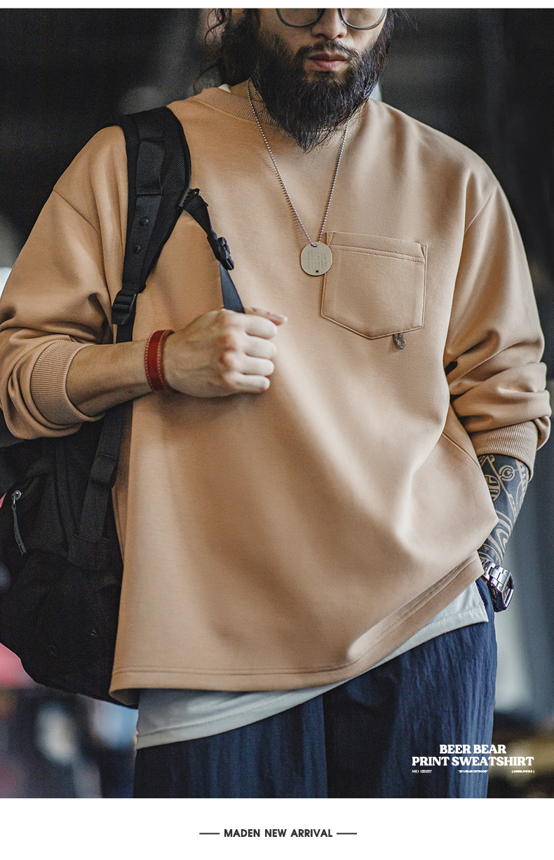 马登工装 美式休闲空气层3D字母印花卫衣圆领宽松卡通插画长袖T恤男秋