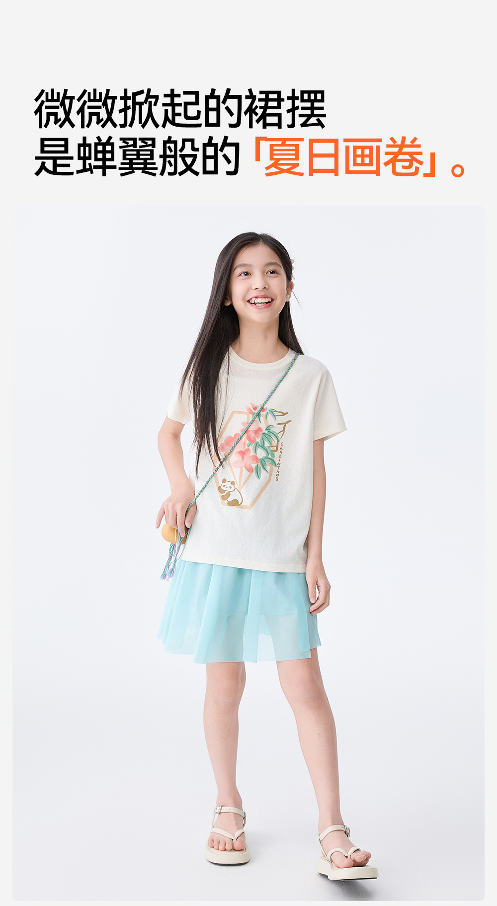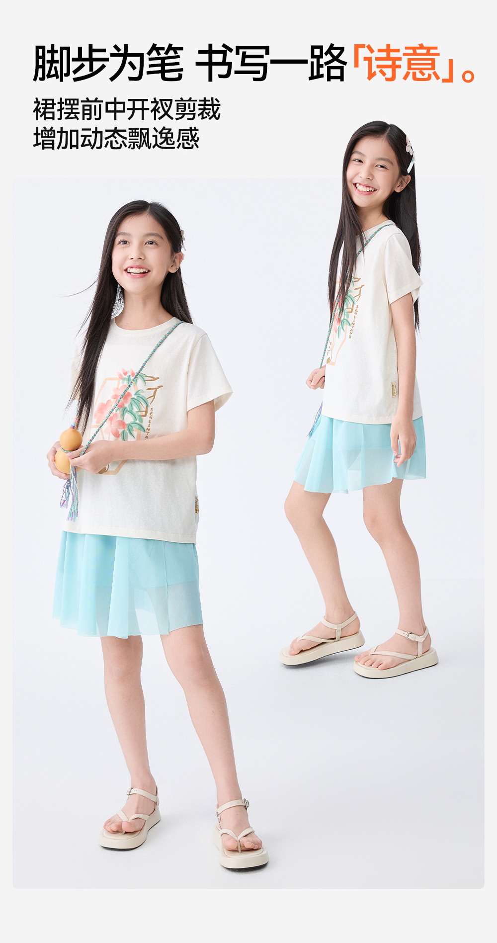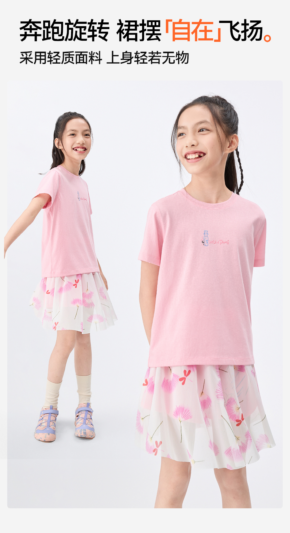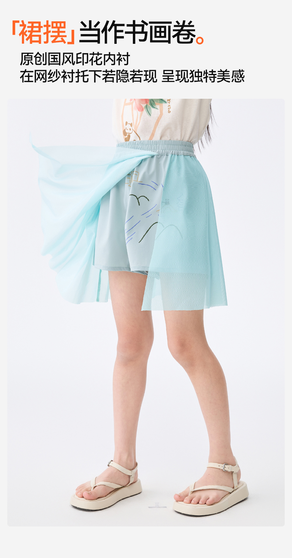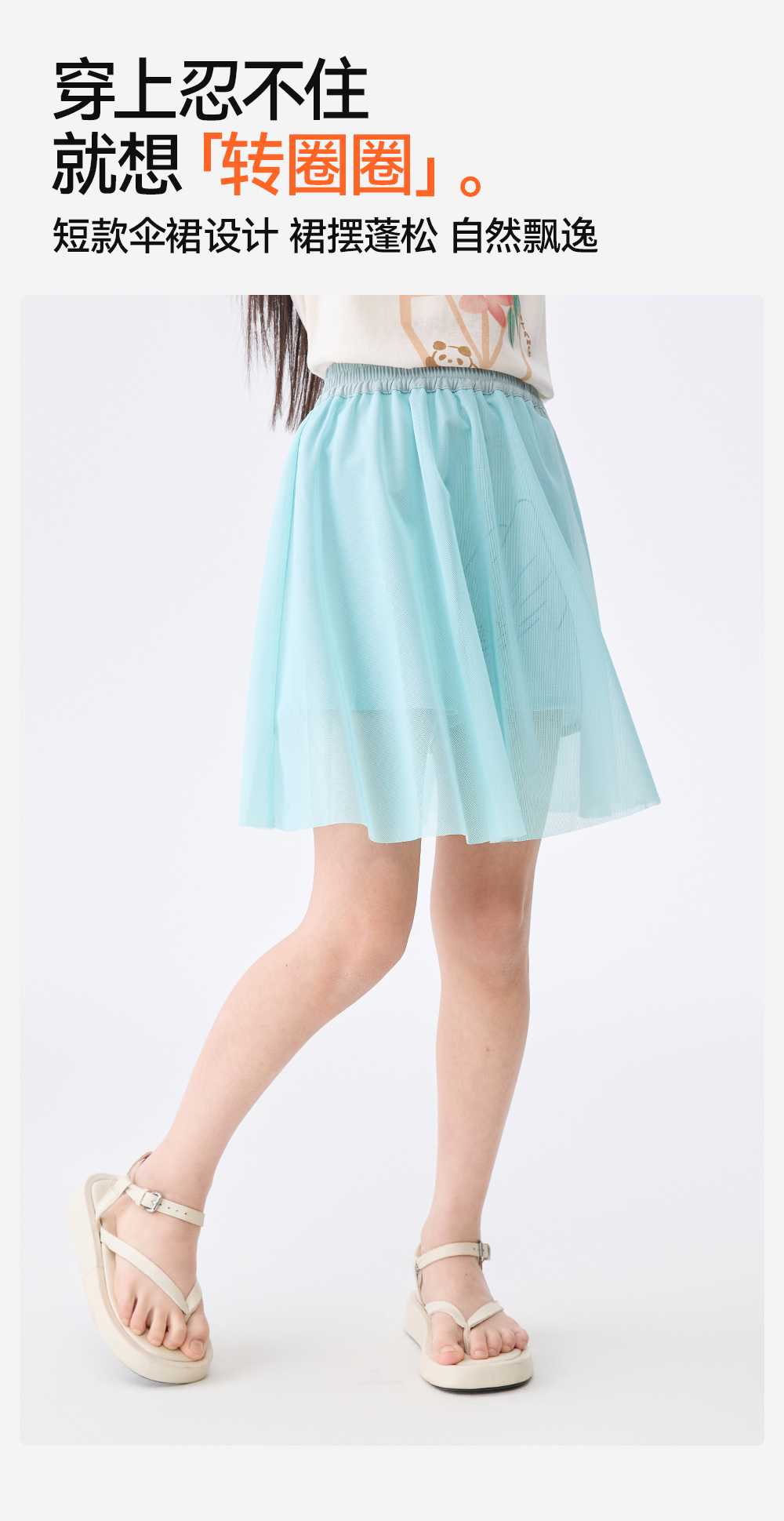 [屁侠推荐]开帘网纱半身短裙森林棠25夏款儿童女轻盈拼接开衩网纱伞裙41122509