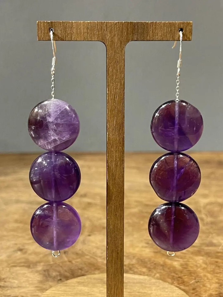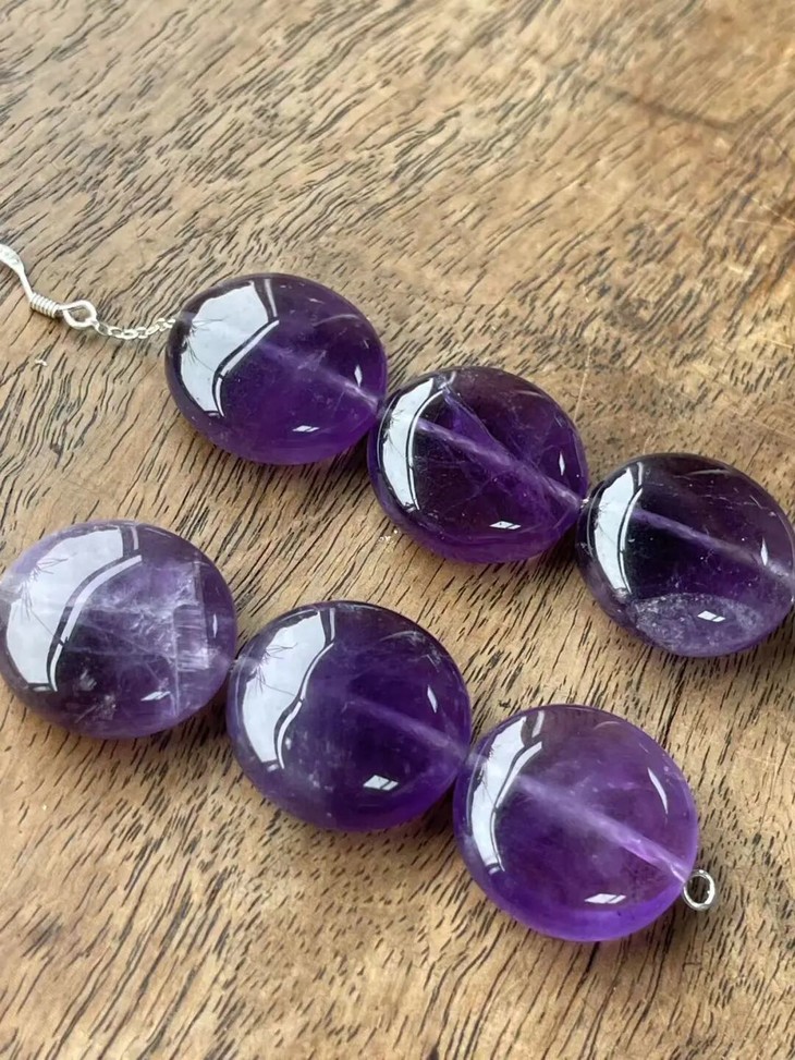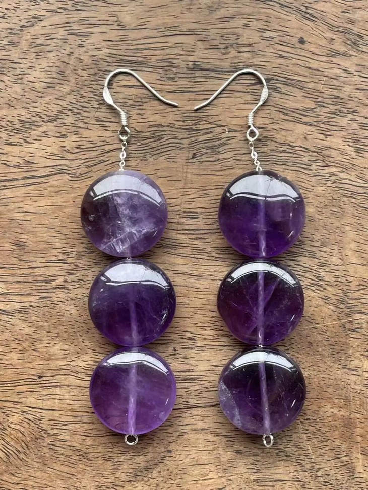 紫水晶扁圆珠首饰三件套组