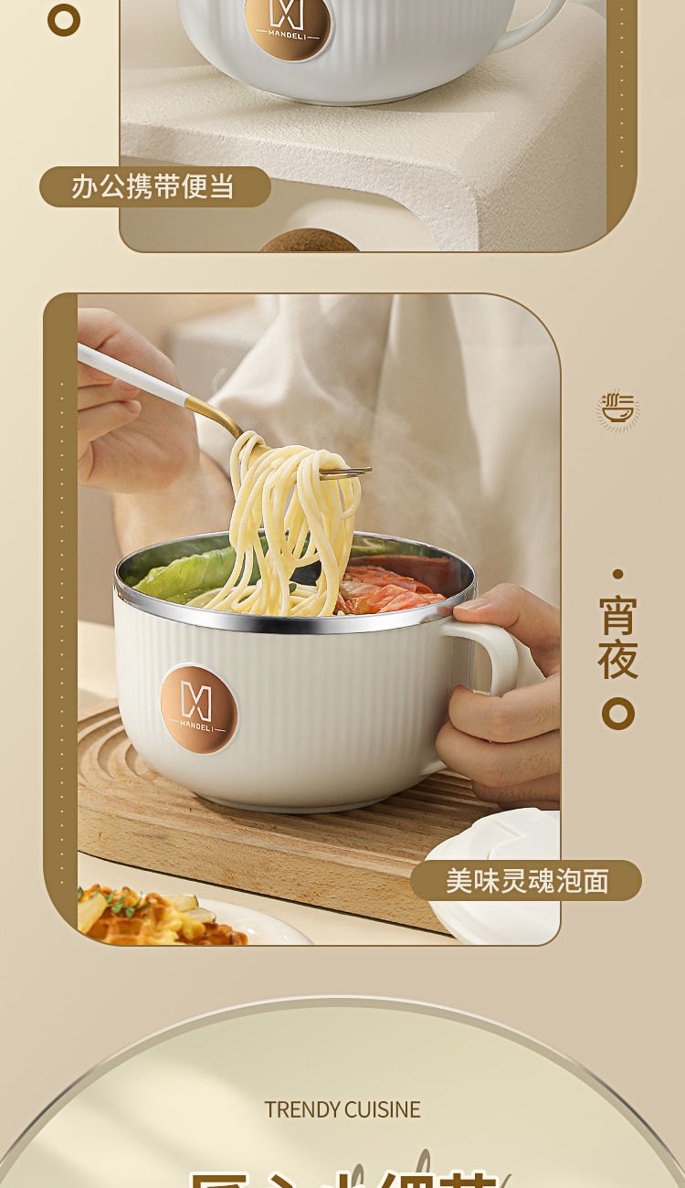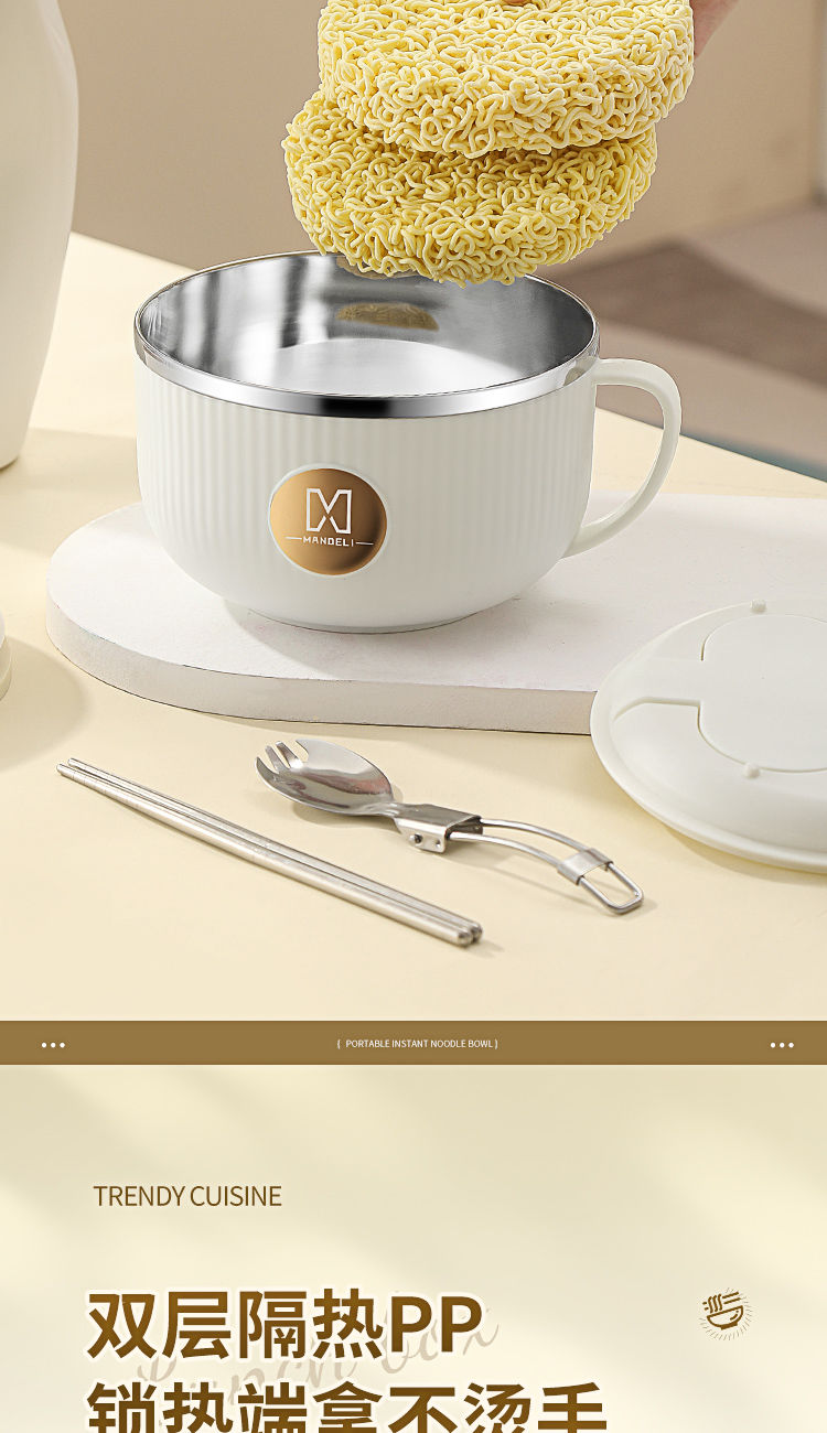 泡面碗带盖304不锈钢宿舍用学生方便面泡面神器筷套装
