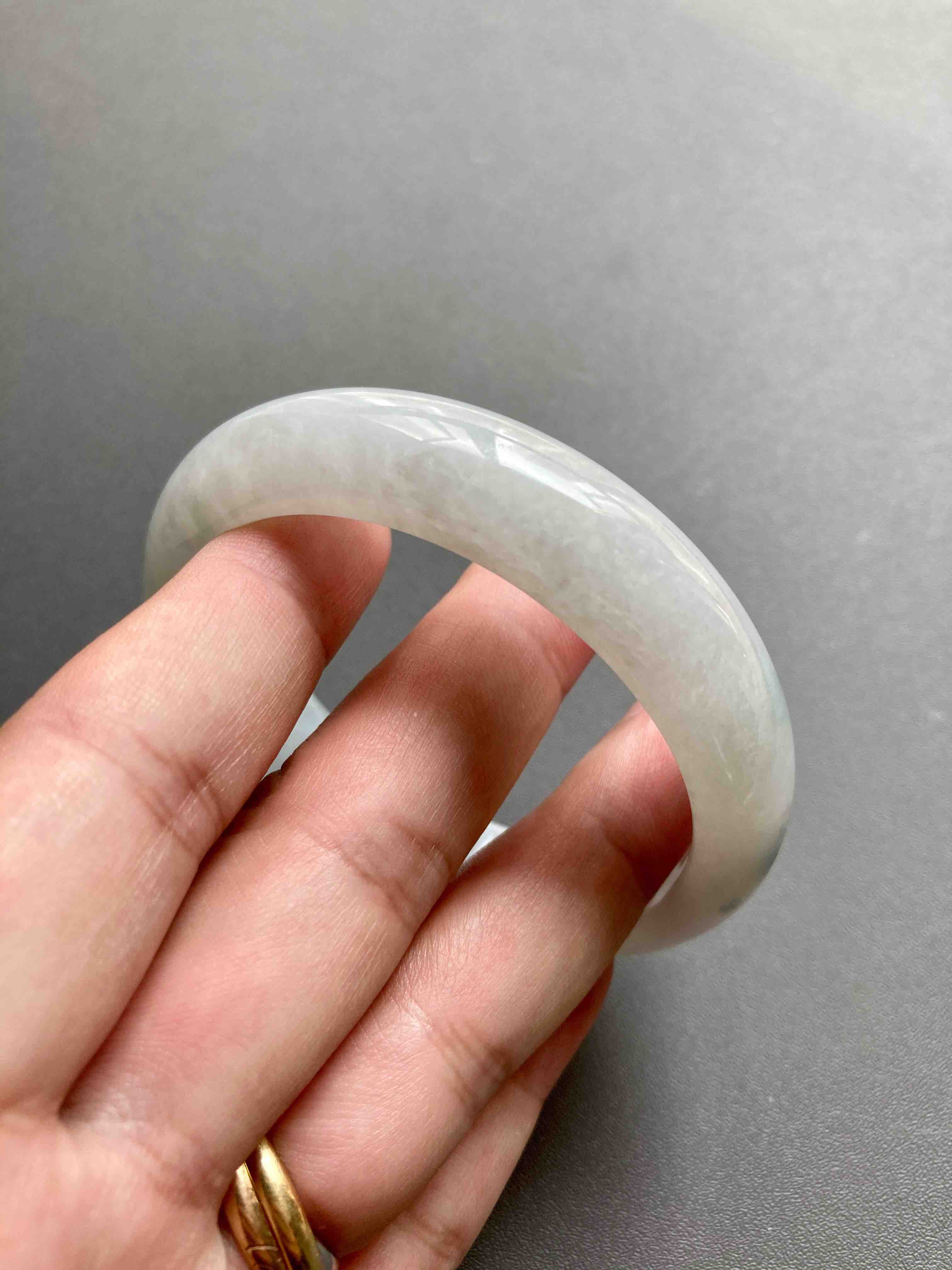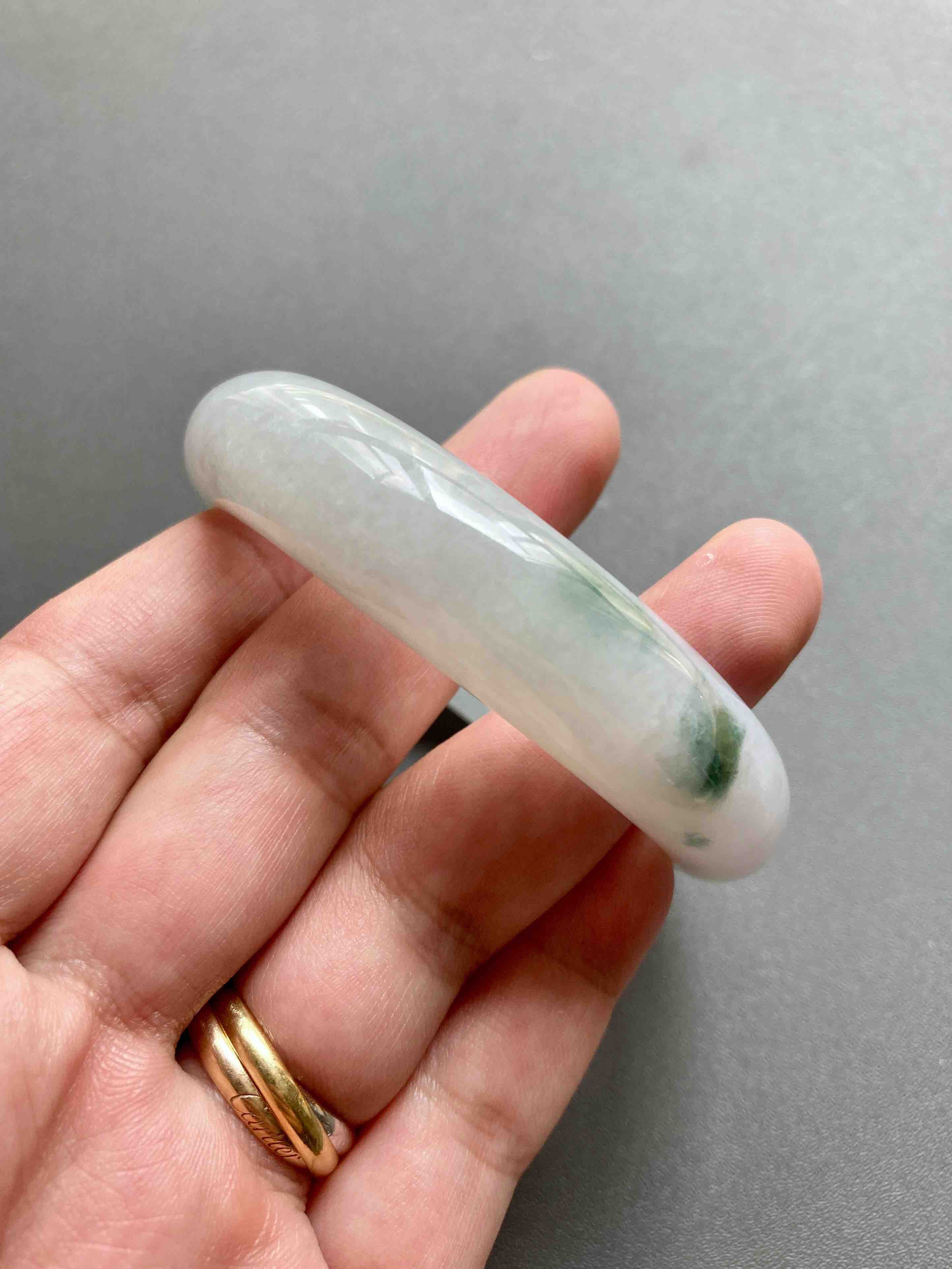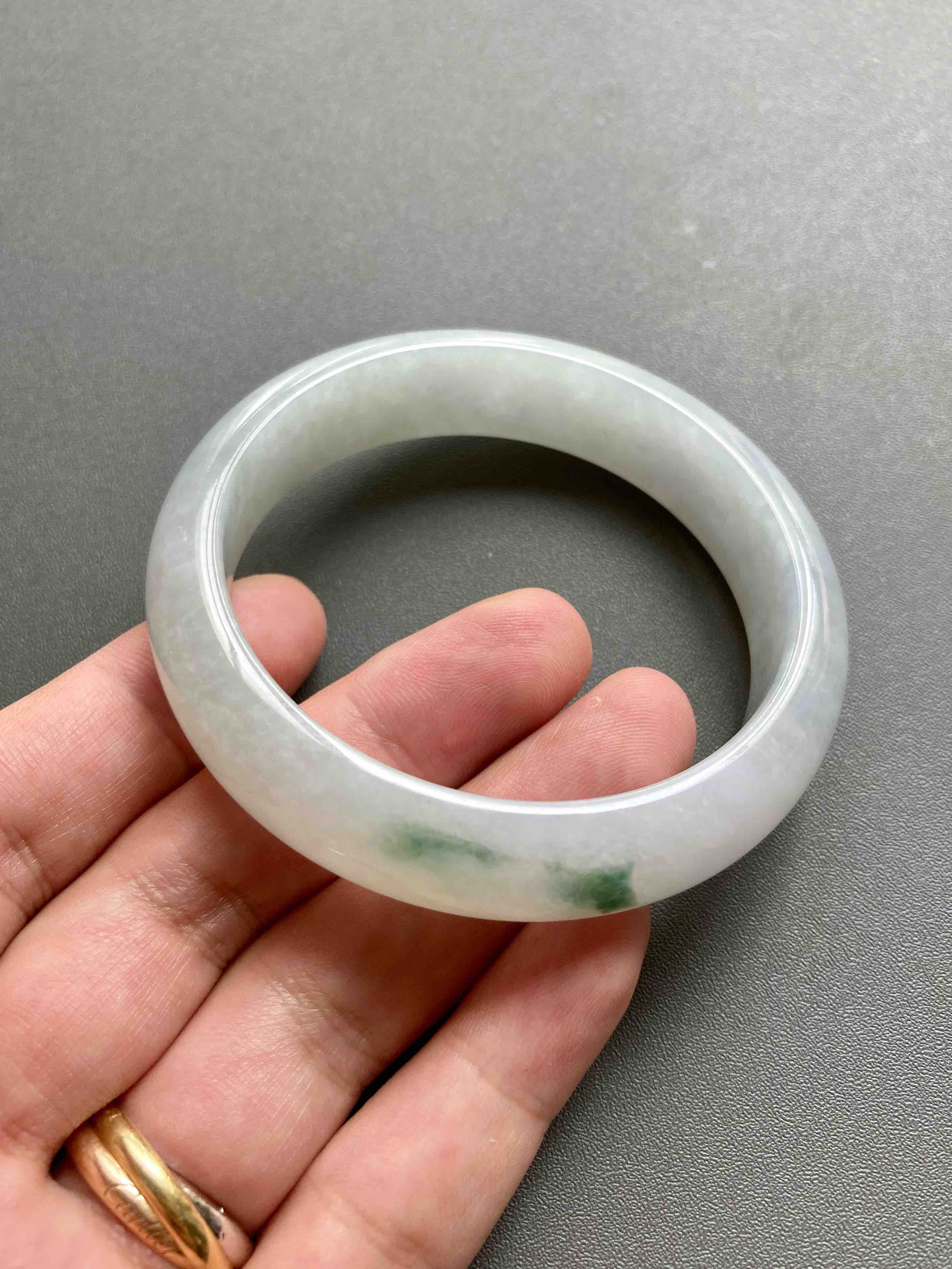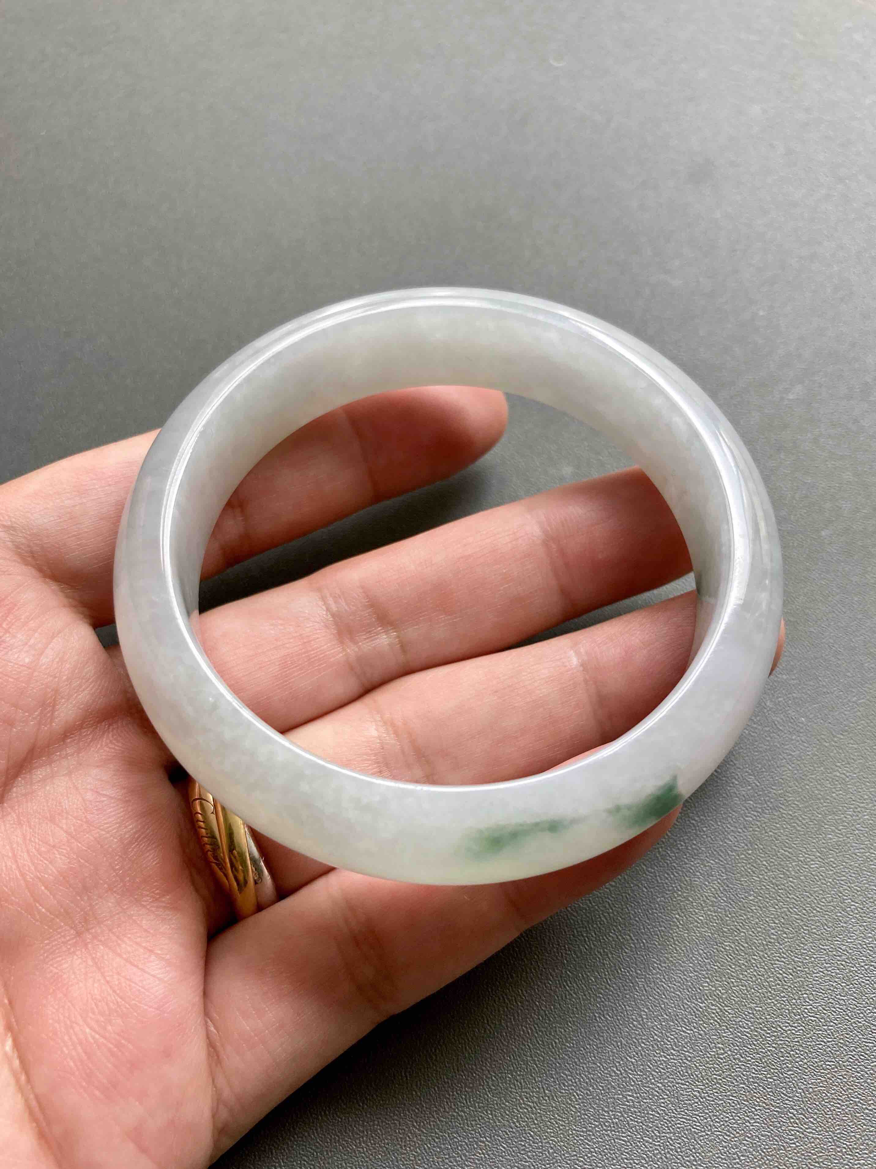 糯冰种飘花翡翠手镯57,晶莹剔透,果冻质感,飘花写意,气质清纯,种水特别细腻,很耐看的一只镯子,五位数的行情价,我们只要四位数,划算哎,内径57,宽14.1,厚7.9mm,手寸56到58都可以戴