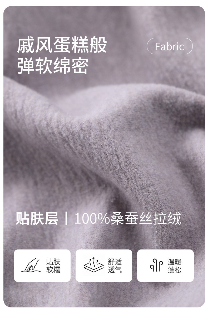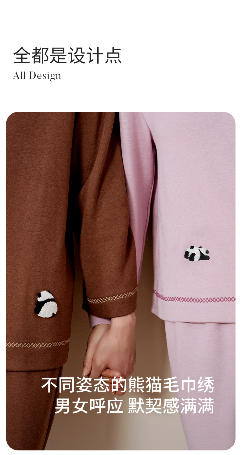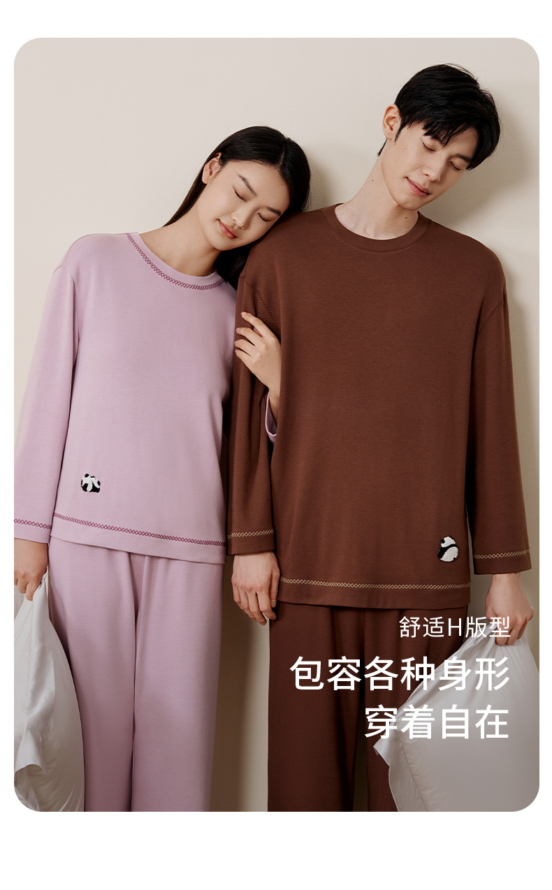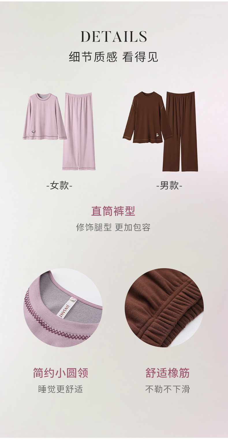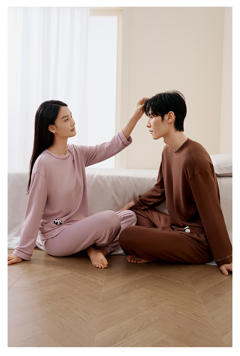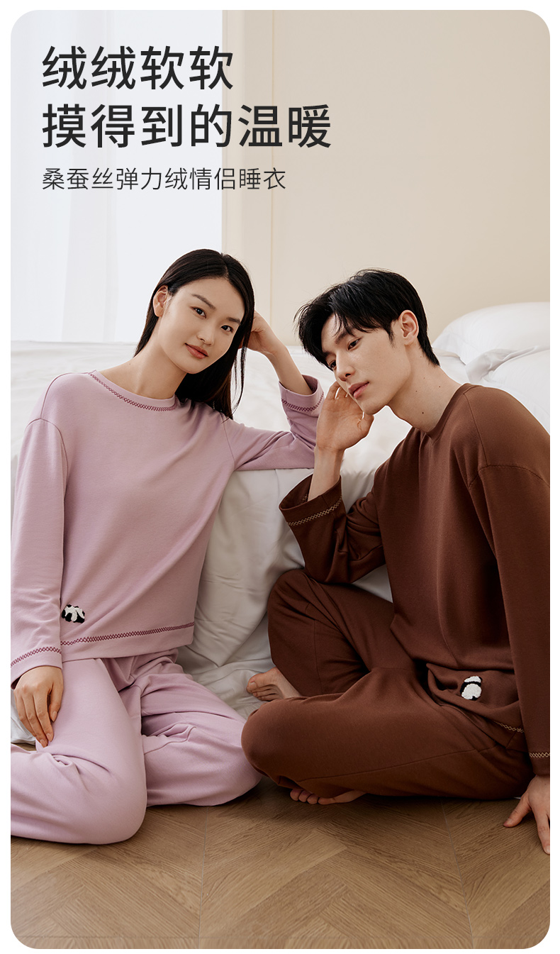 金三塔桑蚕丝圆领拉绒长袖情侣衣裤套舒适保暖睡衣男女家居服 YZFFD201+YZMFD201
