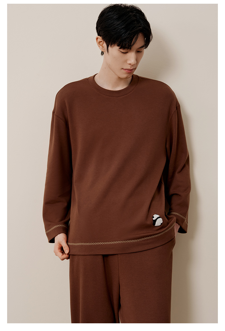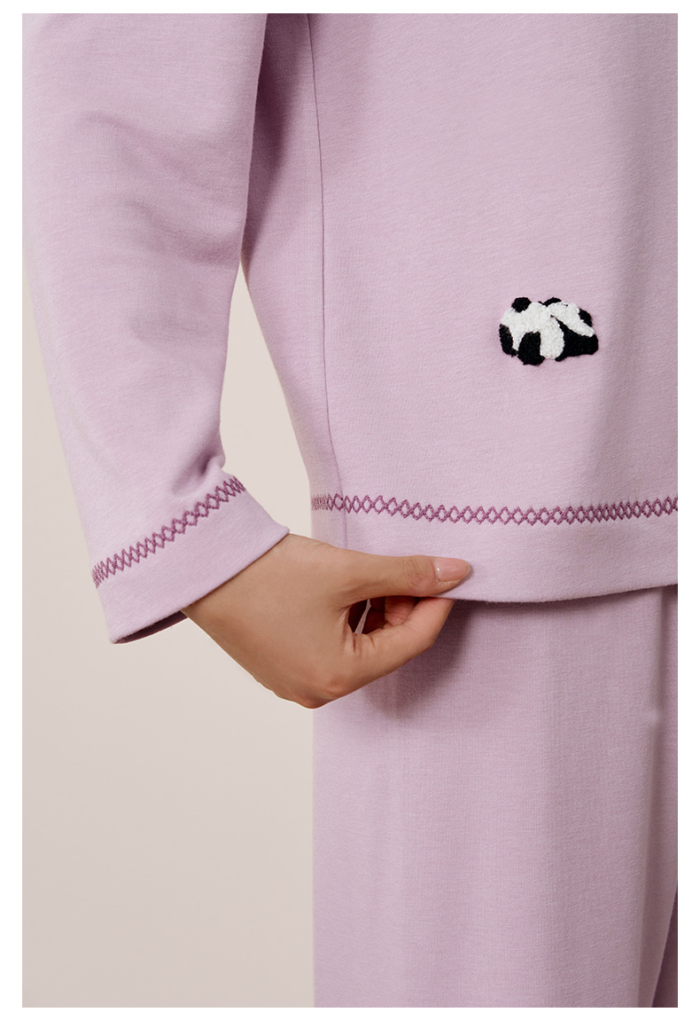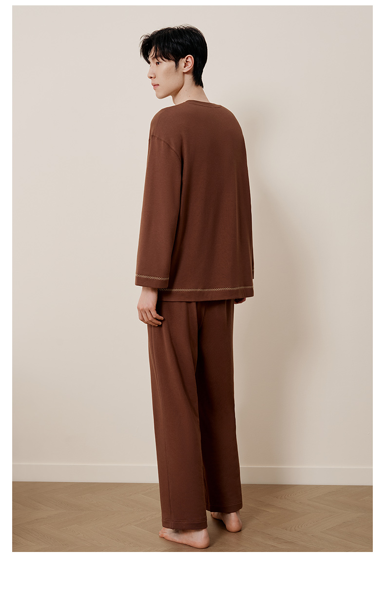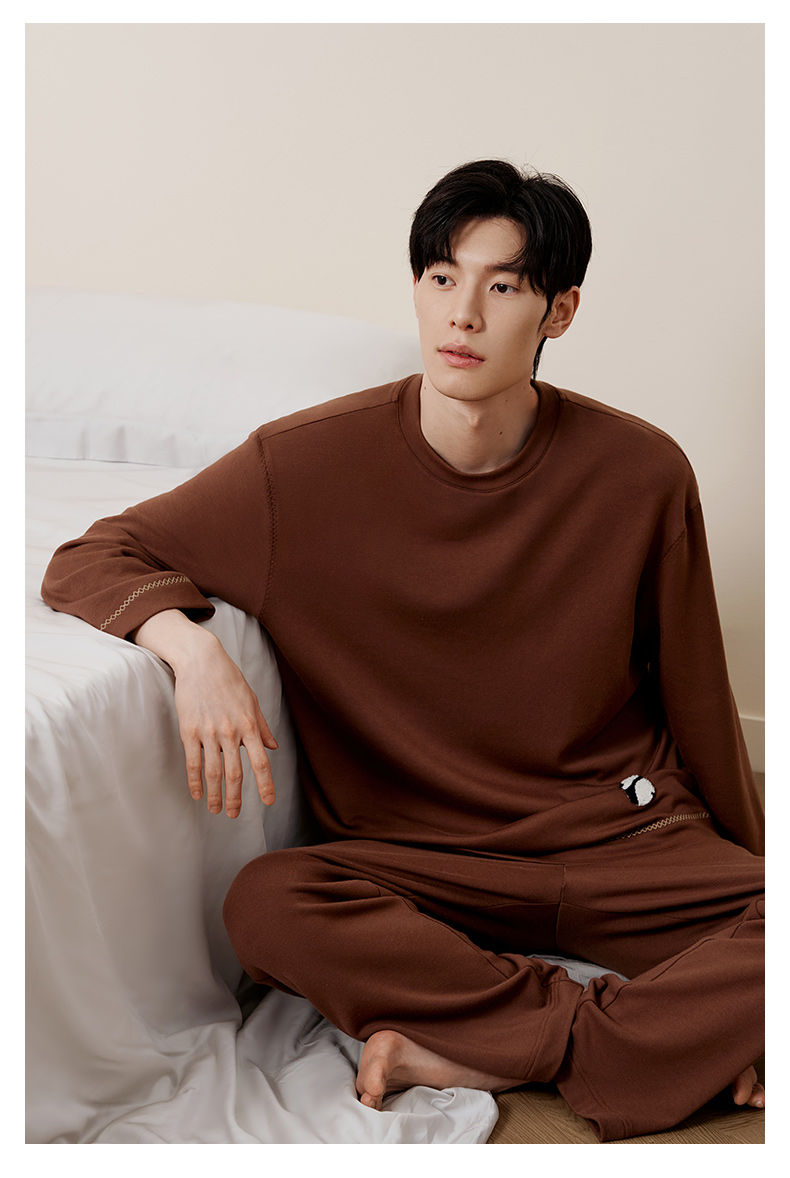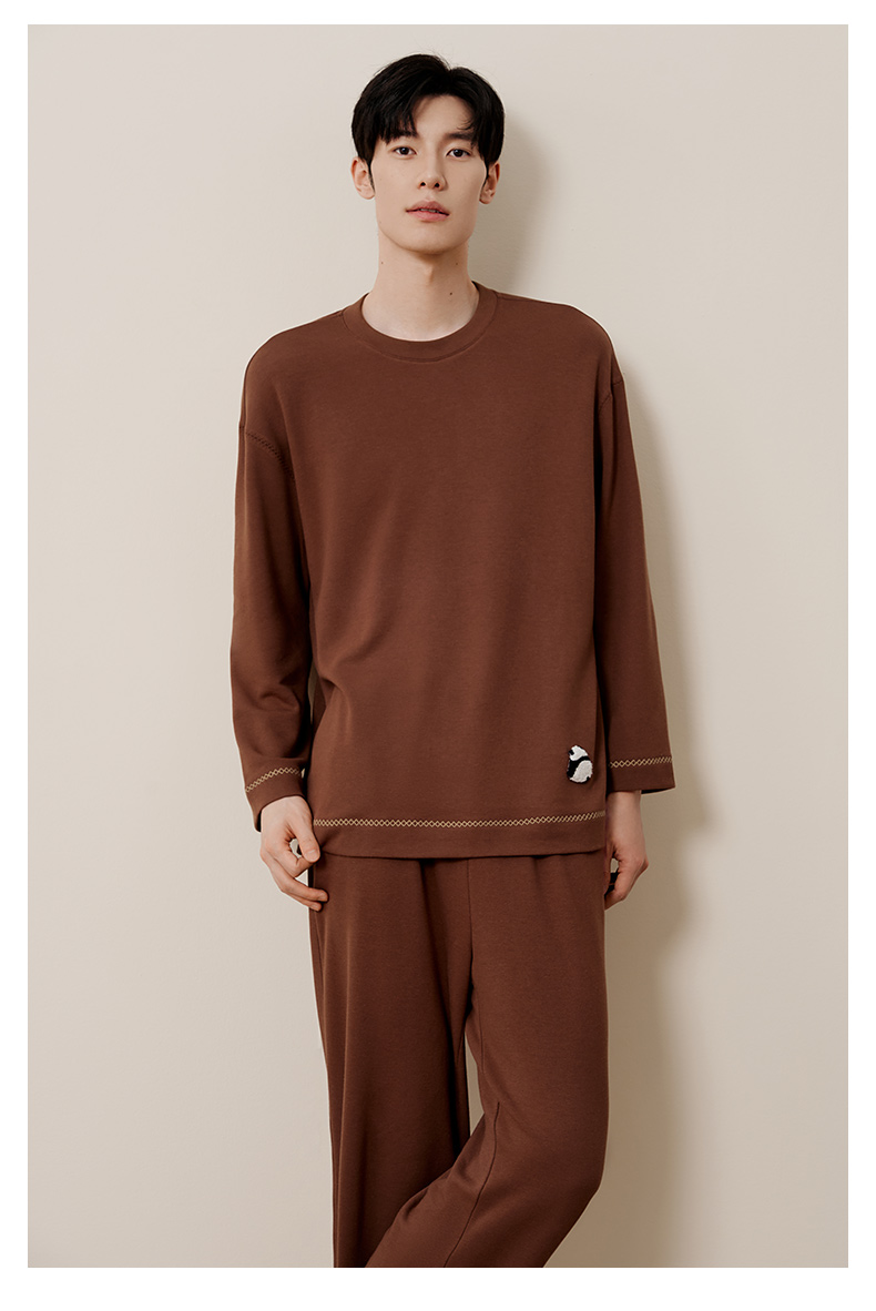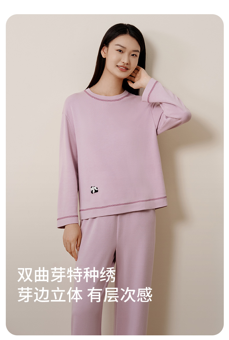 金三塔桑蚕丝圆领拉绒长袖情侣衣裤套舒适保暖睡衣男女家居服 YZFFD201+YZMFD201