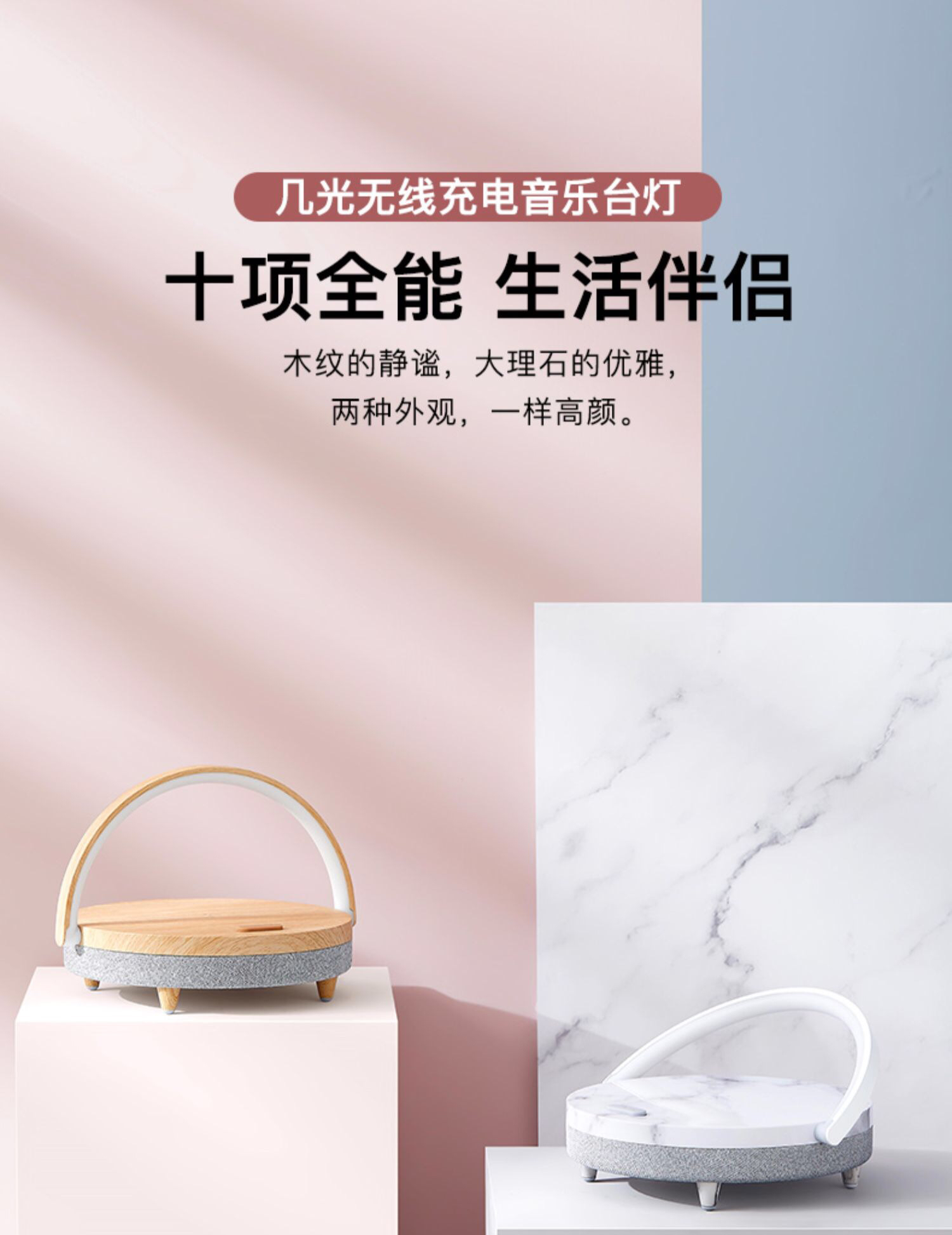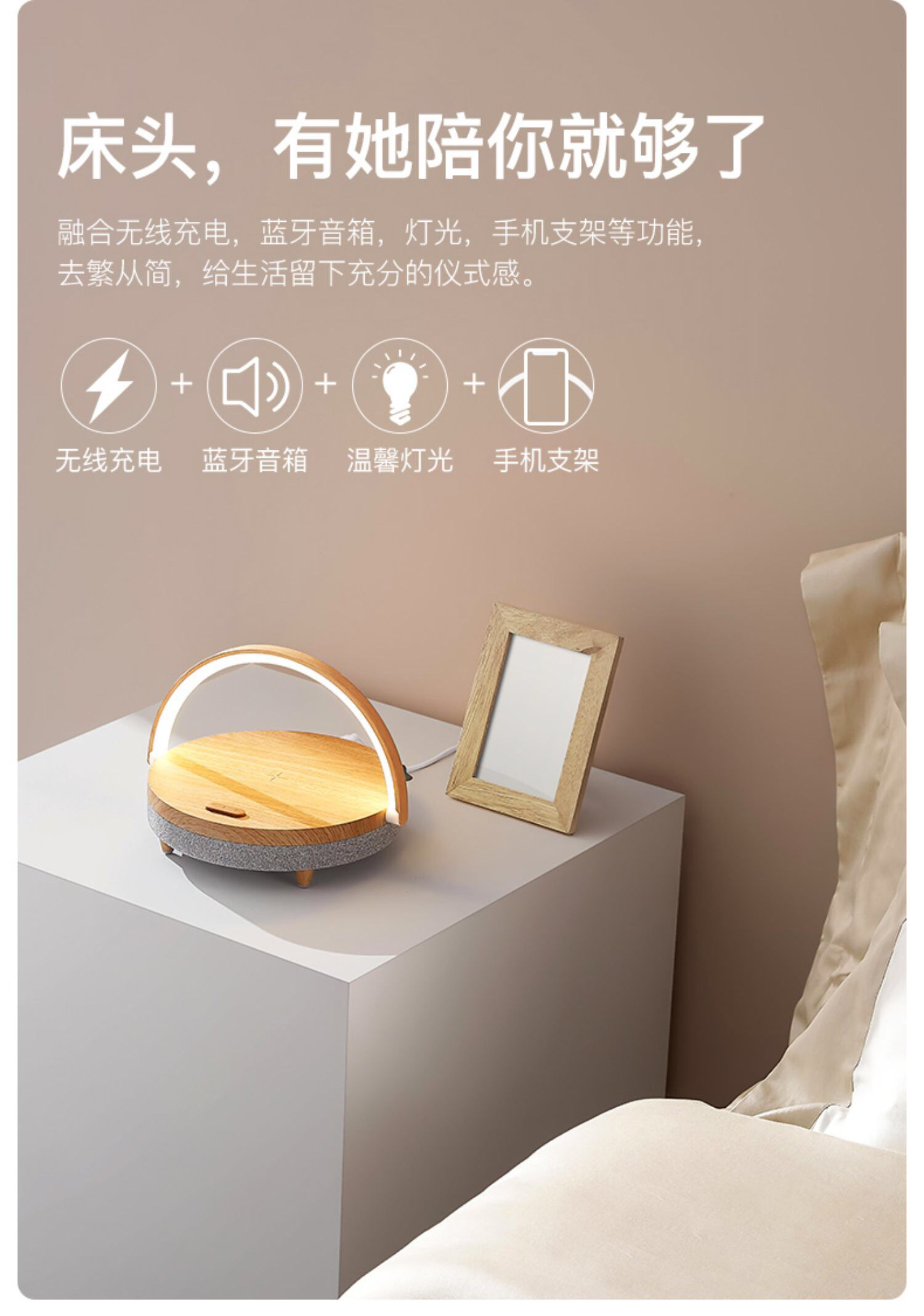 【 生活伴侣】几光 智能感应床头灯手机无线充电式蓝牙音响多功能 卧室温馨创意简约现代台灯