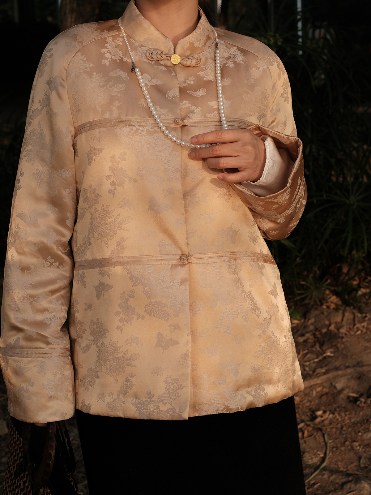 盛唐牡丹 |香槟蝶恋花真丝交织提花棉服(不夹棉)