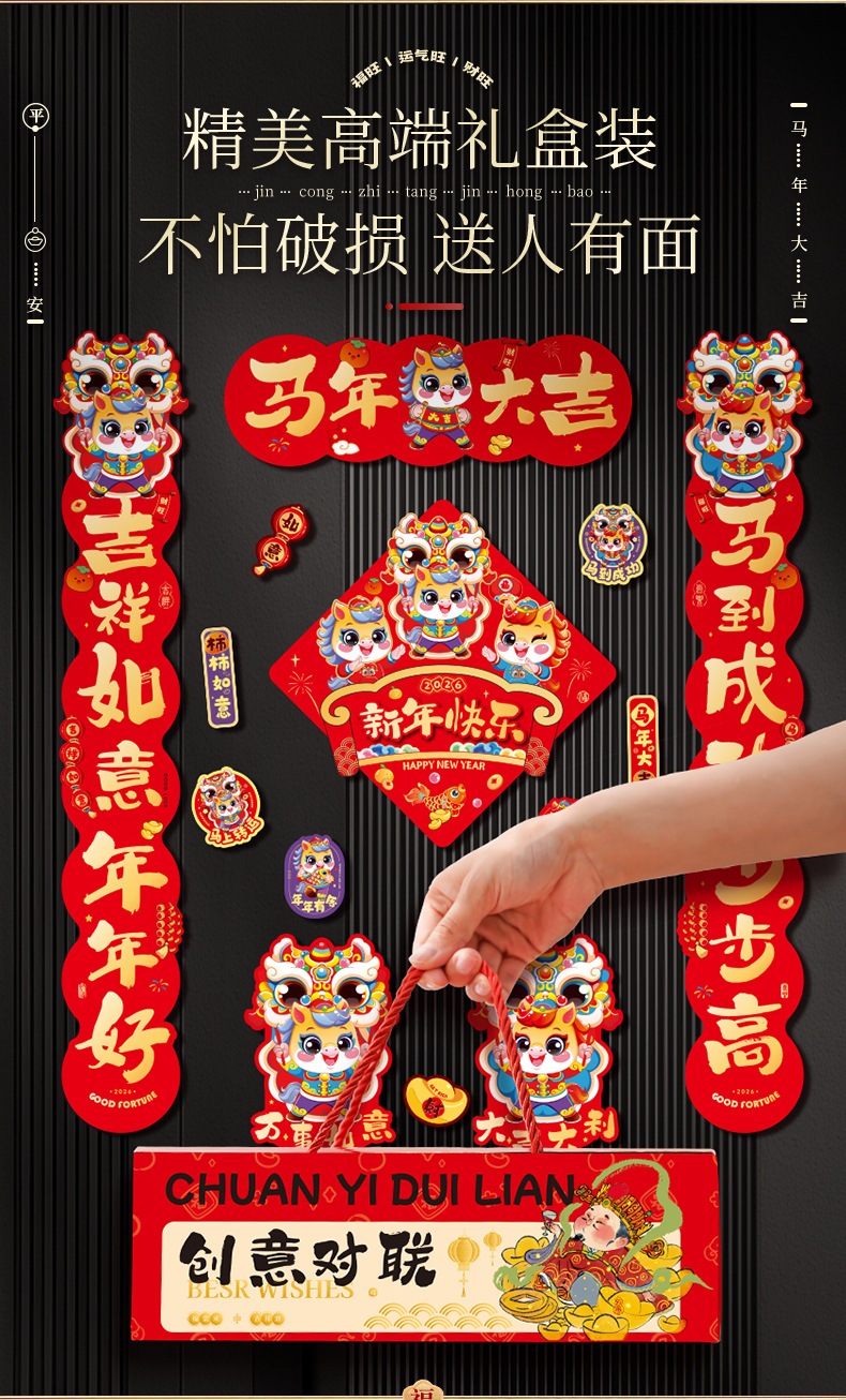 【马年限定❗️全背磁吸对联套装】热热闹闹贴对联,来年日日添福气,2026新年新款春联新春春节福字门联新年过年大门氛围布置