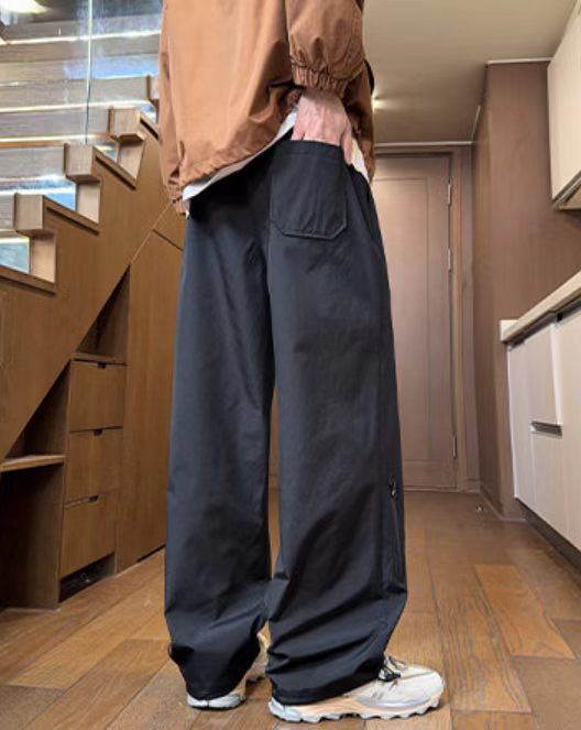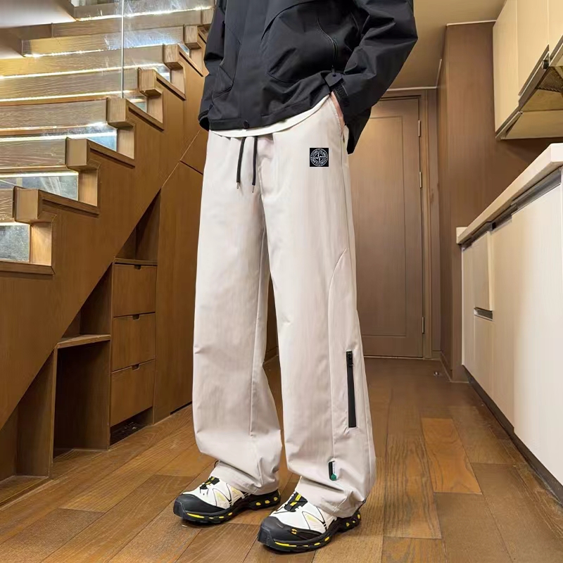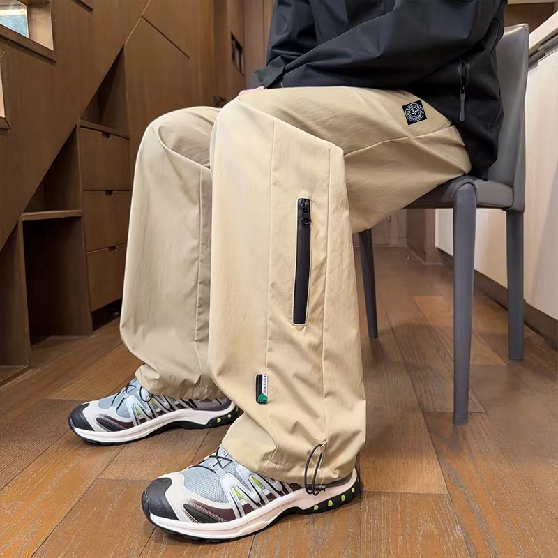 F040301春款新款魔术贴男士休闲工装暗格子双口袋宽松舒适直筒冲锋裤