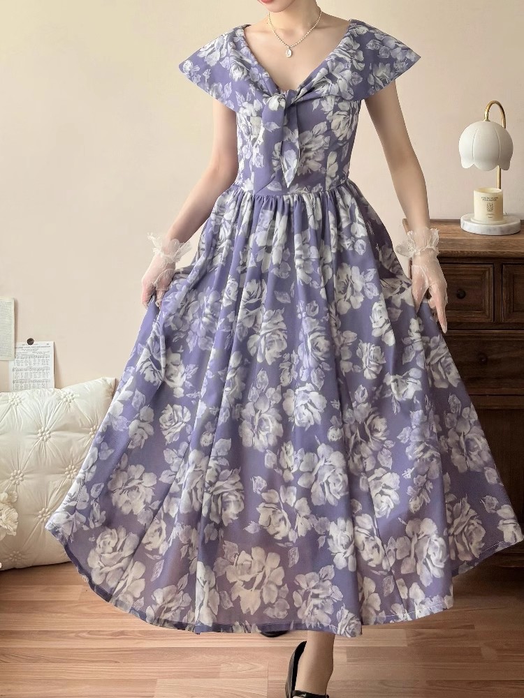 裁缝学苑AH26扭结V领飞袖连衣裙纸样裙子女装收腰大摆