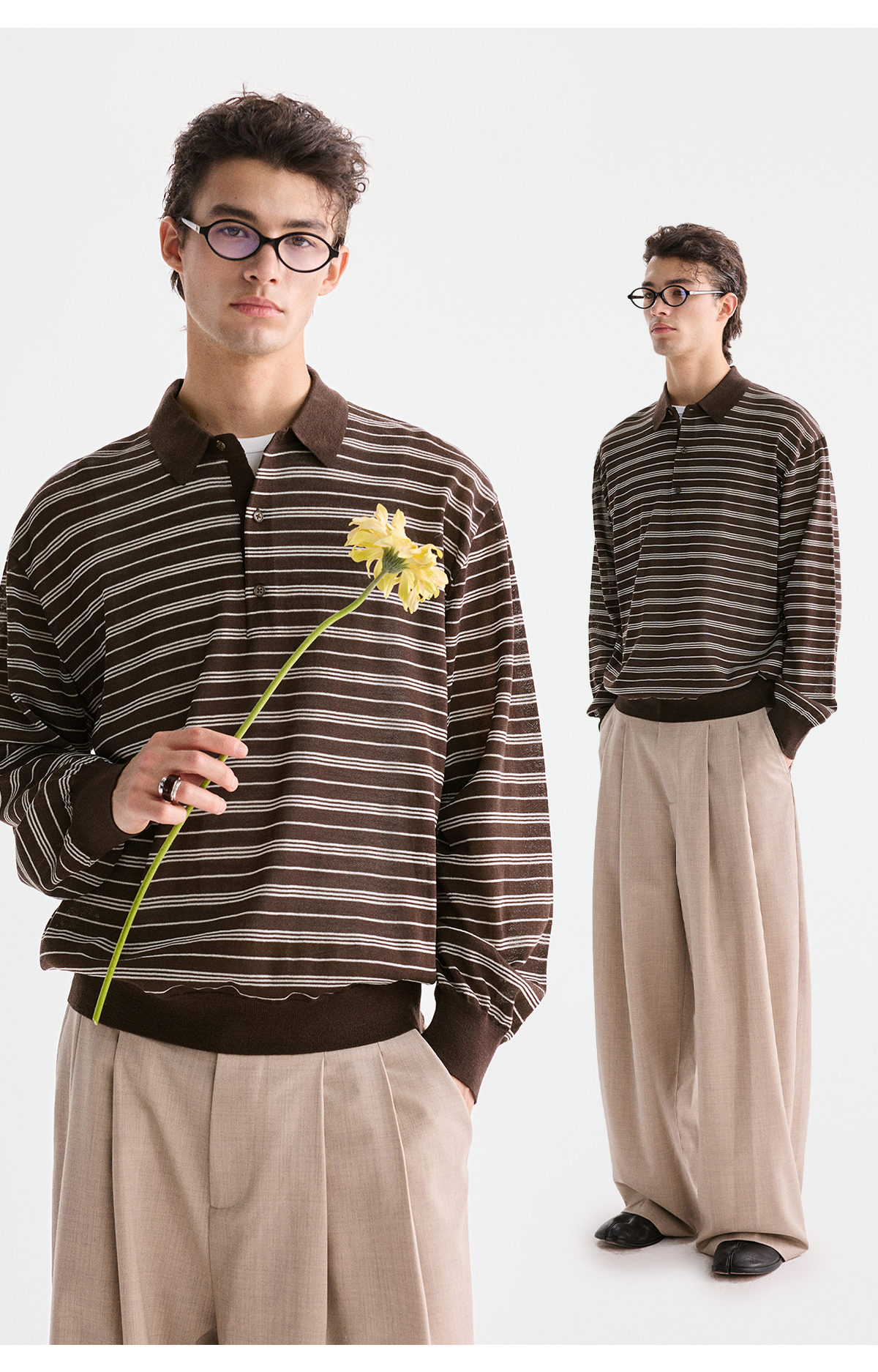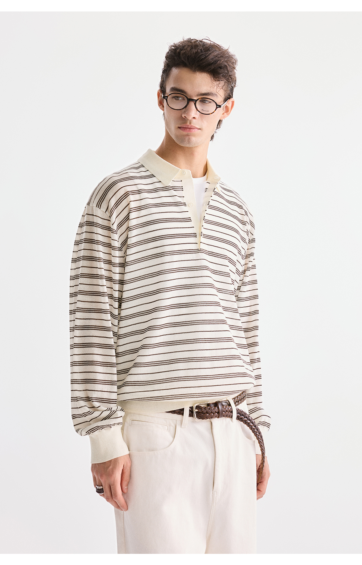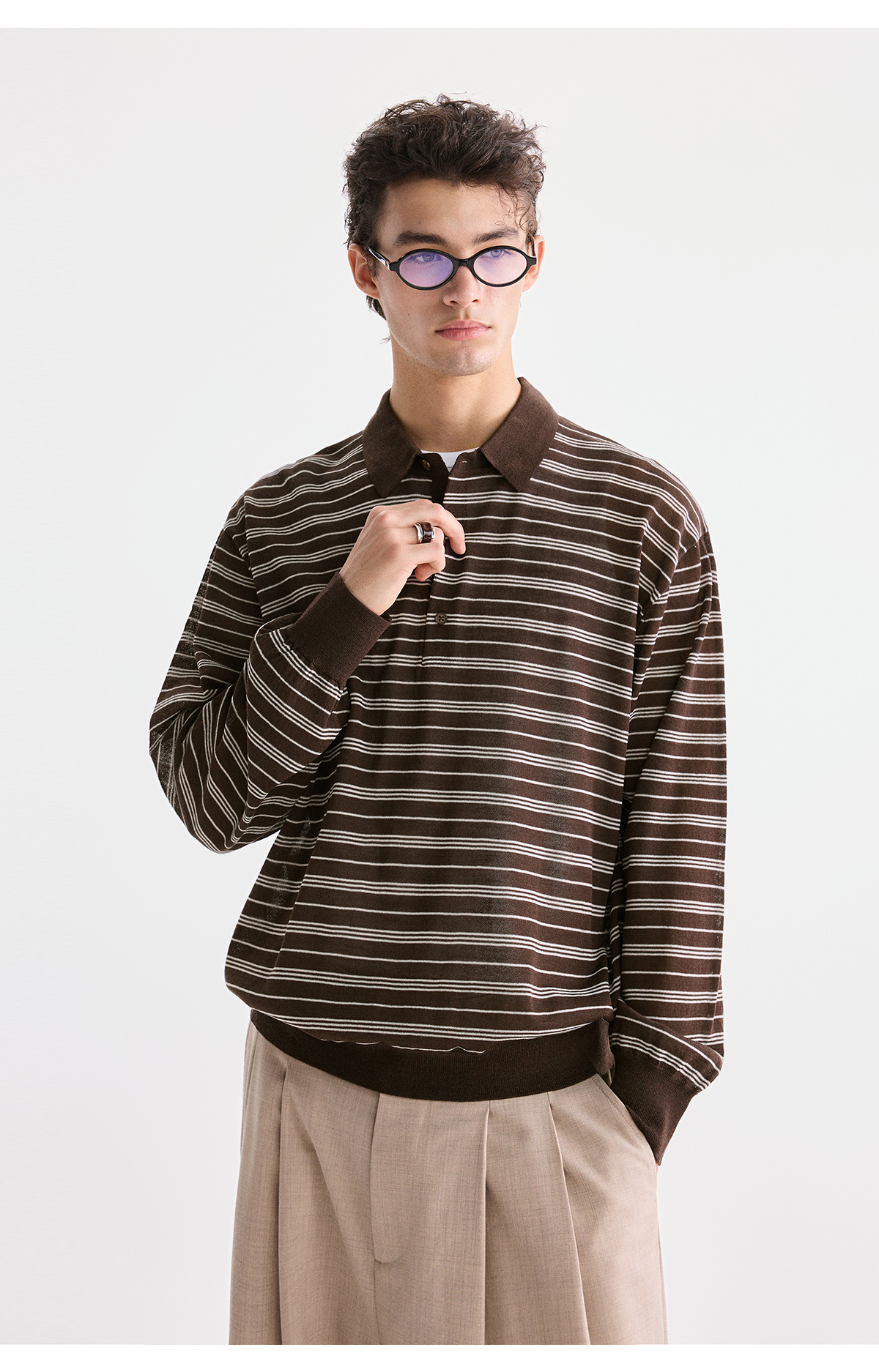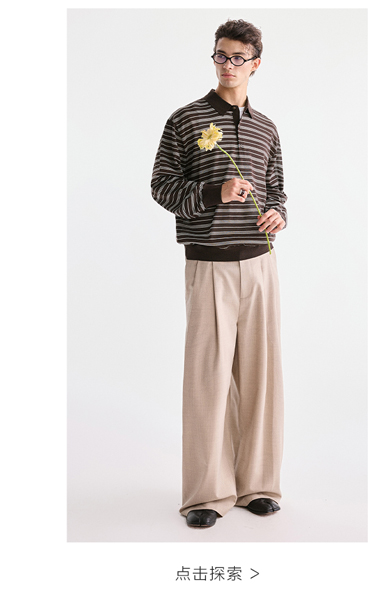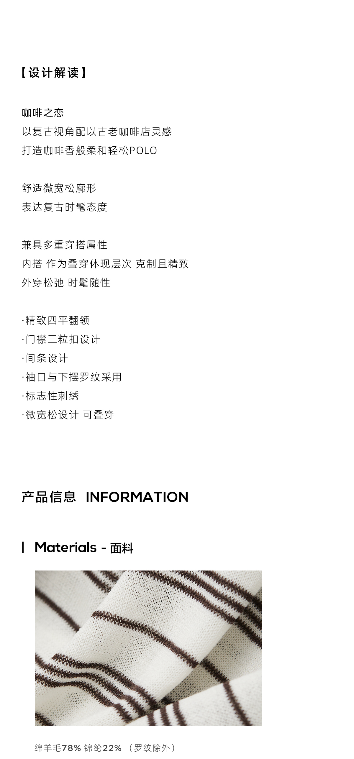棉仓3621002002-【咖啡之恋】含羊毛复古条纹空气感轻松可叠穿POLO