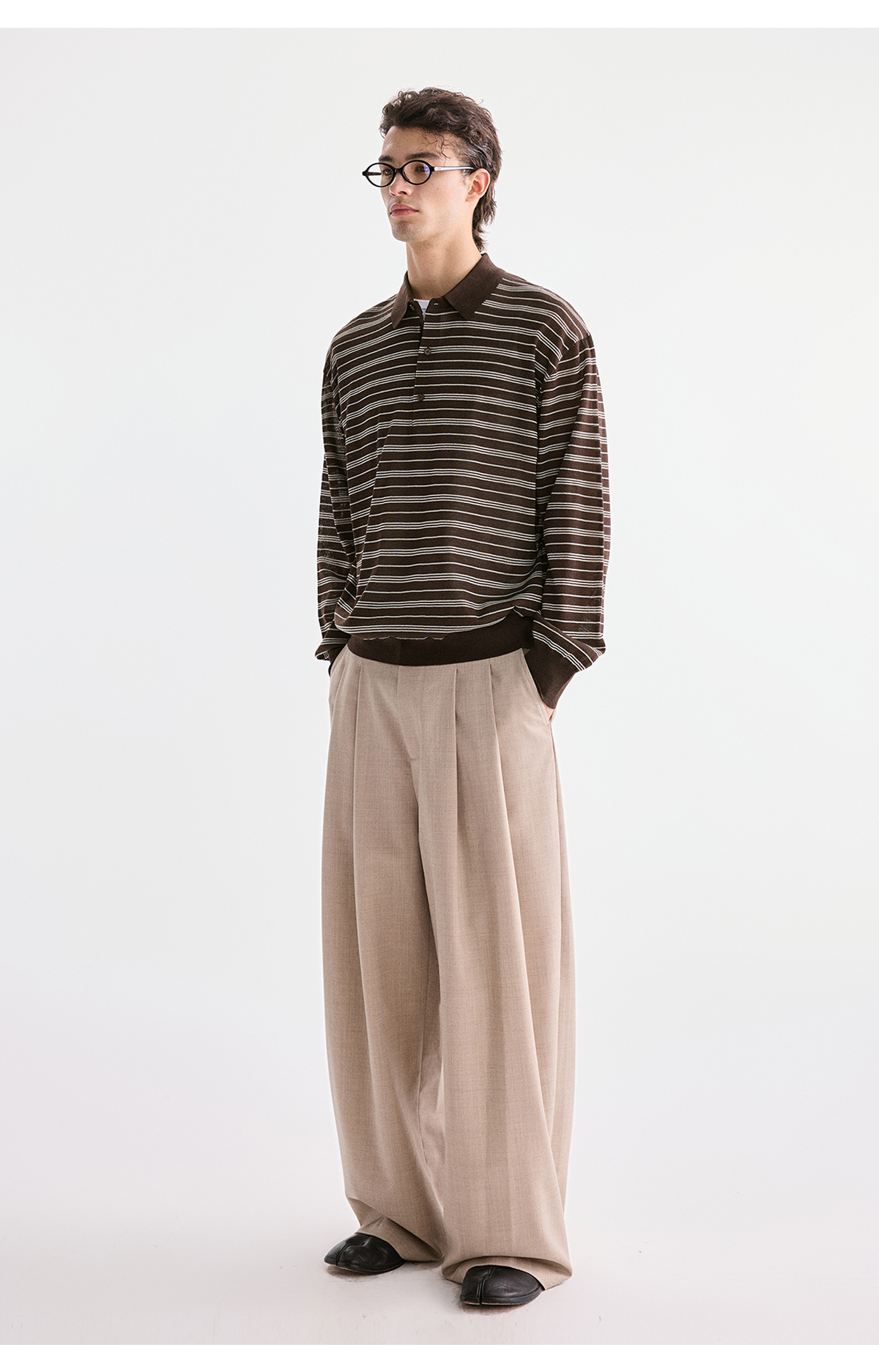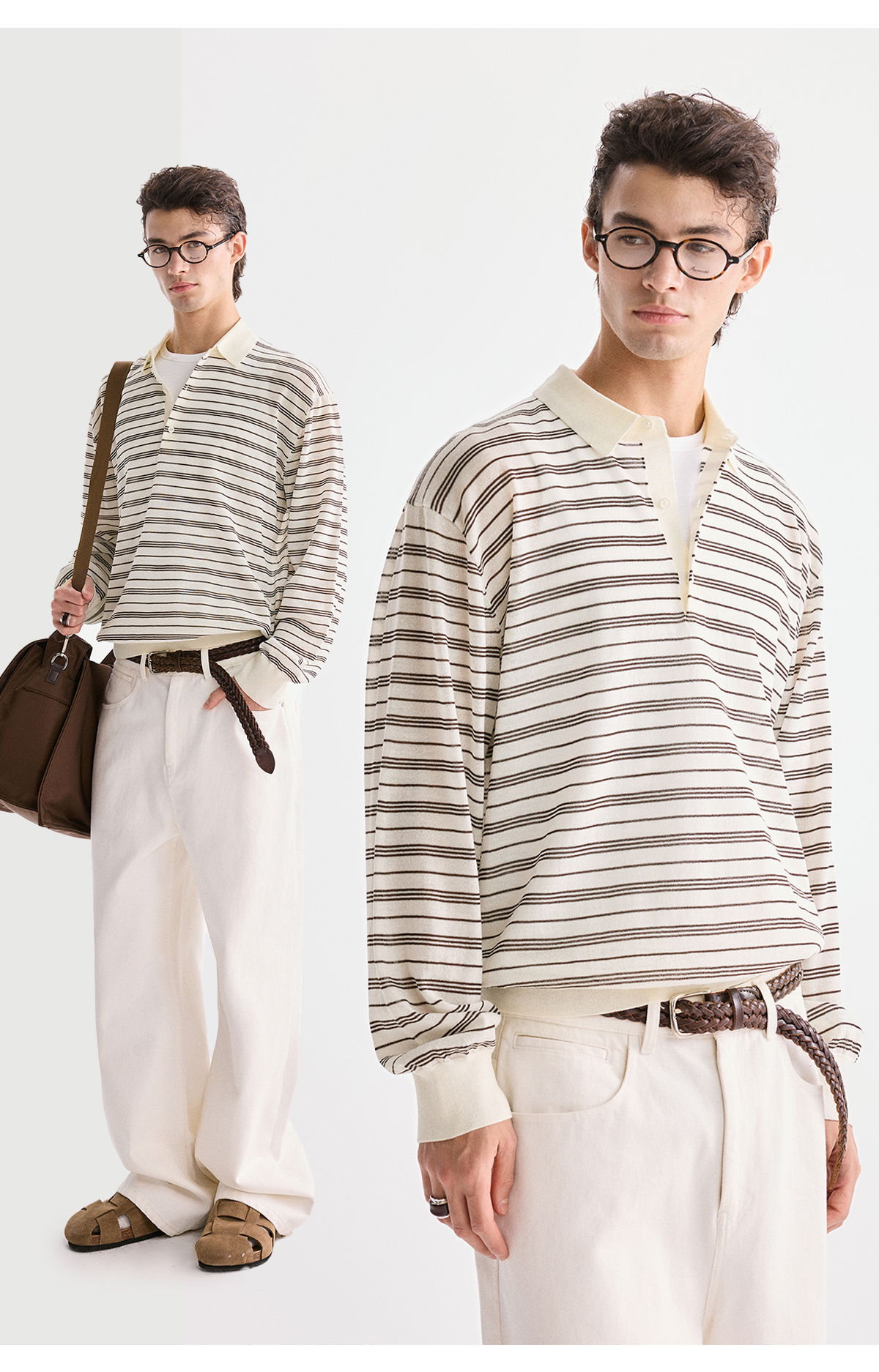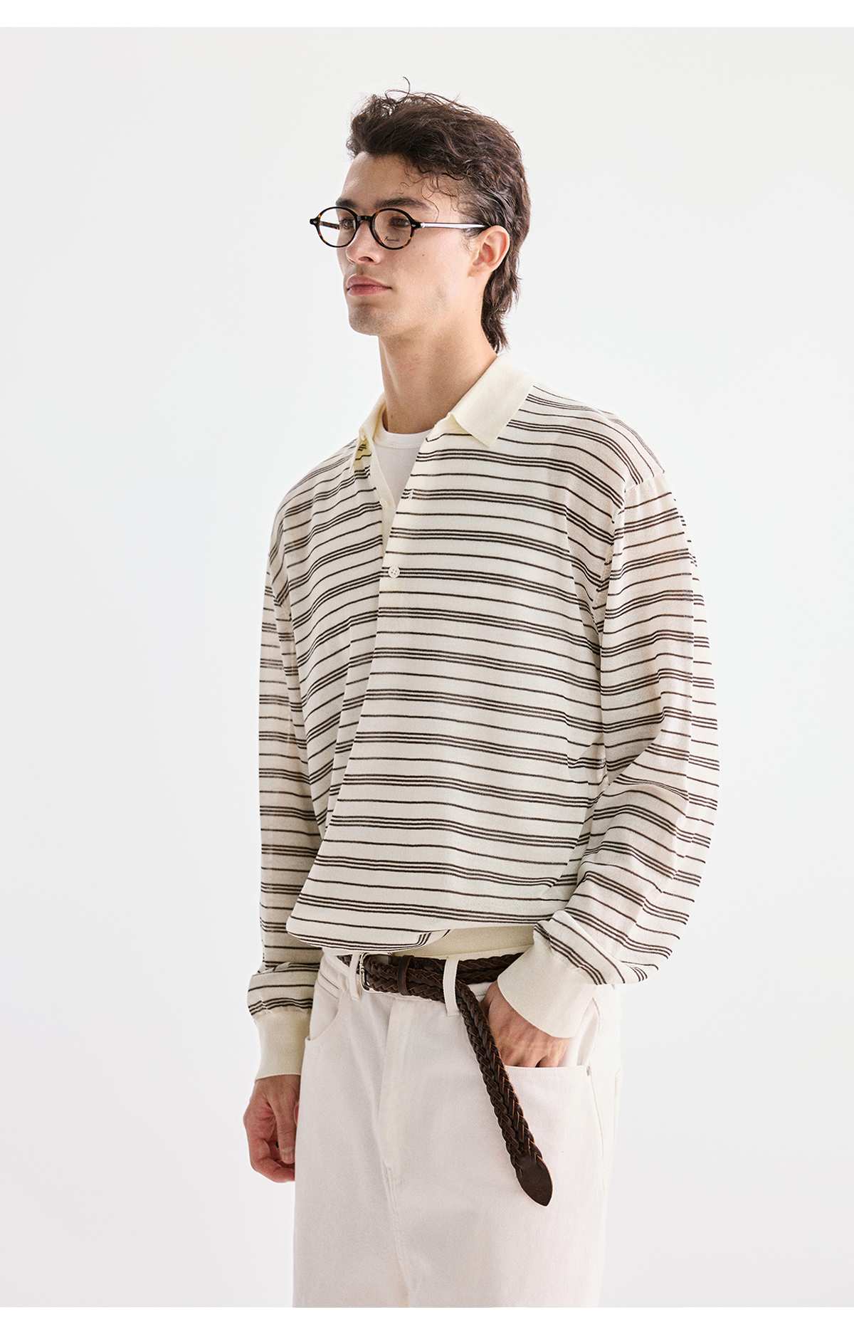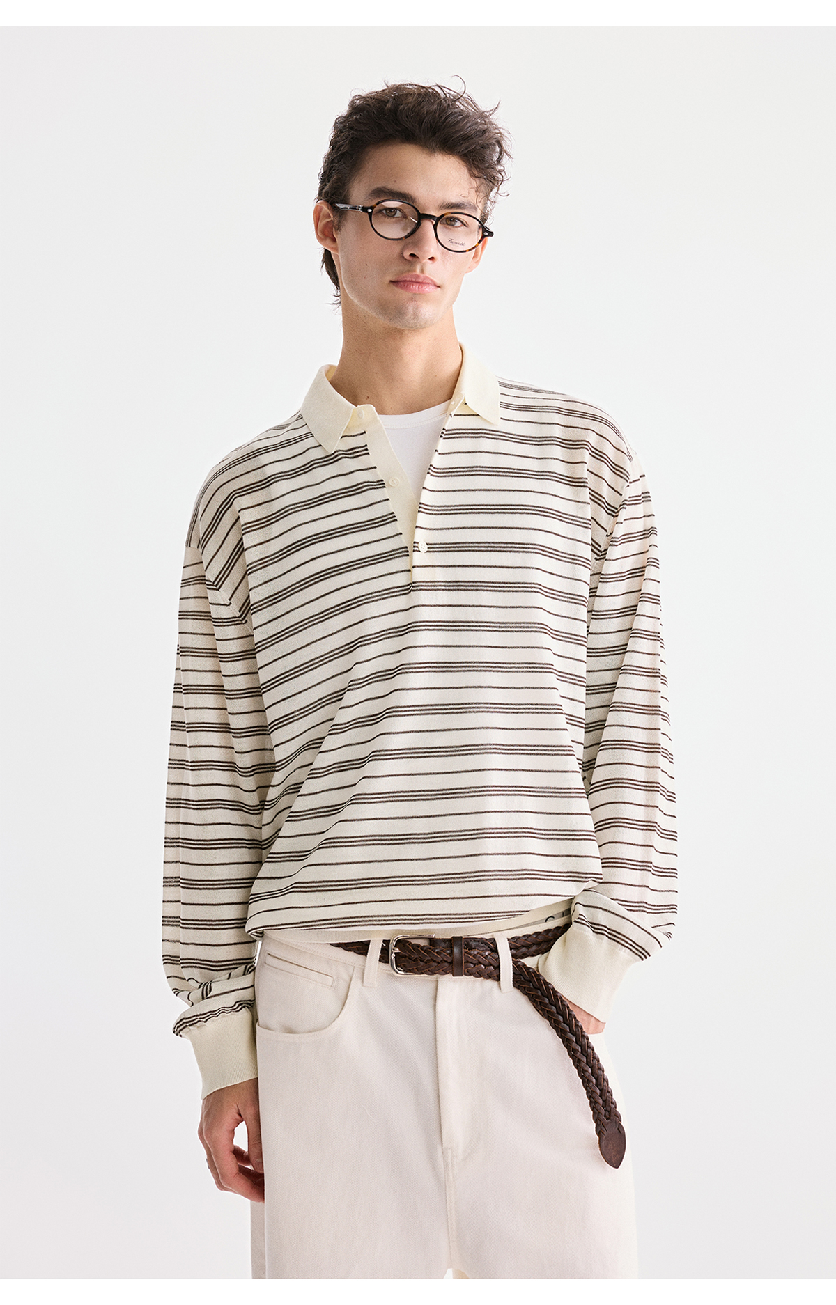 棉仓3621002002-【咖啡之恋】含羊毛复古条纹空气感轻松可叠穿POLO