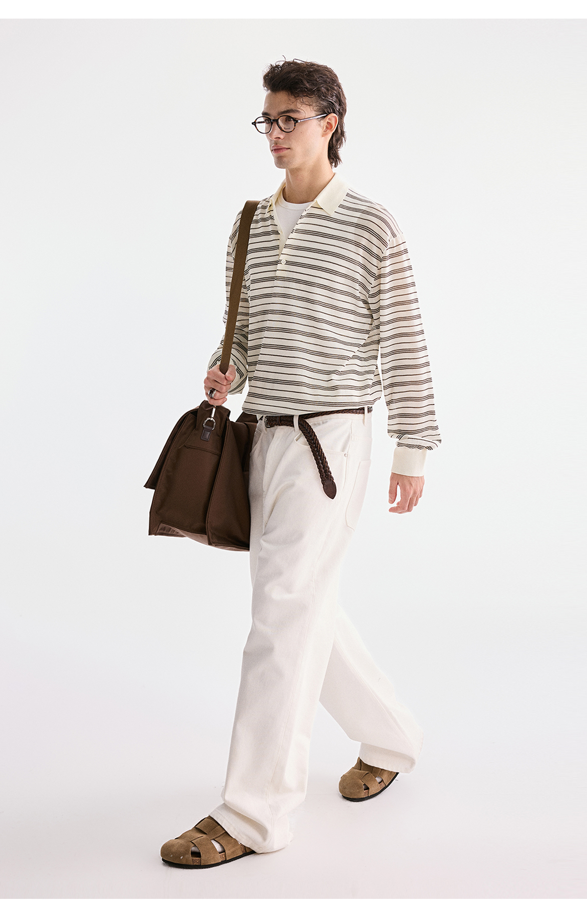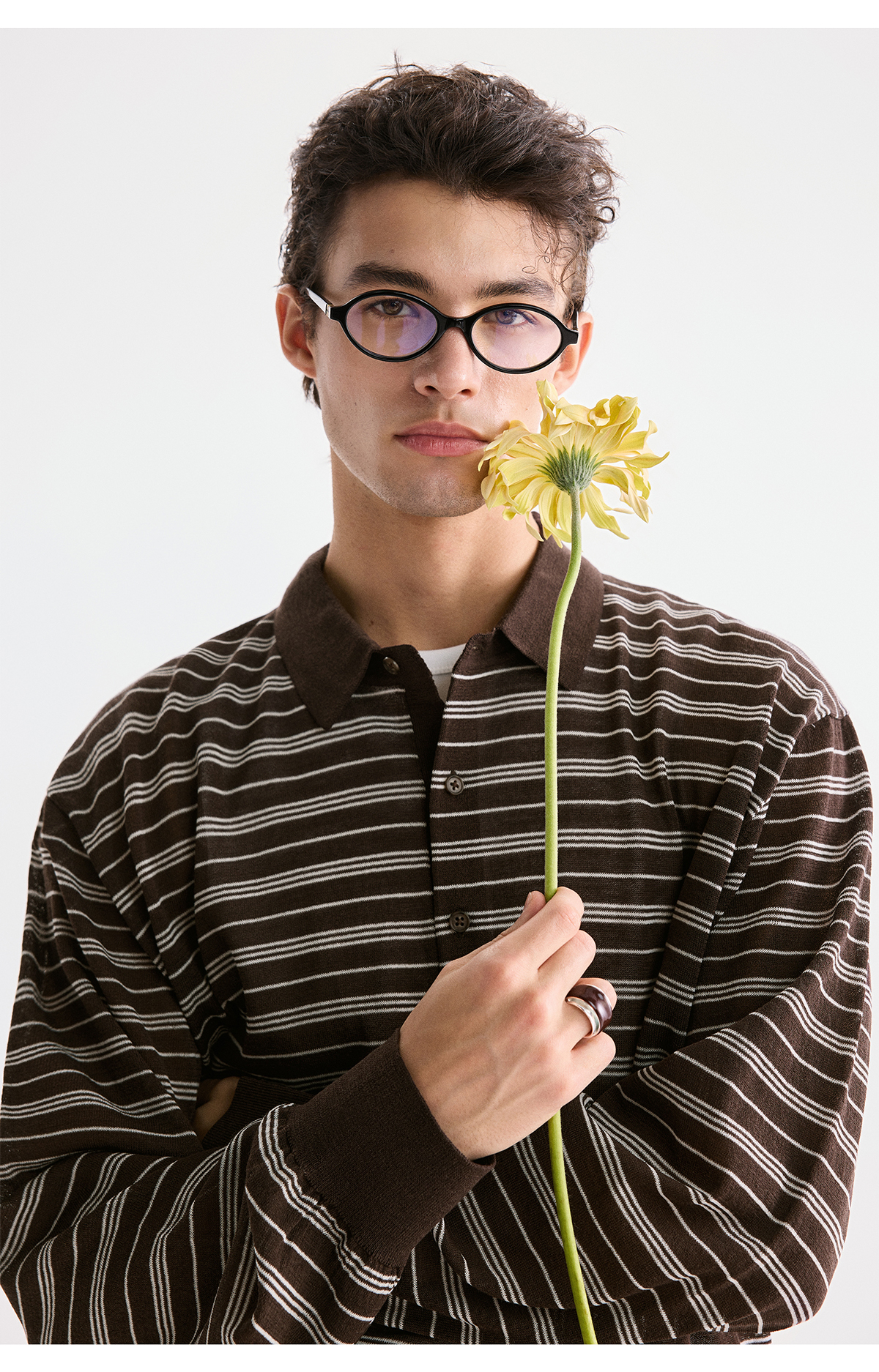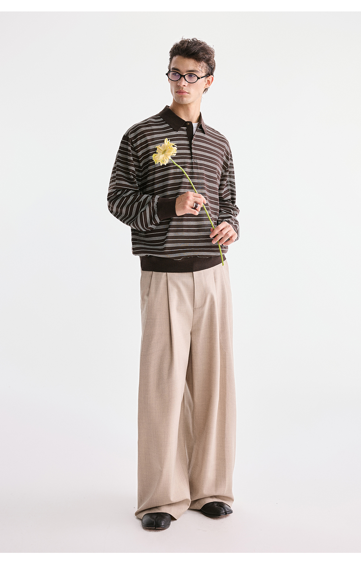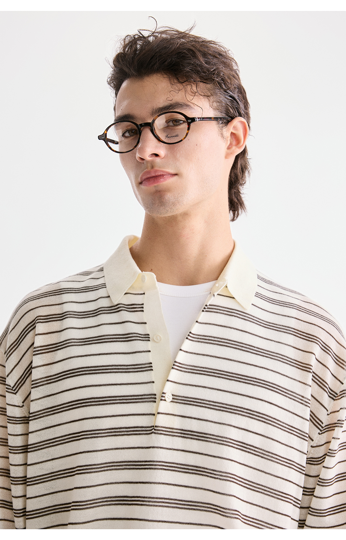 棉仓3621002002-【咖啡之恋】含羊毛复古条纹空气感轻松可叠穿POLO